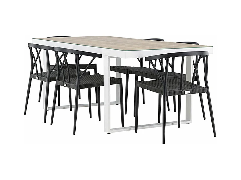 MerloStina tuinmeubelset 1 eettafel, 6 stoelen wit.