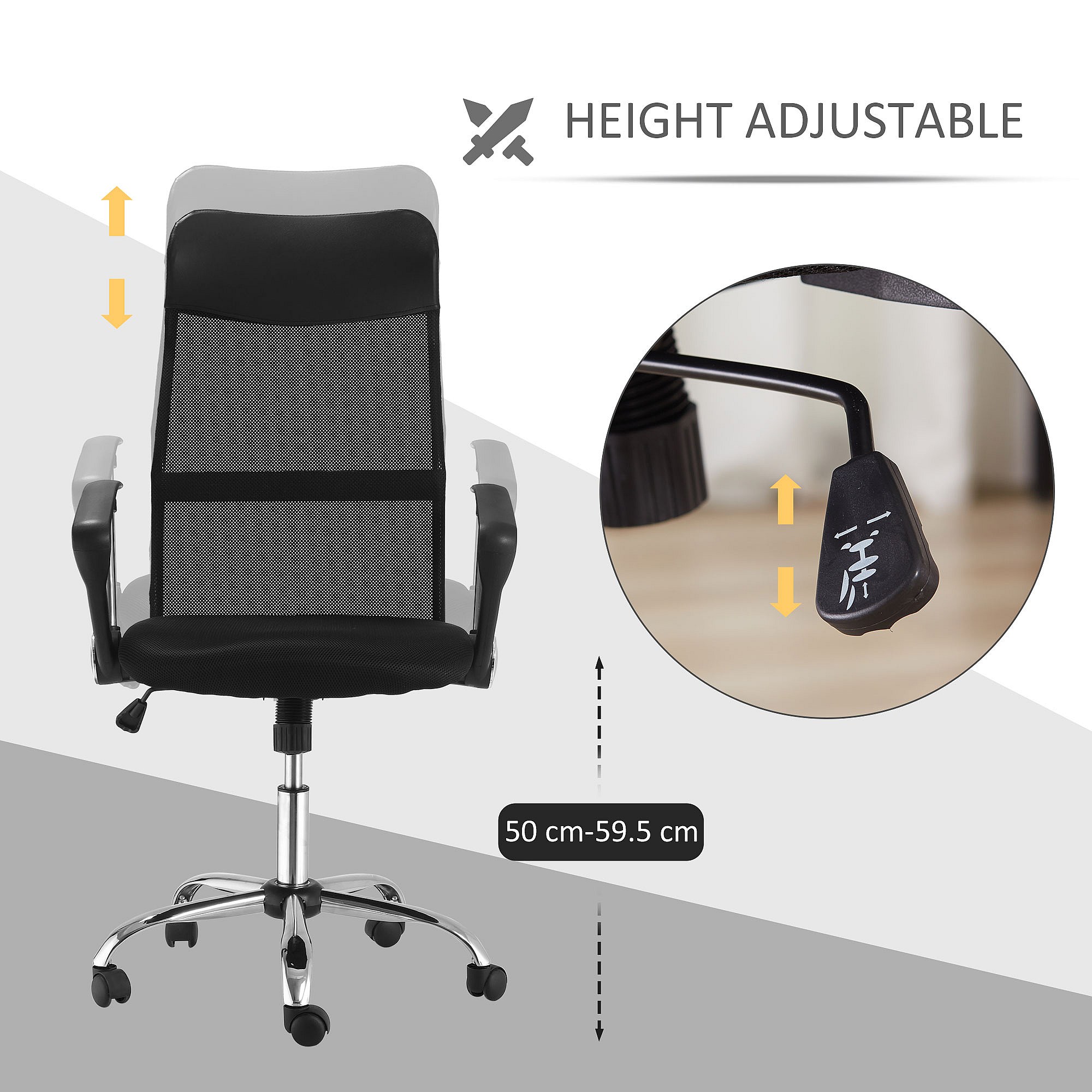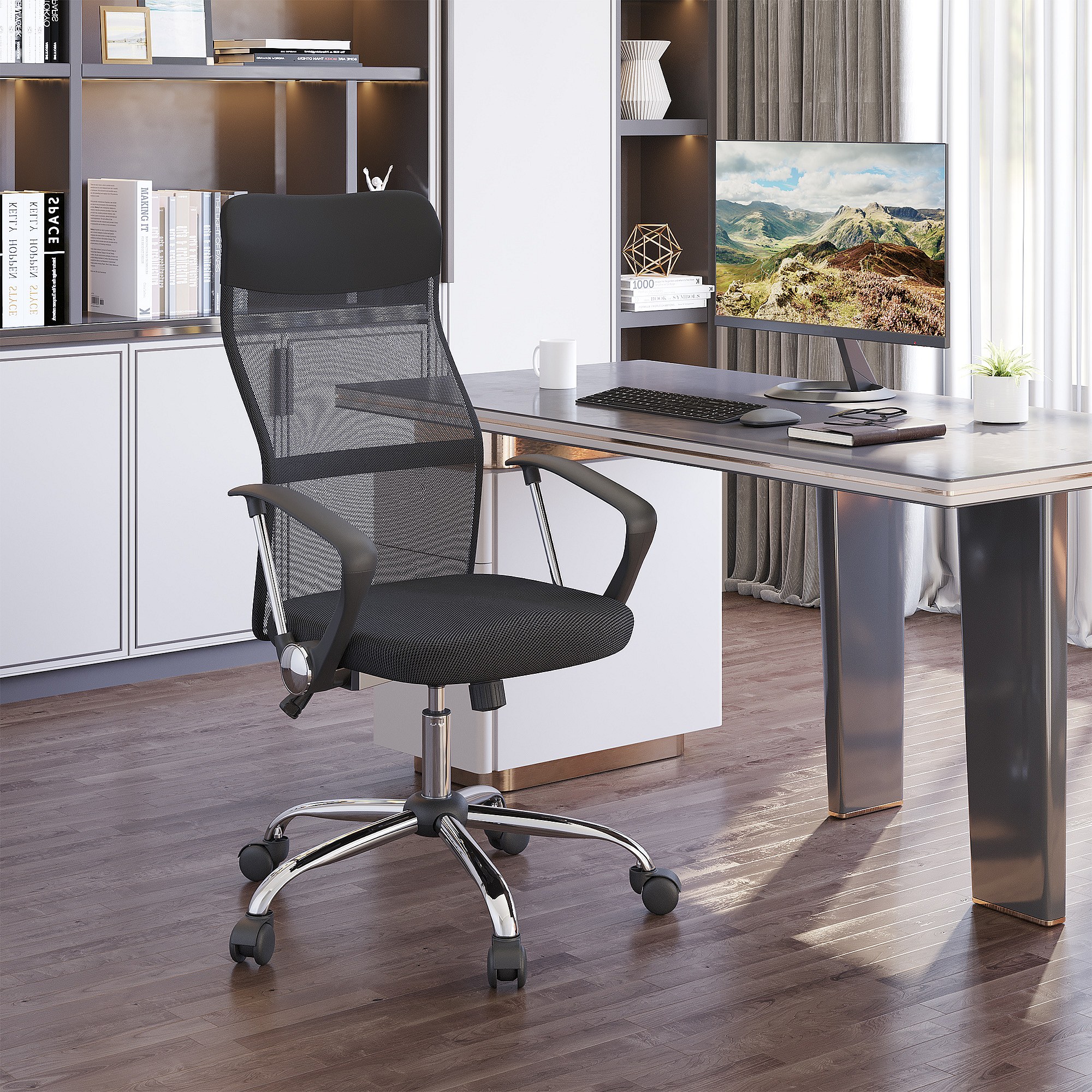 Mesh bureaustoel, in hoogte verstelbaar, ergonomische gaming stoel, draaibaar met schommelfunctie, comfortabel en praktisch, zwart