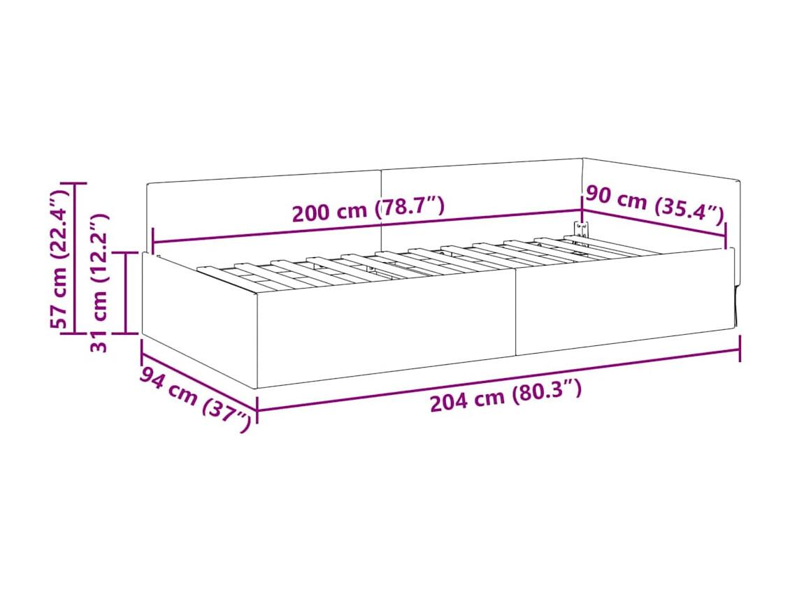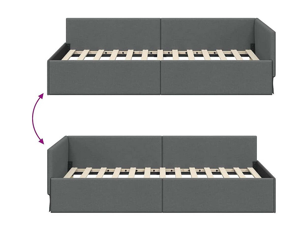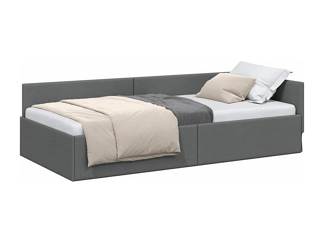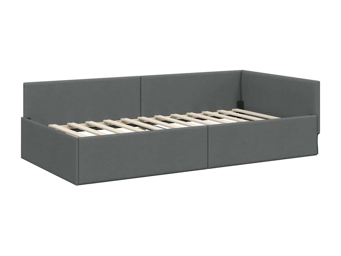 Hoek Bed Frame Donkergrijs 90 x 200 cm Stof en Engineered Hout