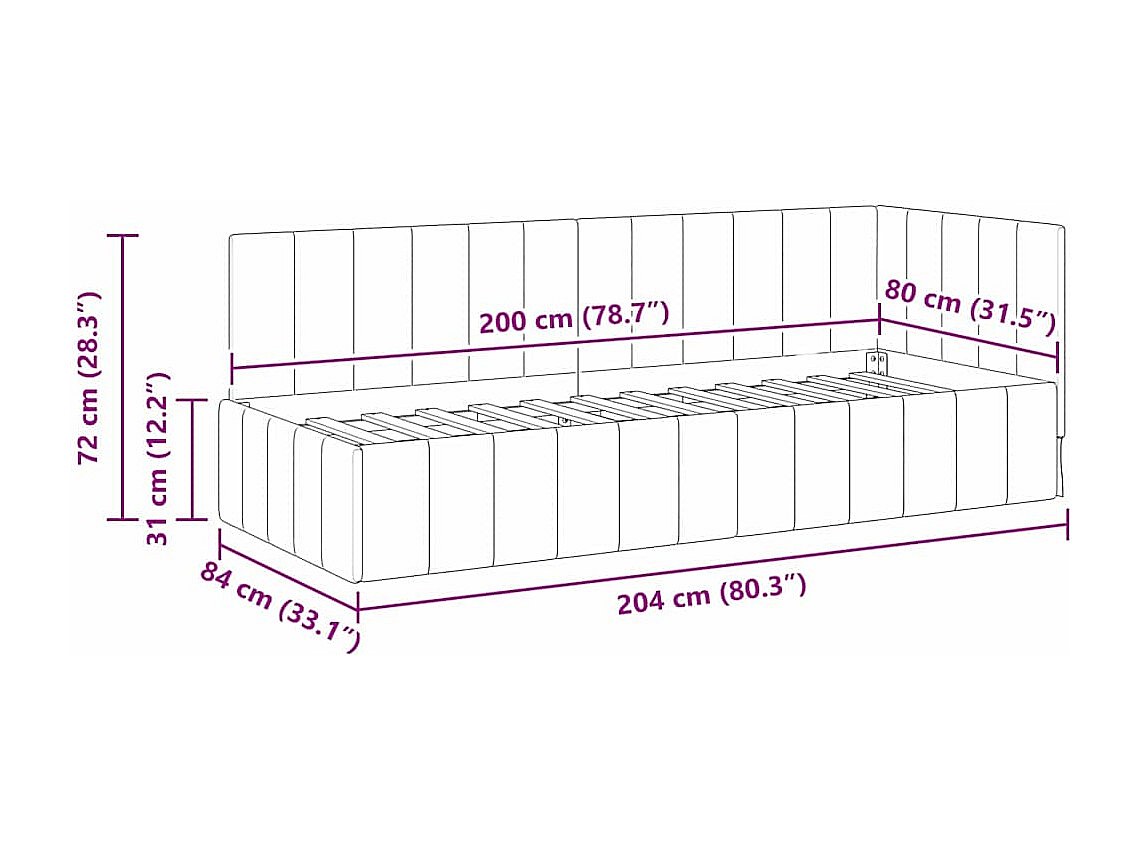 Hoekbedframe Anders Roze 80 x 200 cm Fluweel en Engineered hout