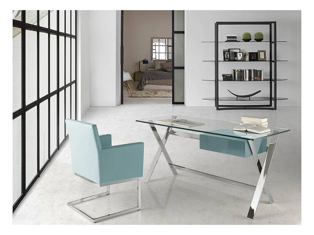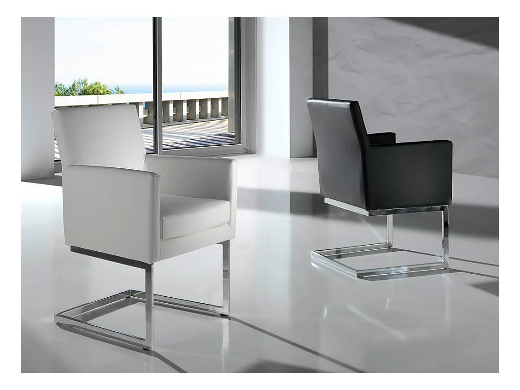 Met kunstleer beklede fauteuil en chroomstalen poten-Kleur Aqua 00 Wit