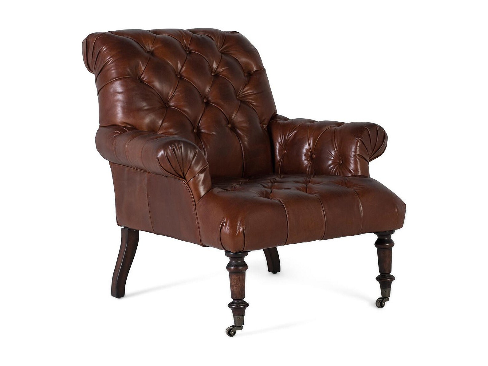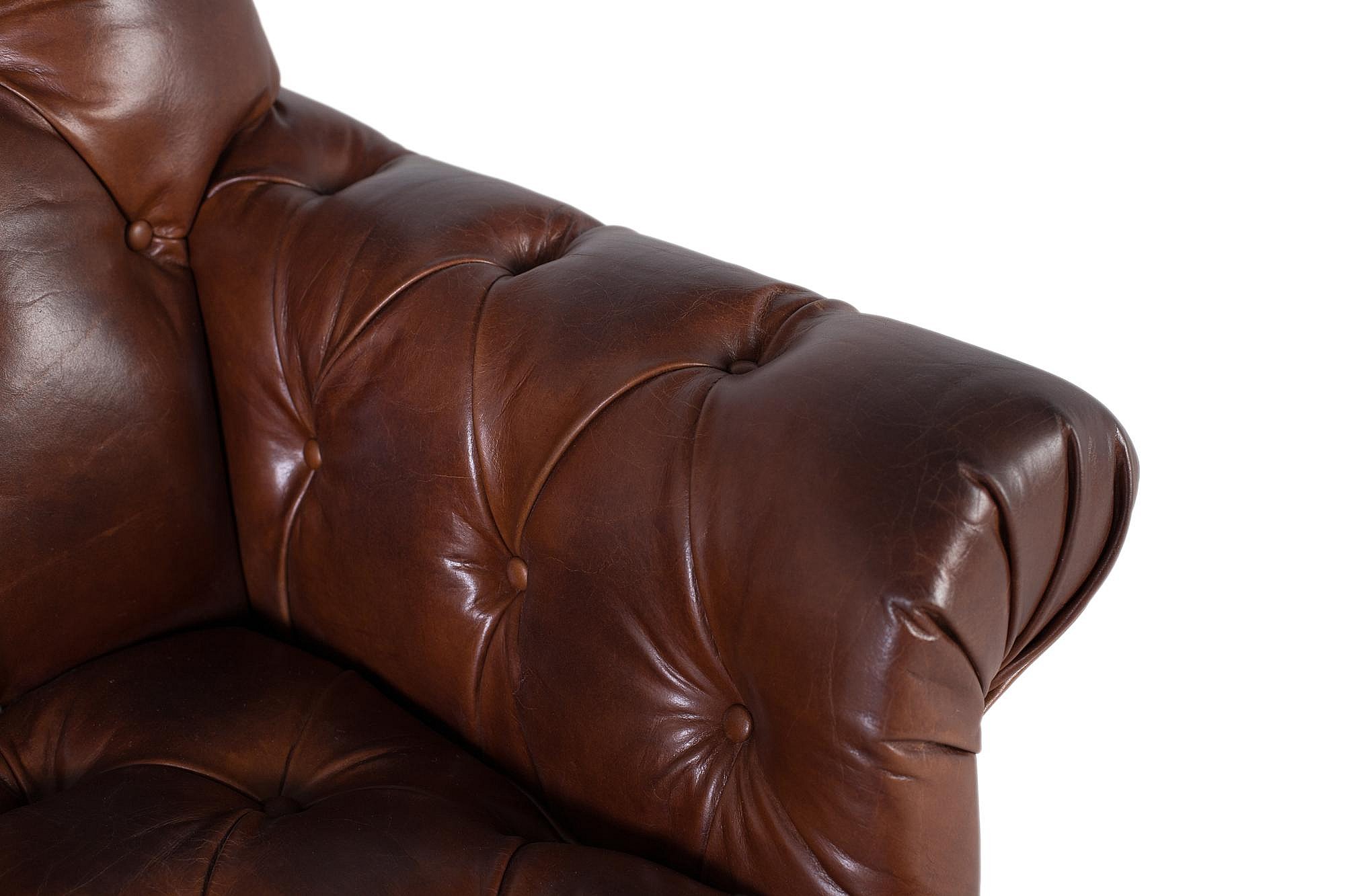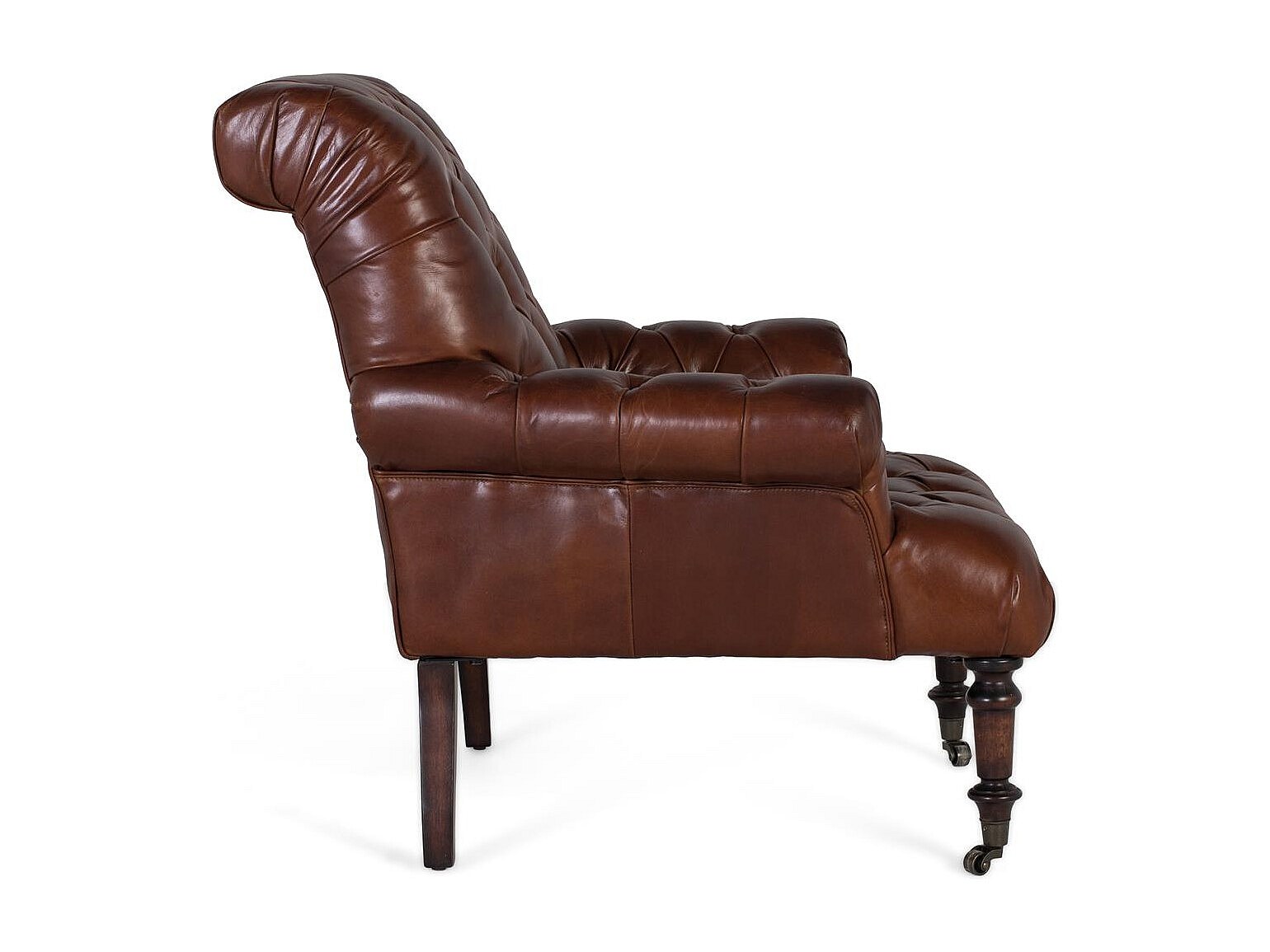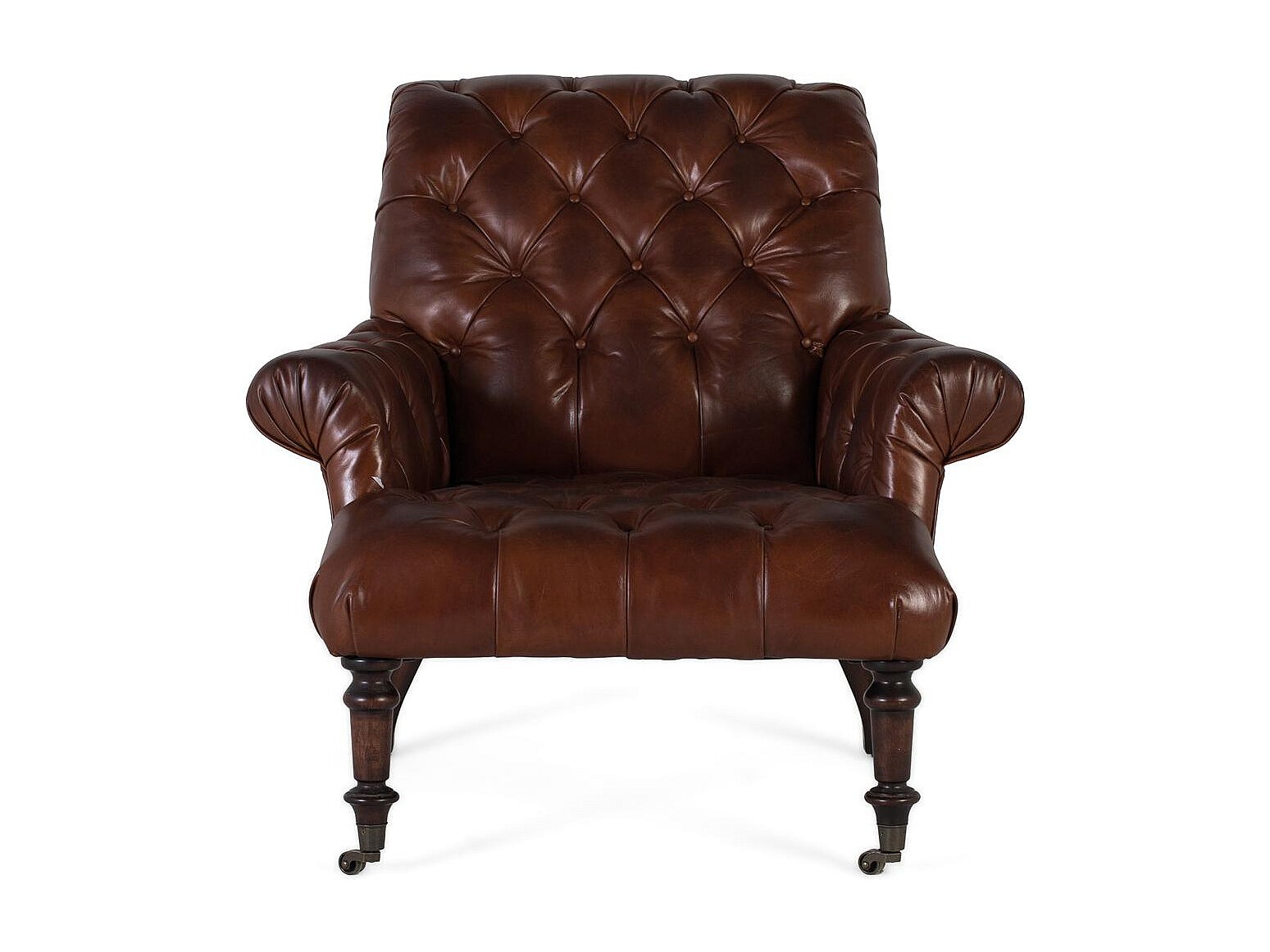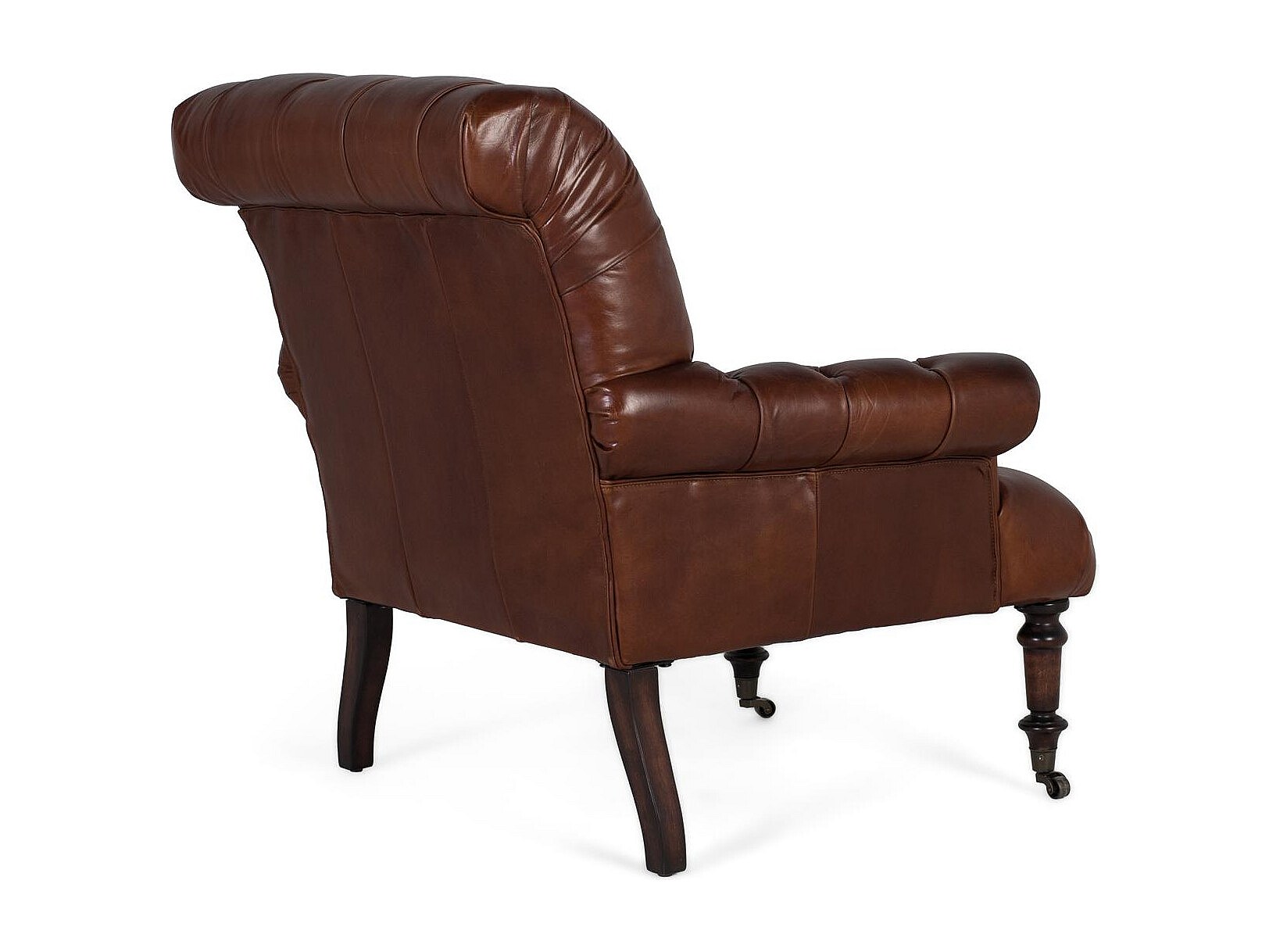 Met leer beklede fauteuil met gecapitonneerde armleuningen