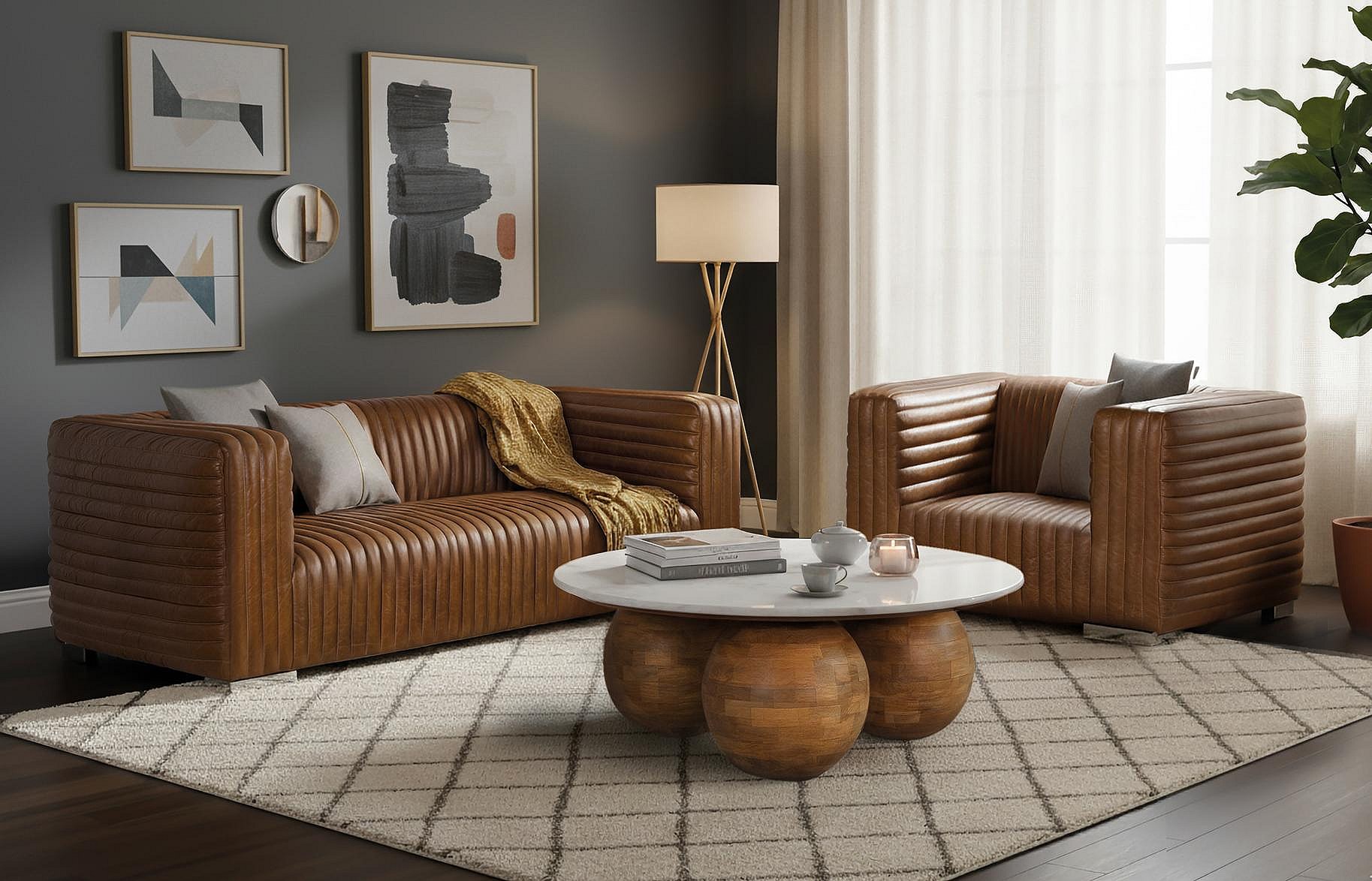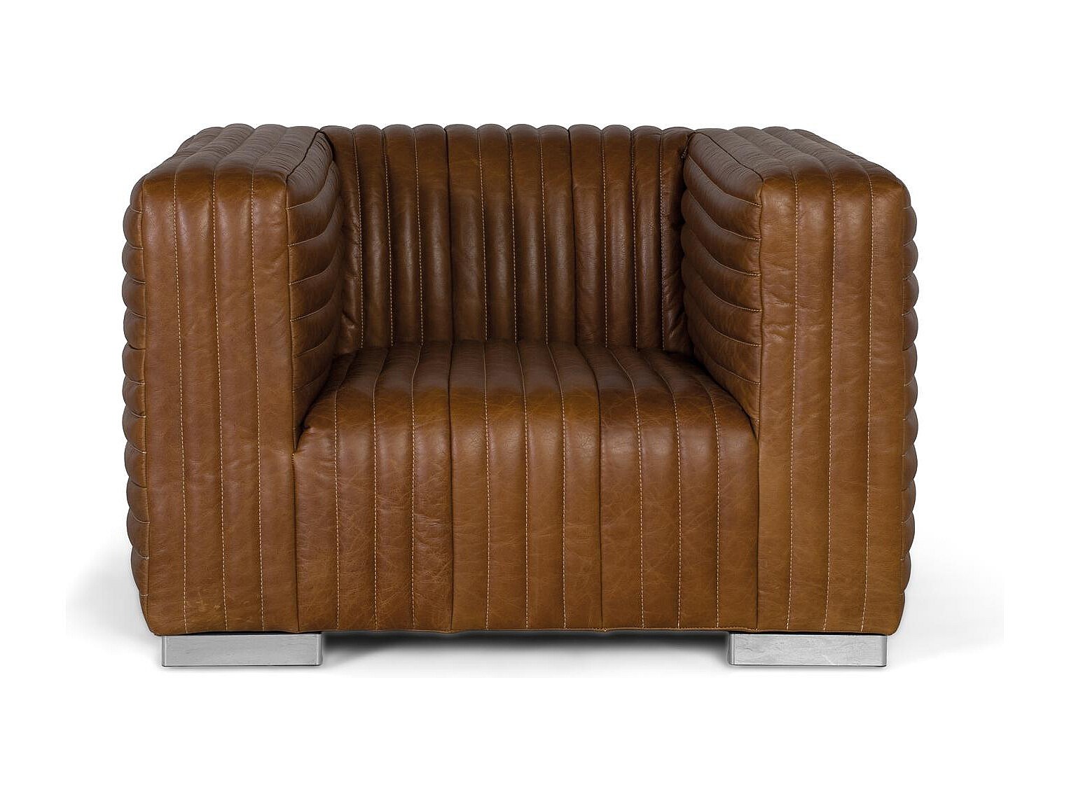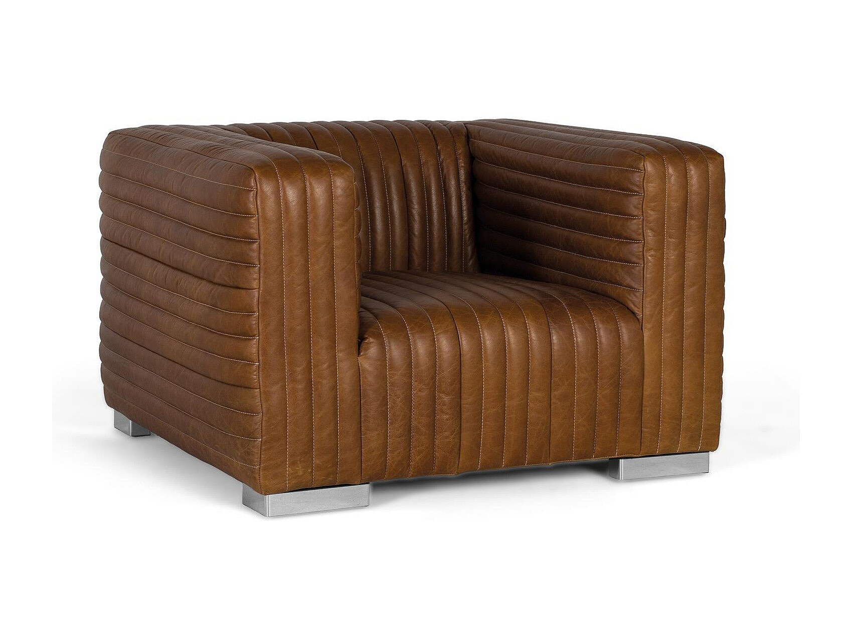 Met leer beklede fauteuil met kubusvorm en stalen poten