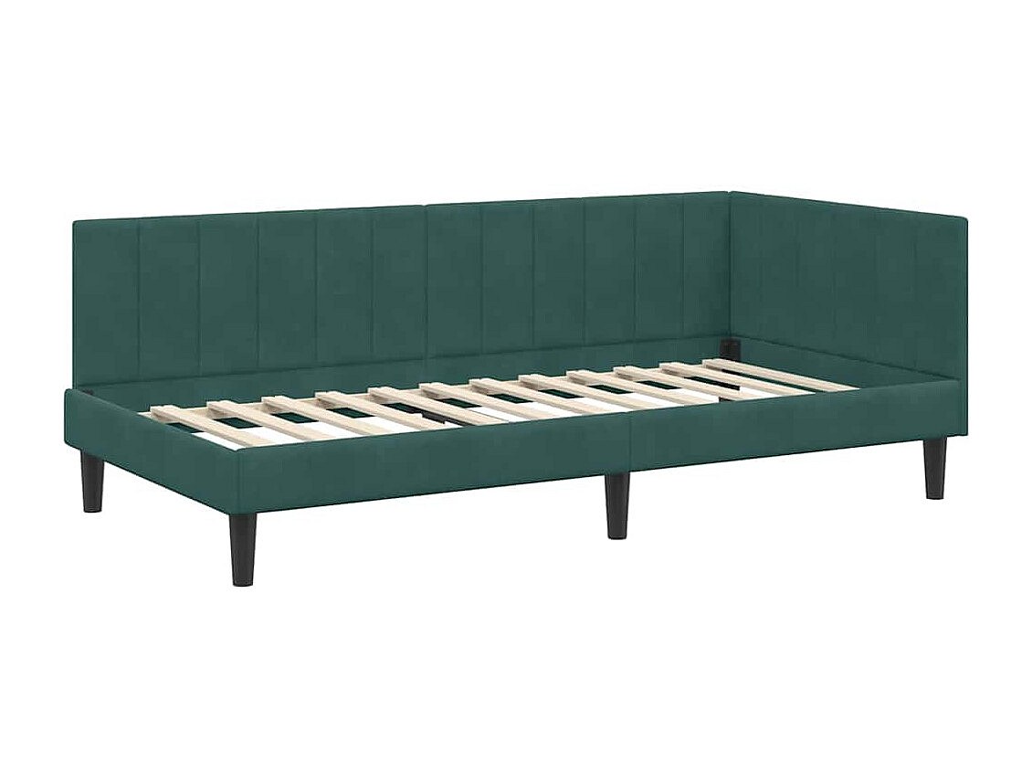Hoek Bed Frame Donkergroen 90 x 190 cm Stof en Engineered Hout