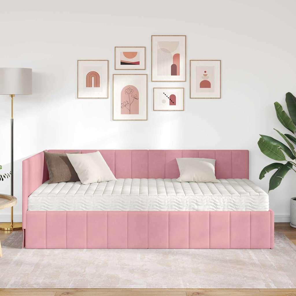 Hoekbedframe Roze 90 x 200 cm Velours en gemanipuleerd hout