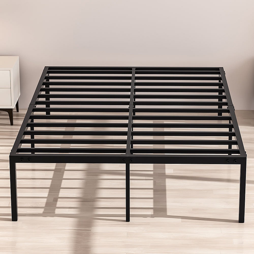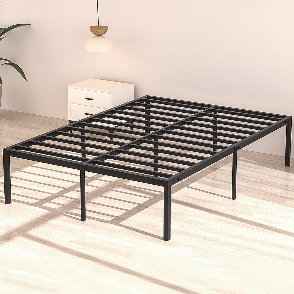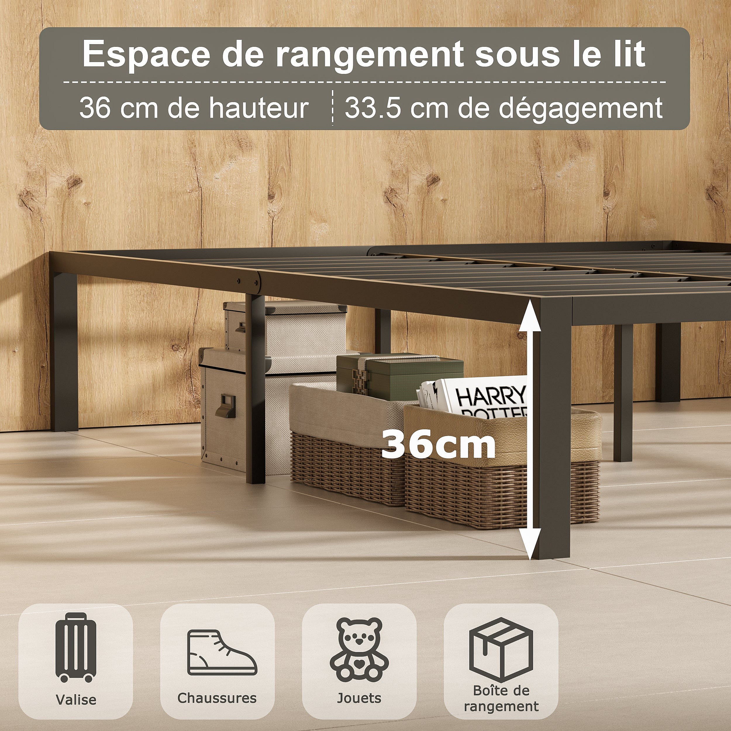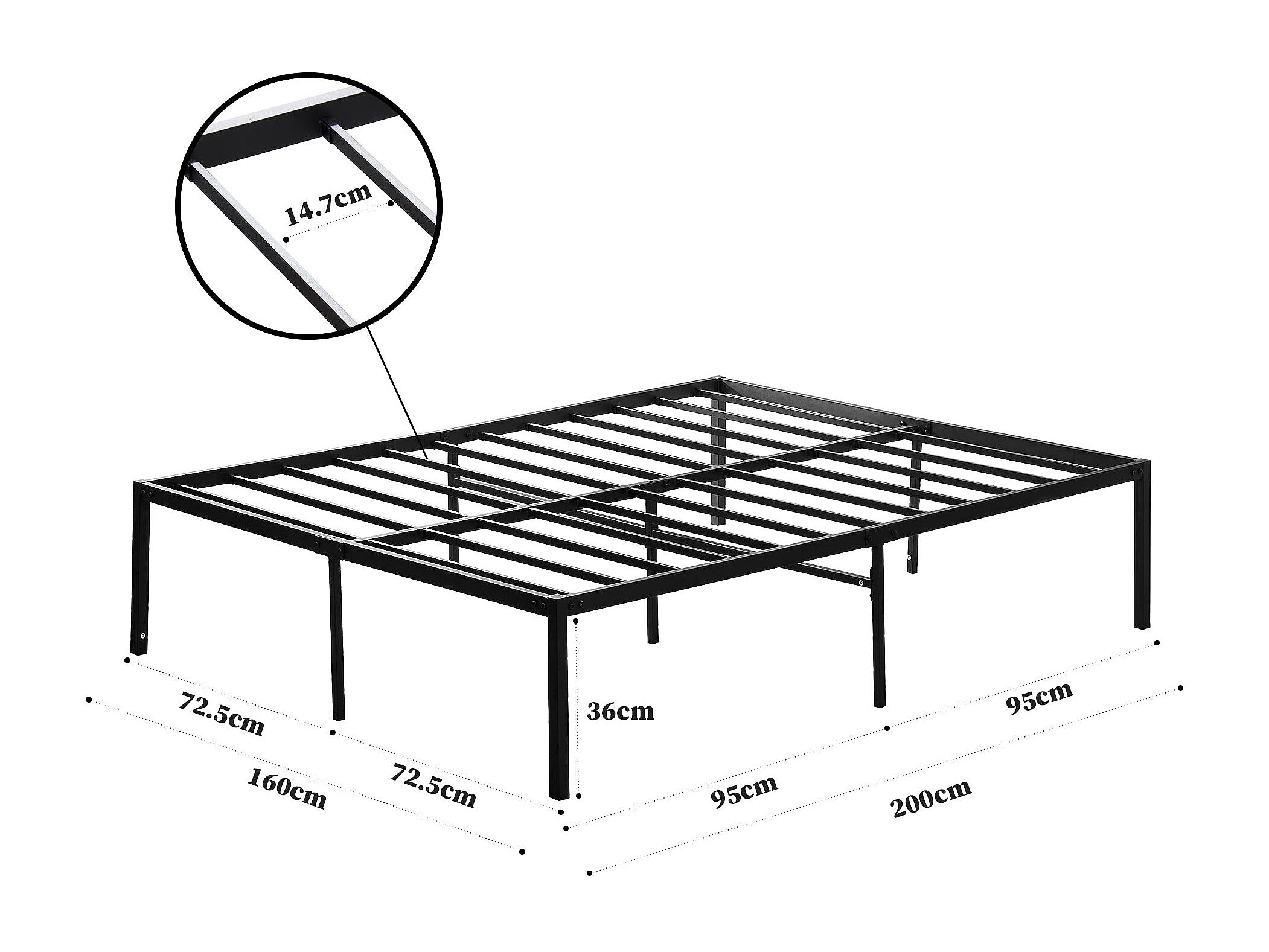Volwassen bed 160x200cm, tweepersoonsbed met LED en lades, ijzeren bed met hoofdbord en lattenbodem, zwart