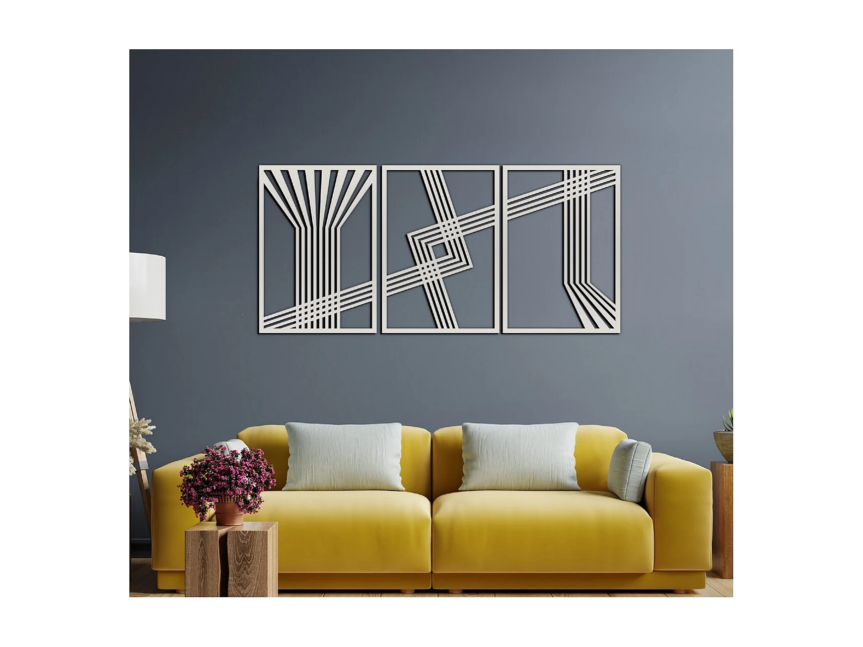 Metalen Decoratie Lijnen 11 - Zilver - 150x3x71 cm - EPIKASA