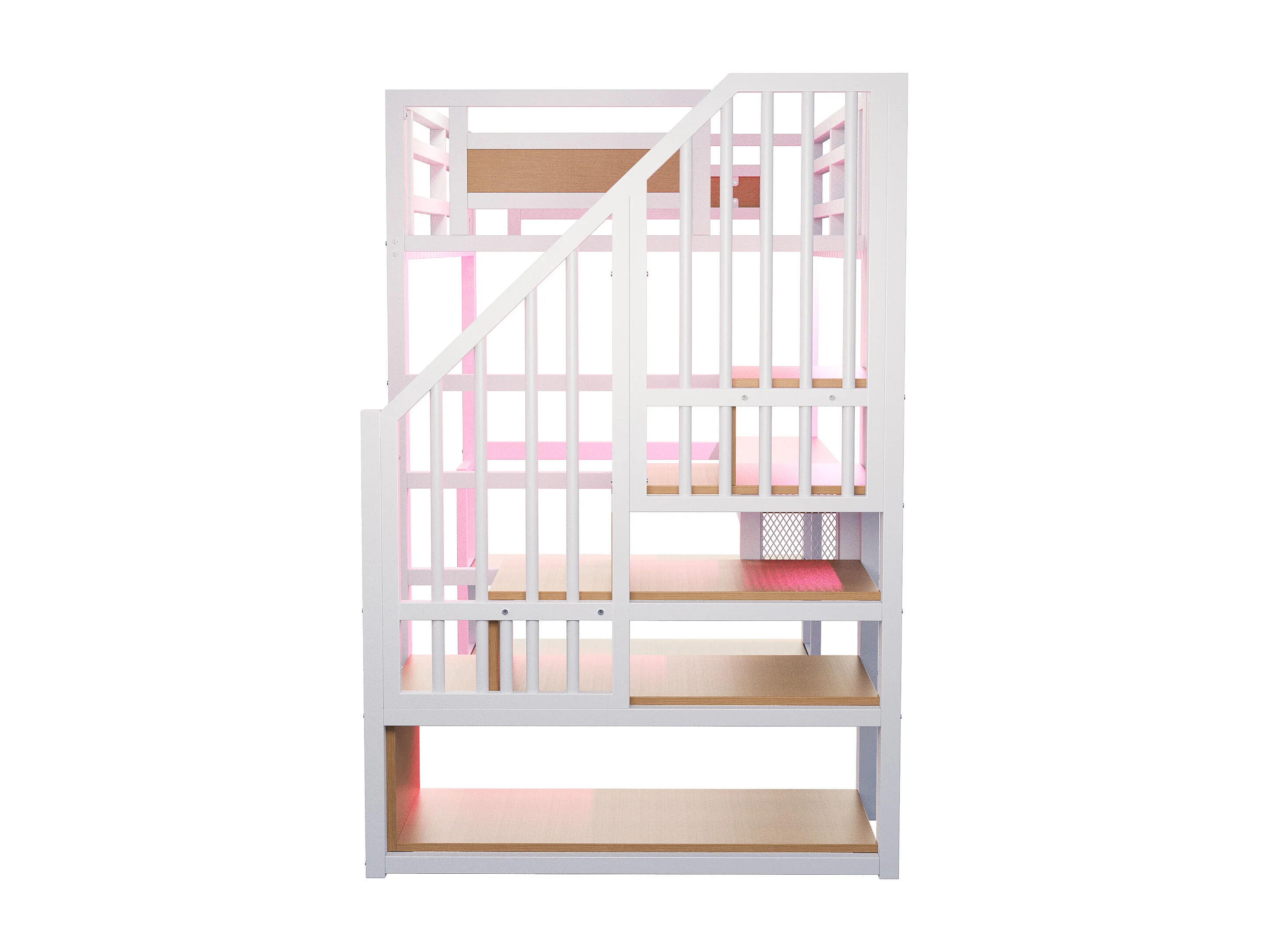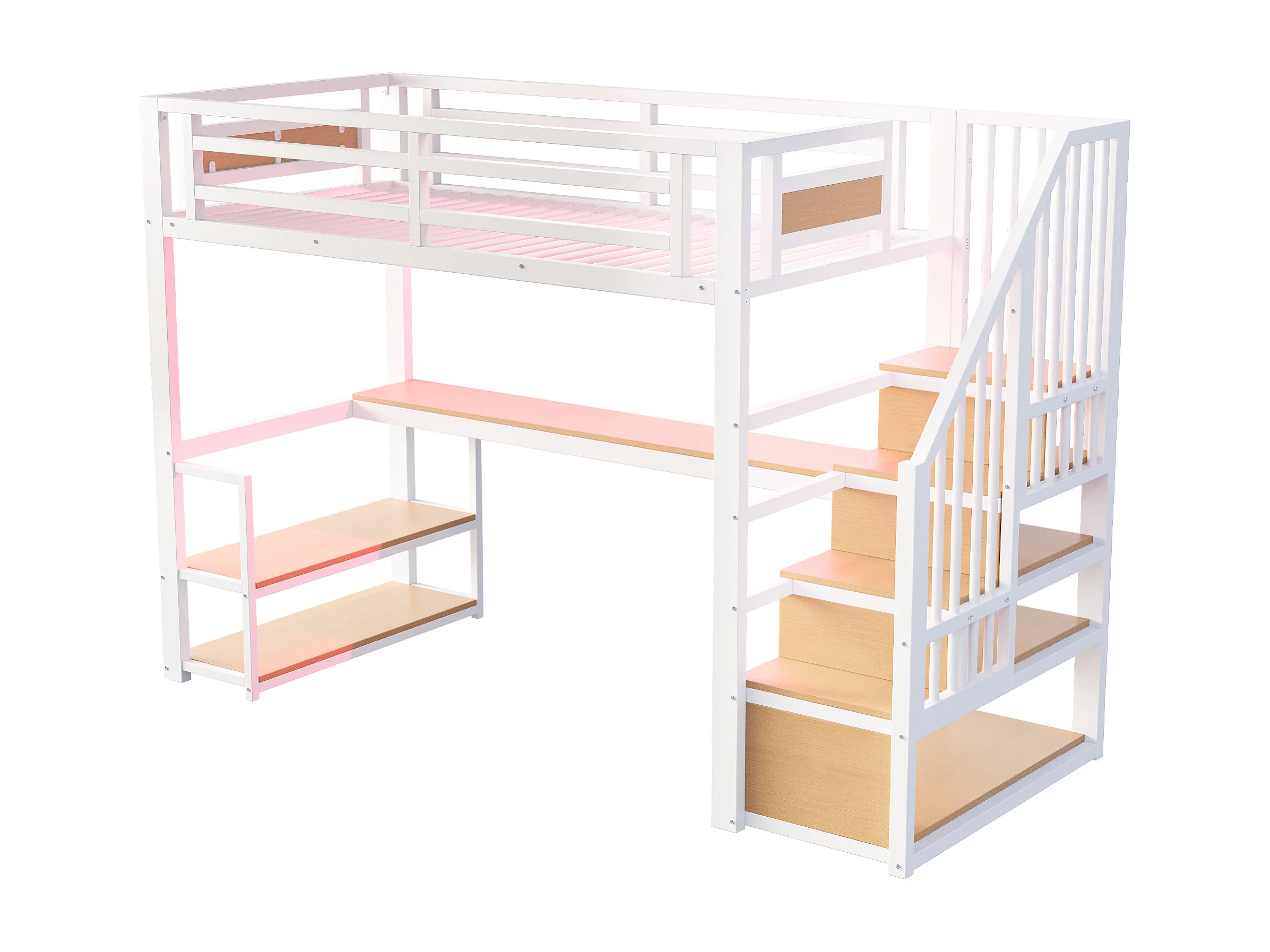 Metalen hoogslaper 90x200 - met LED-verlichting - met stopcontact - met opbergtrap - met planken + tafel - Wit​ (Matras niet inbegrepen)