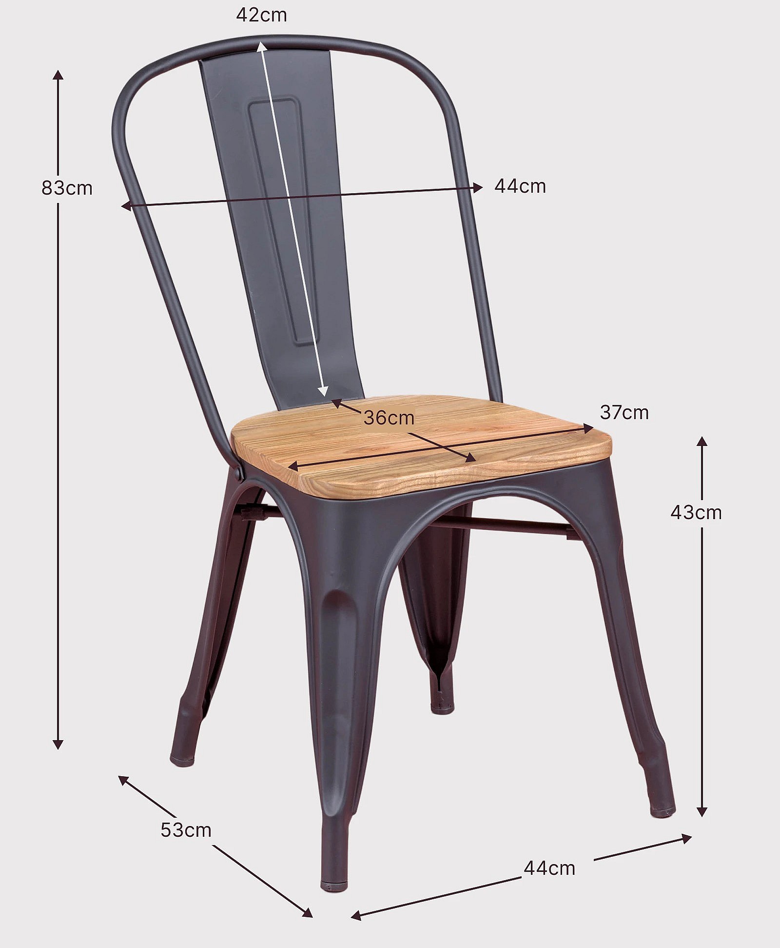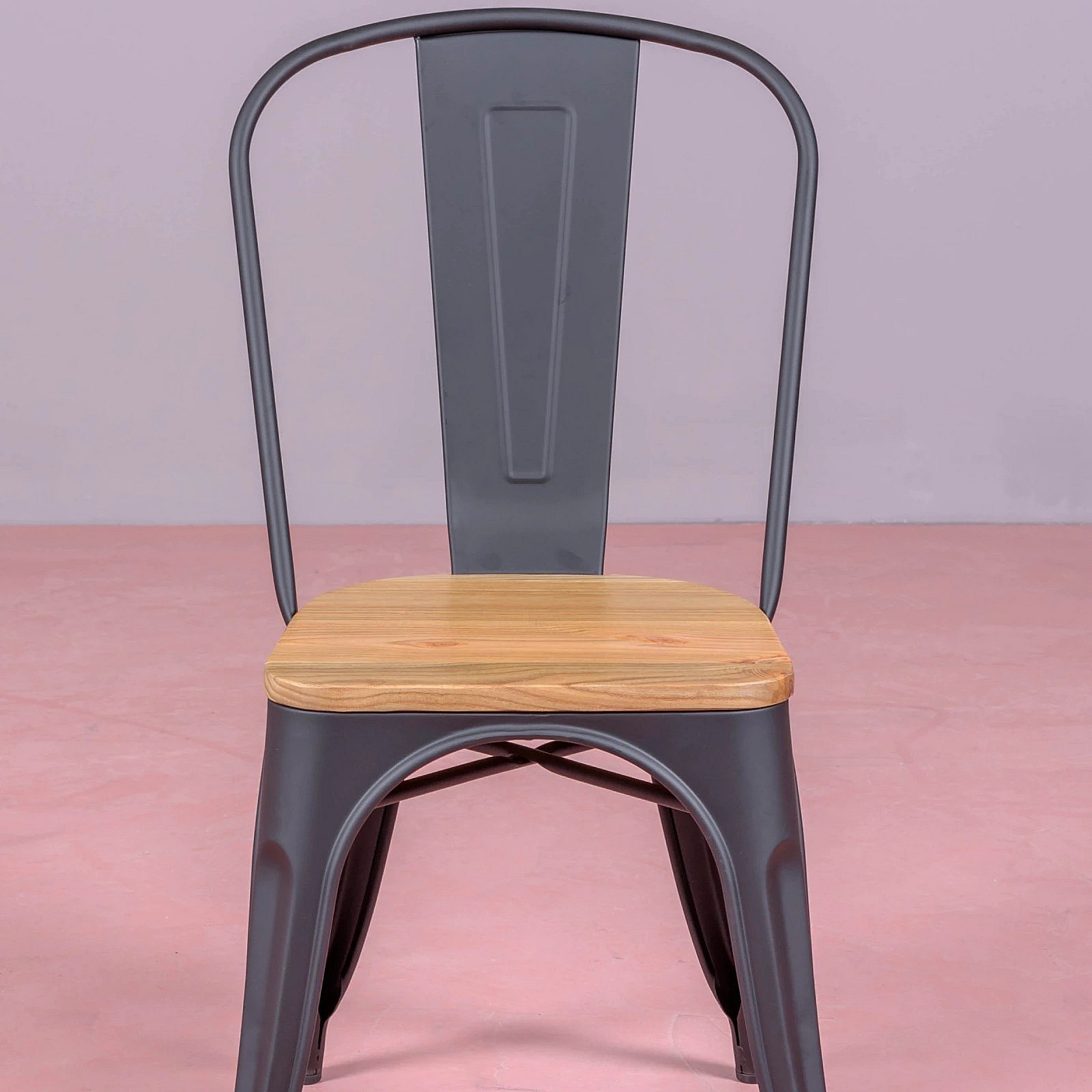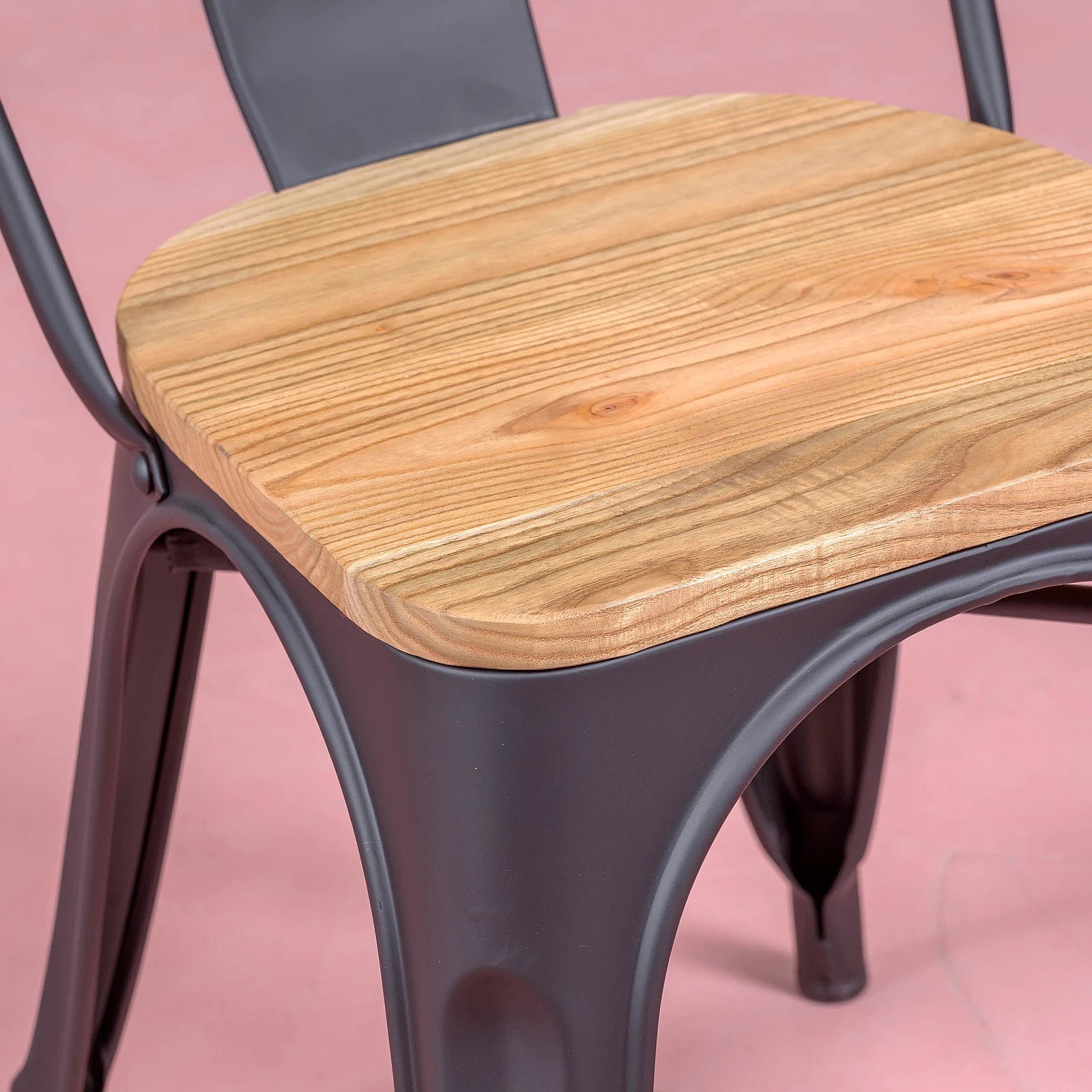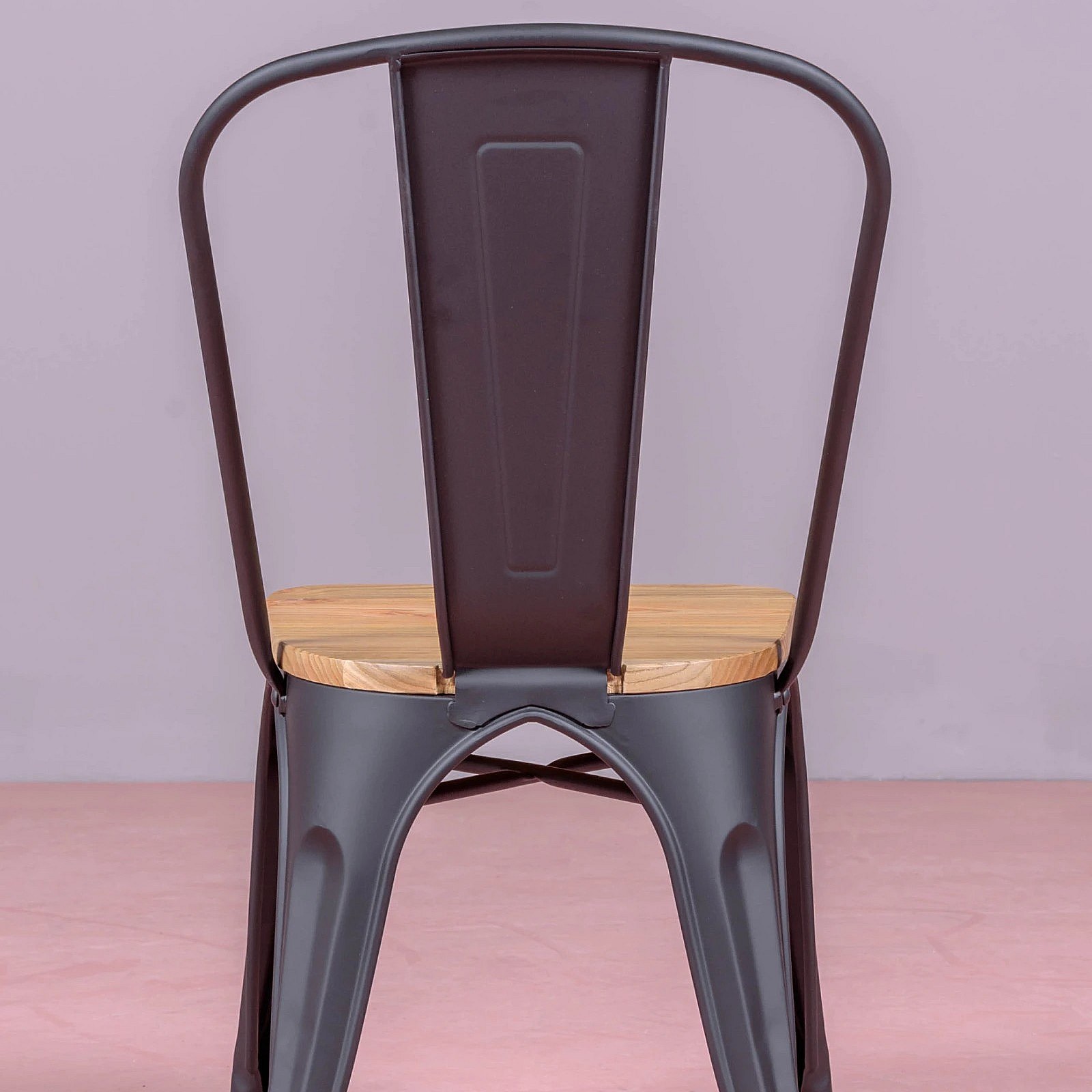 Metalen stoel met iepenhouten zitting - Bistro - Zwart