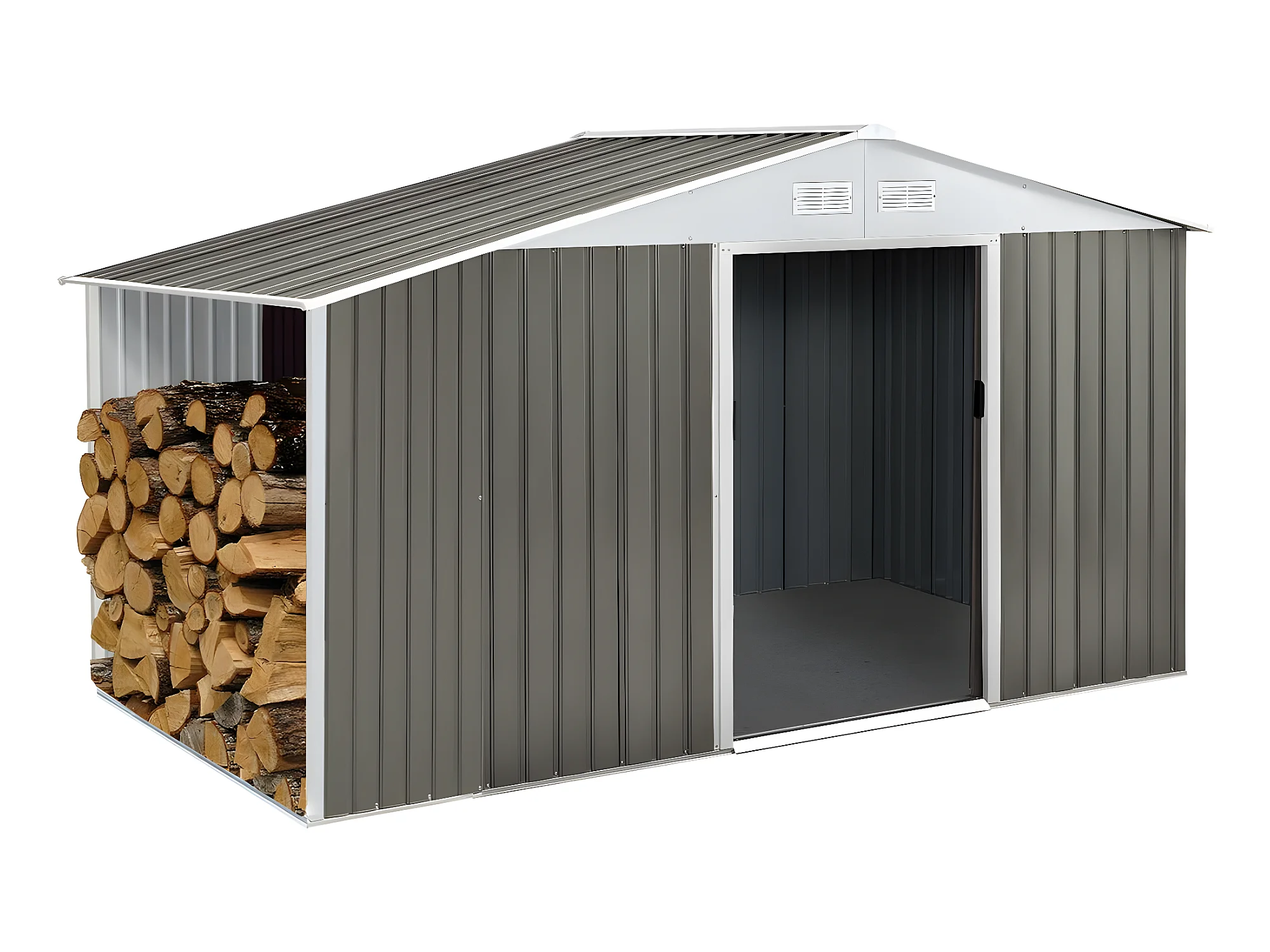 Metalen tuinhuis "Dallas" 5,29 m² met houtopslag en 4 ventilatieopeningen