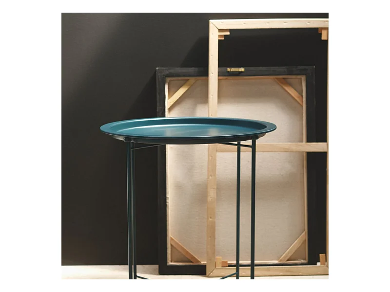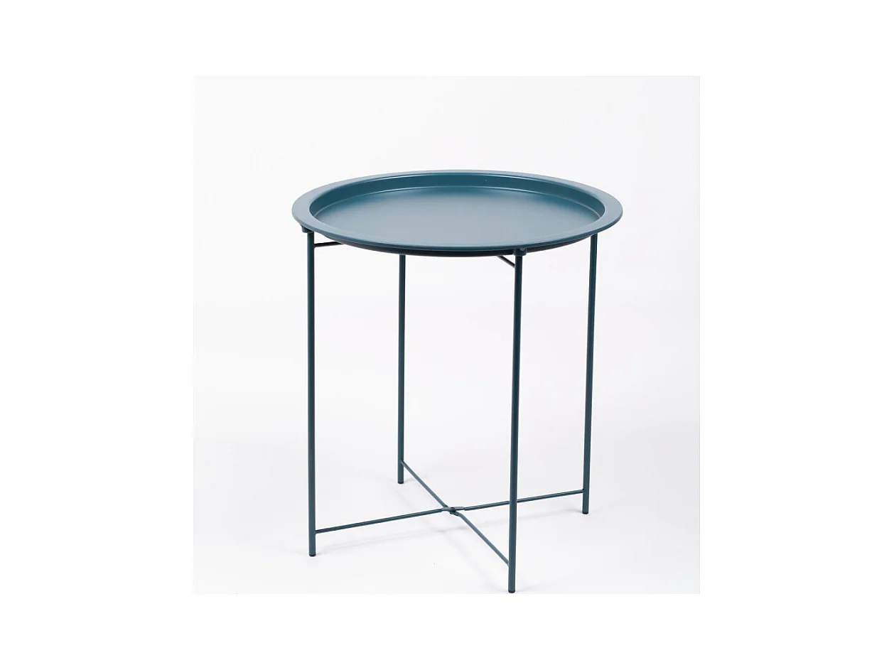 Metallic bijzettafel in petrolblauw. 47x50cm