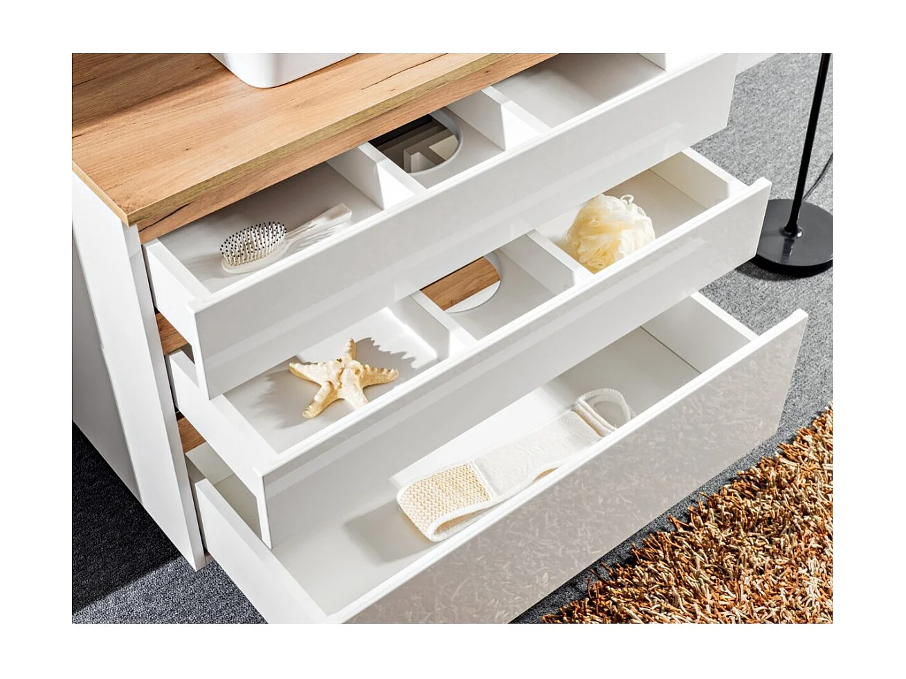 Meubel onder wastafel ASKA 94 cm hoogglans wit - Hangend model met laden