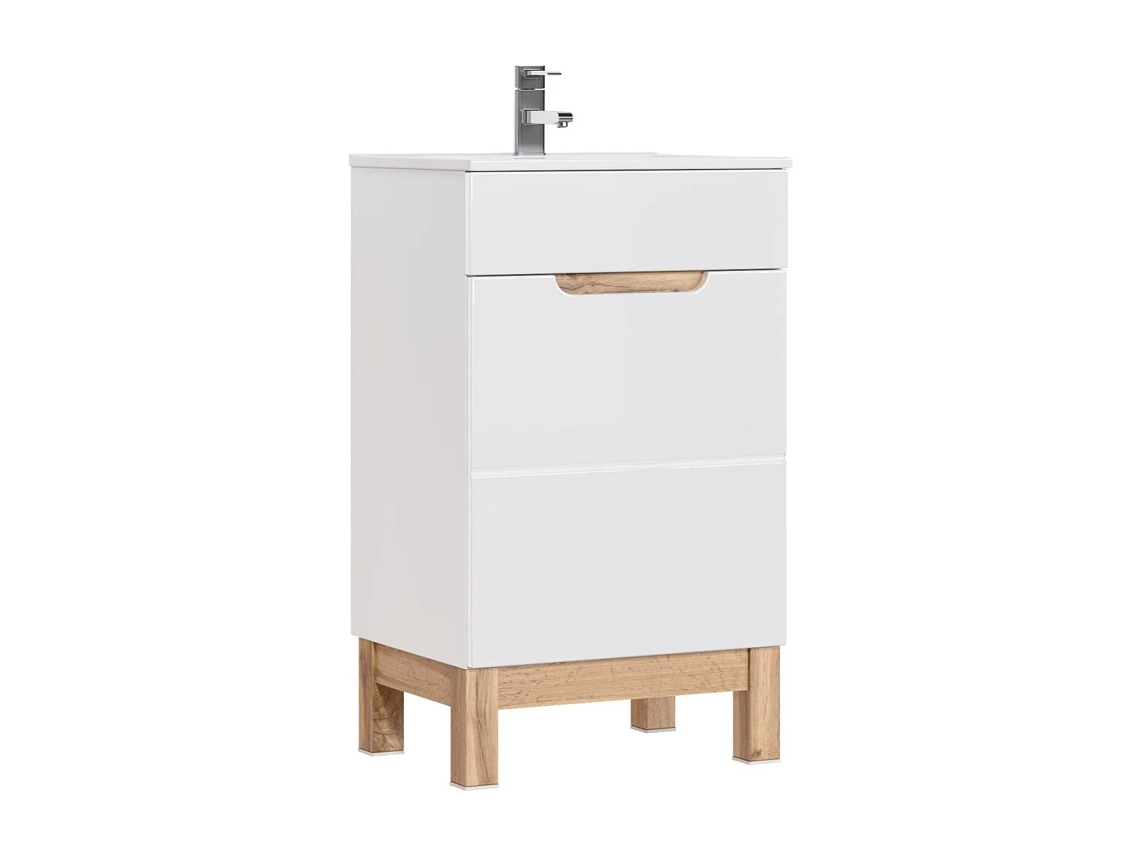 Meubel onder wastafel VANO – 2 laden – Alpenwit – L50 × B39 × H57 cm – Hangend