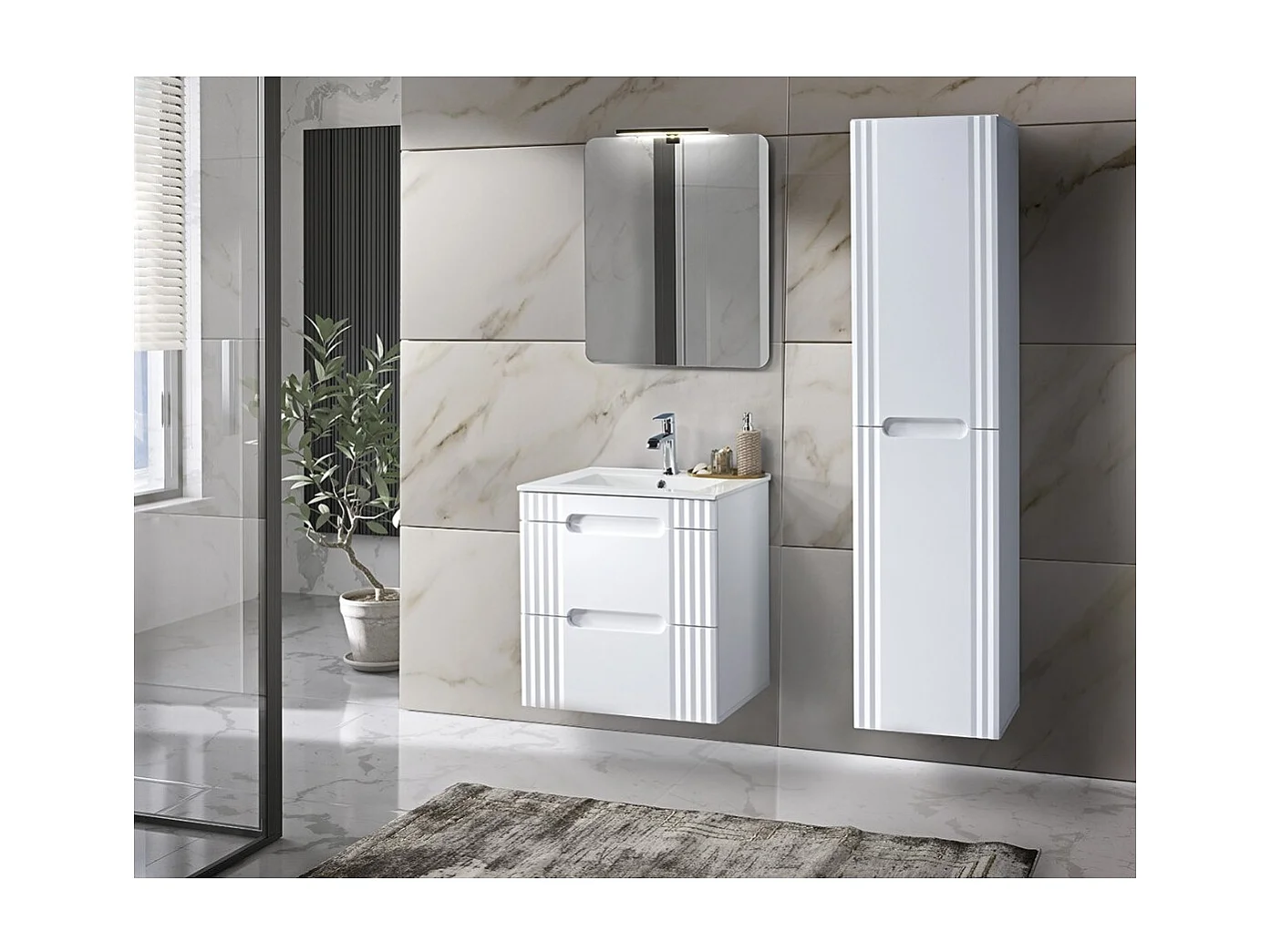 Meubel onder wastafel FIDJI 60 cm - Alpenwit glanzend - 2 laden - Muurbevestiging of op de vloer