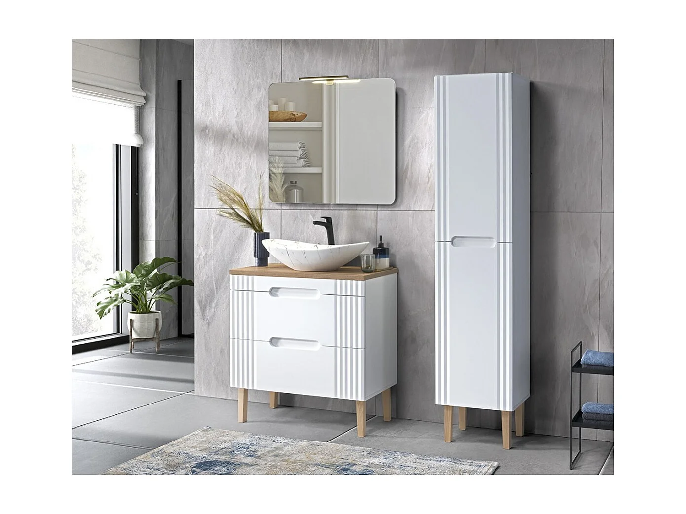 Meubel onder wastafel FIDJI 80 cm – Alpenwit glanzend – 2 laden – Wand- of vloermontage