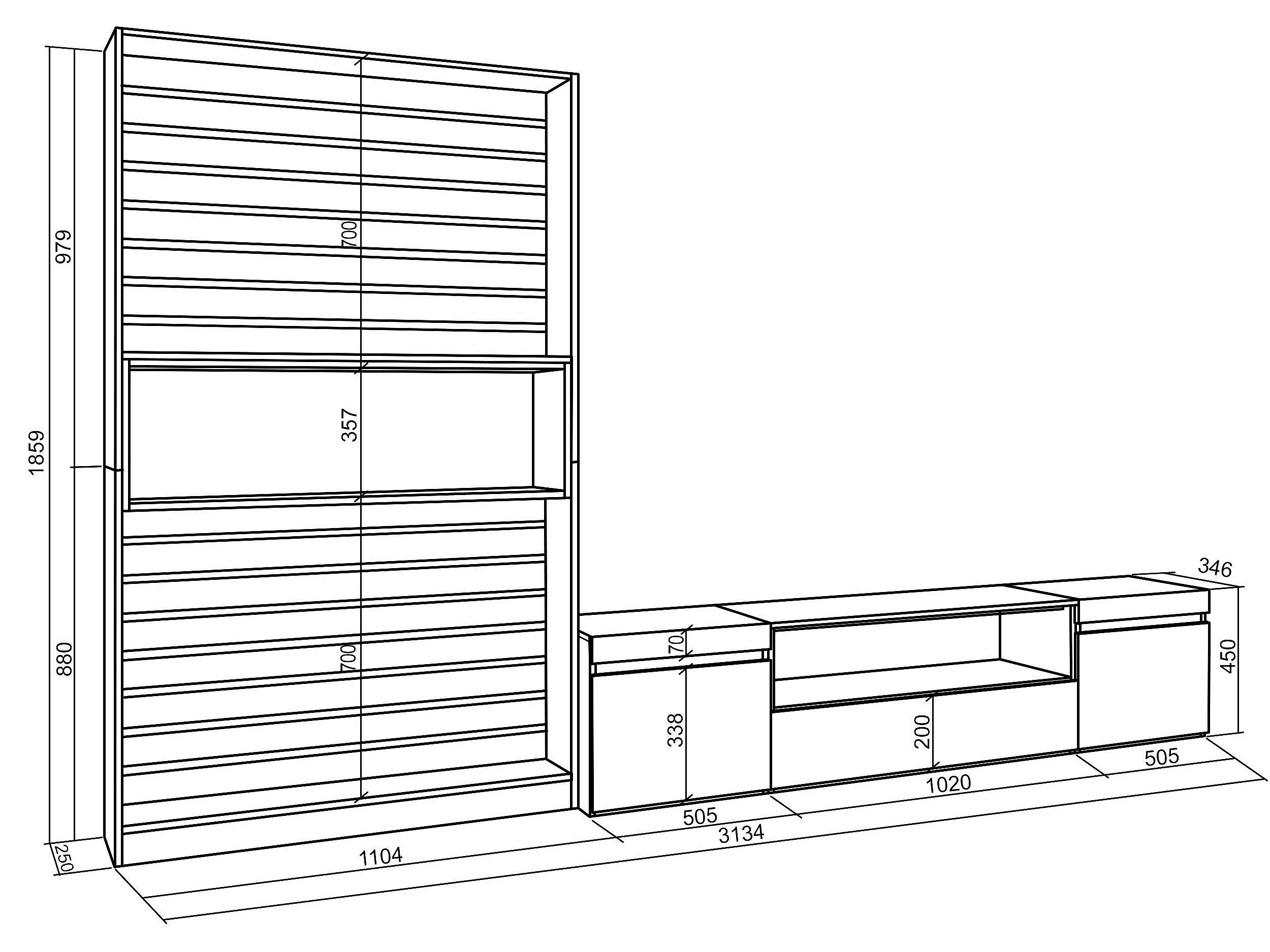Meubels voor woonkamer, 310x186x35cm, Voor tv's tot 80", TV-Tafel, Cement