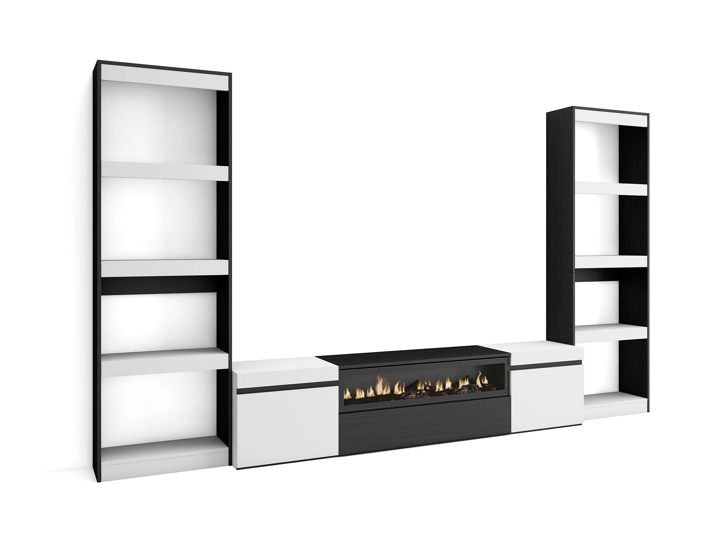 Meubels voor woonkamer, 320x186x35cm, Voor tv's tot 80", Elektrische haard, Wit en Zwart