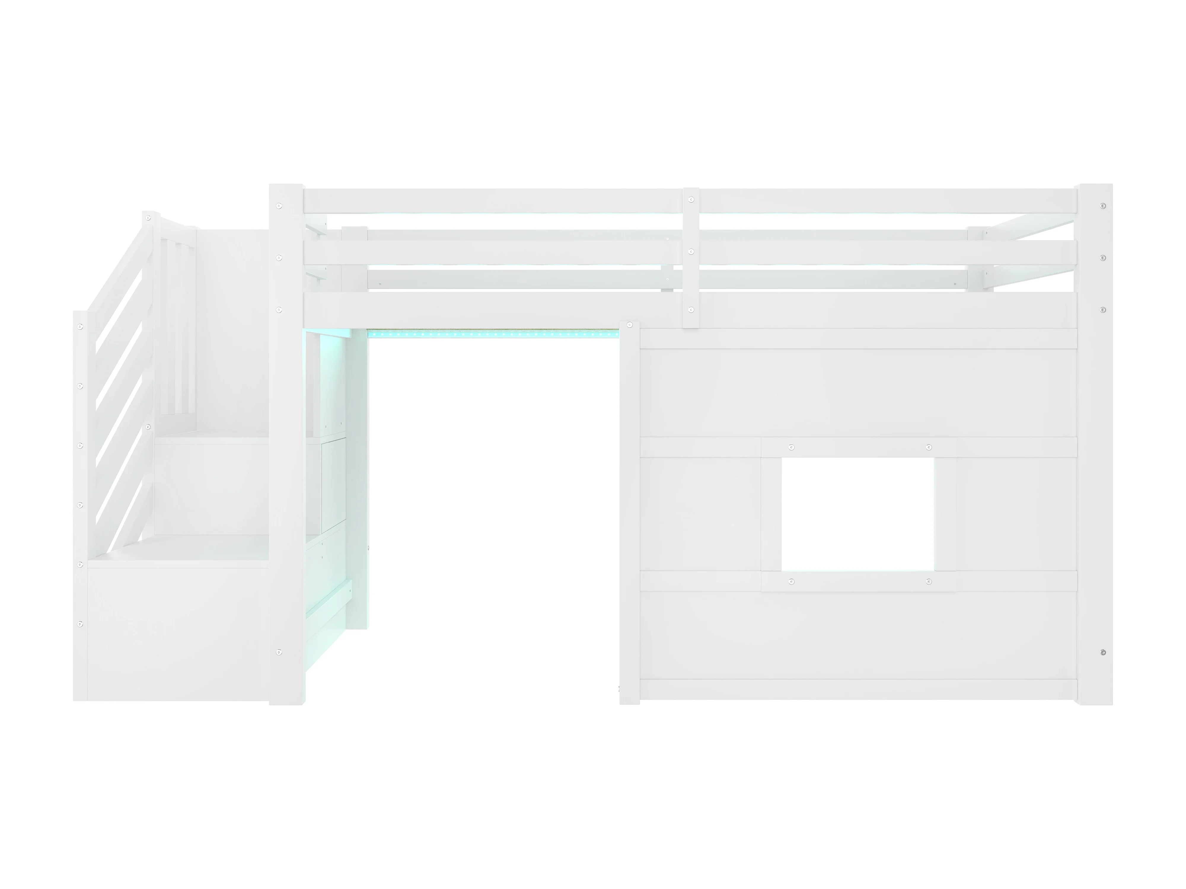 Mezzaninebed 90x200 cm met opbergruimte, hout, wit (254x95x127 cm)