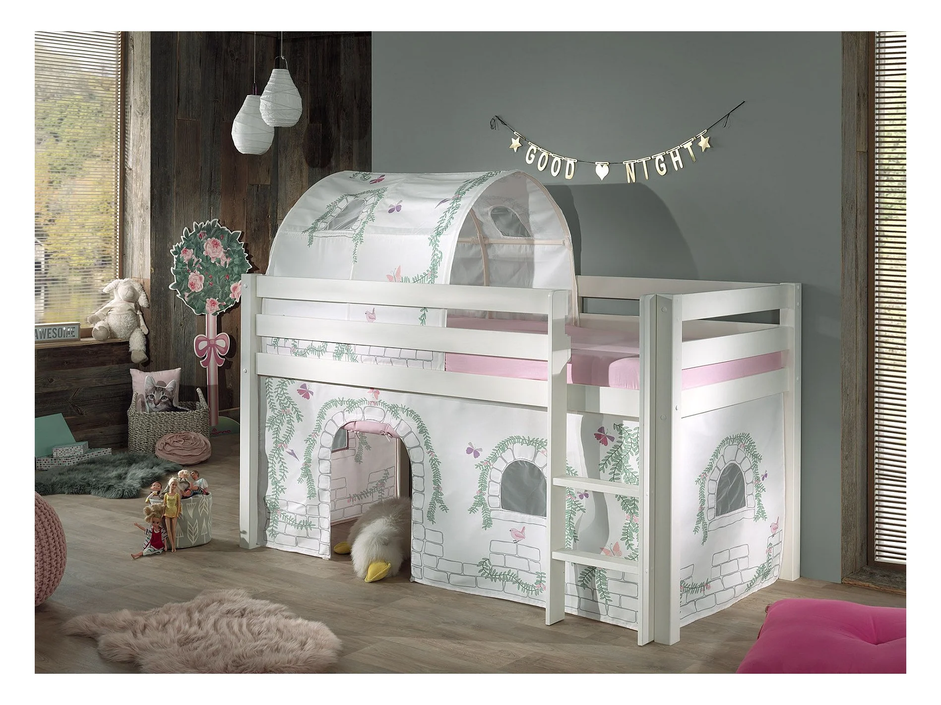 Hoogslaper 90x200 cm met tent en prinsessentunnel massief grenen wit Pino