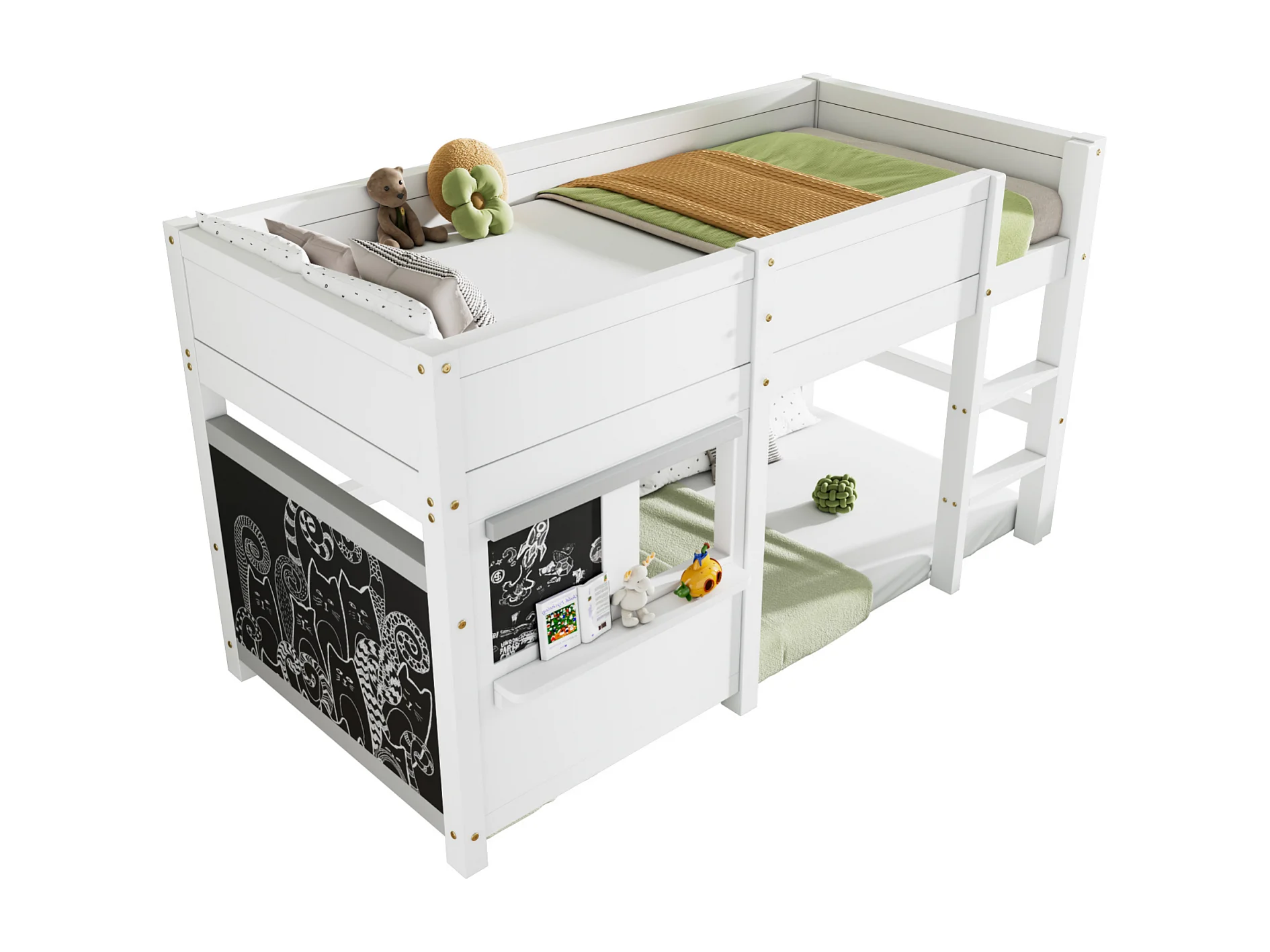 Scandinavisch halverhoog bed voor kinderen, met twee graffitiplanken, 3 trappen, 90x200cm