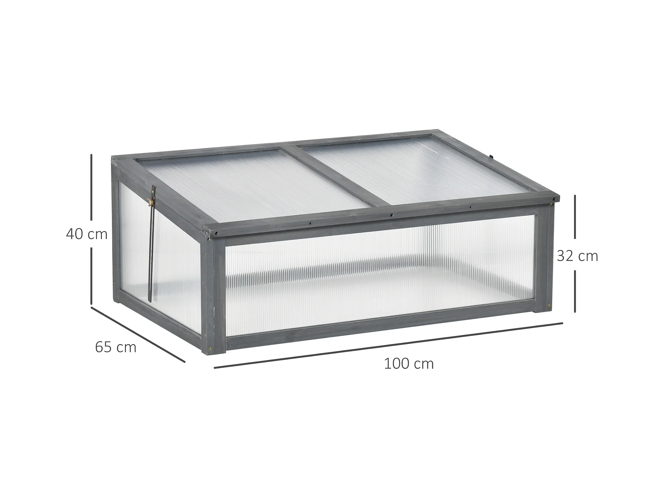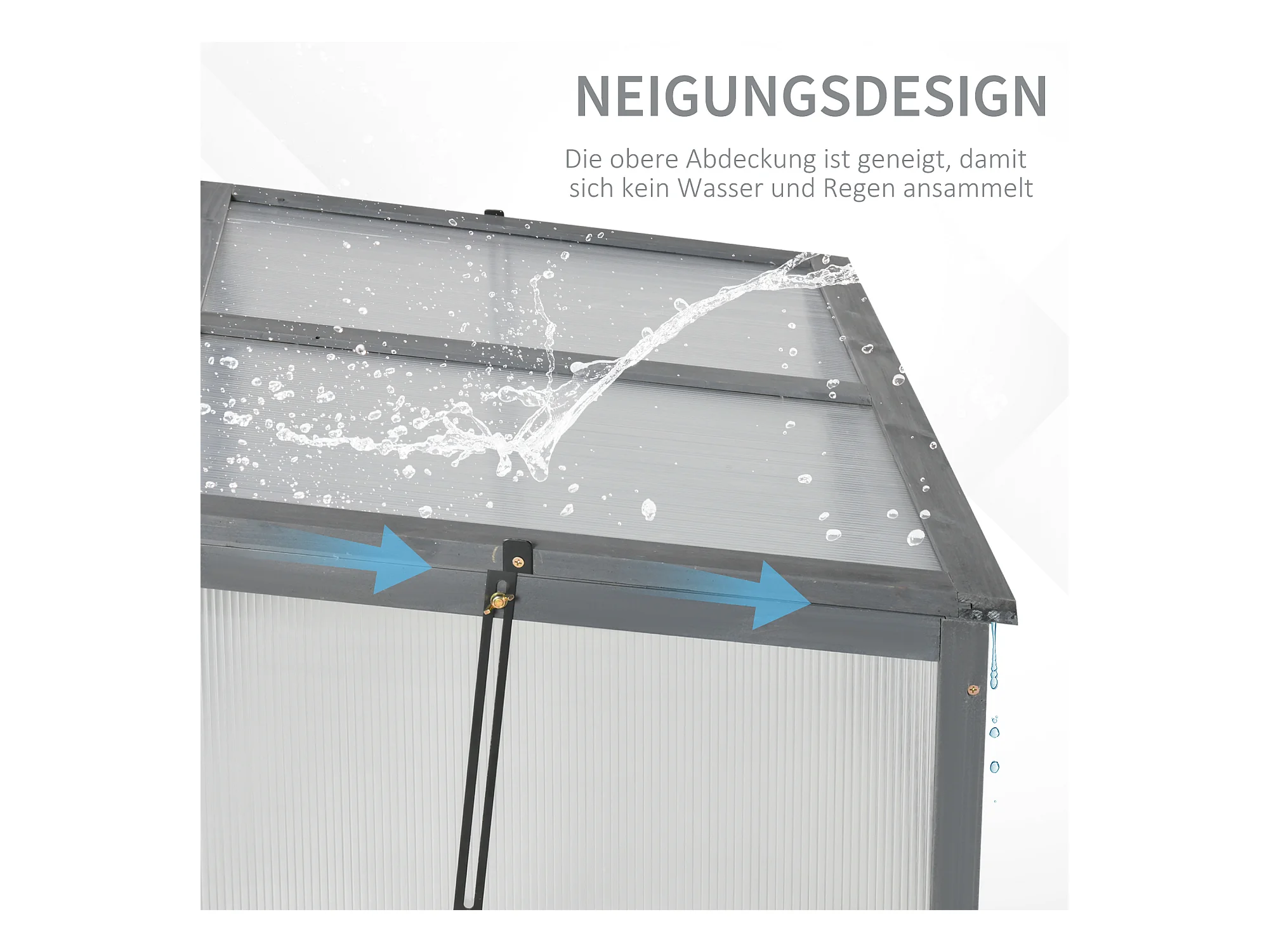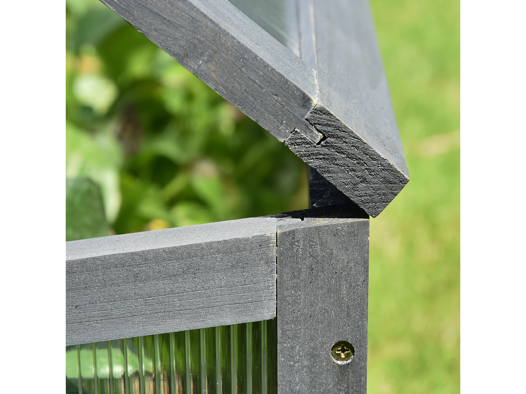 Mini houten plantenkas met UV-bescherming, schuin design, grijs (100x65x40 cm)