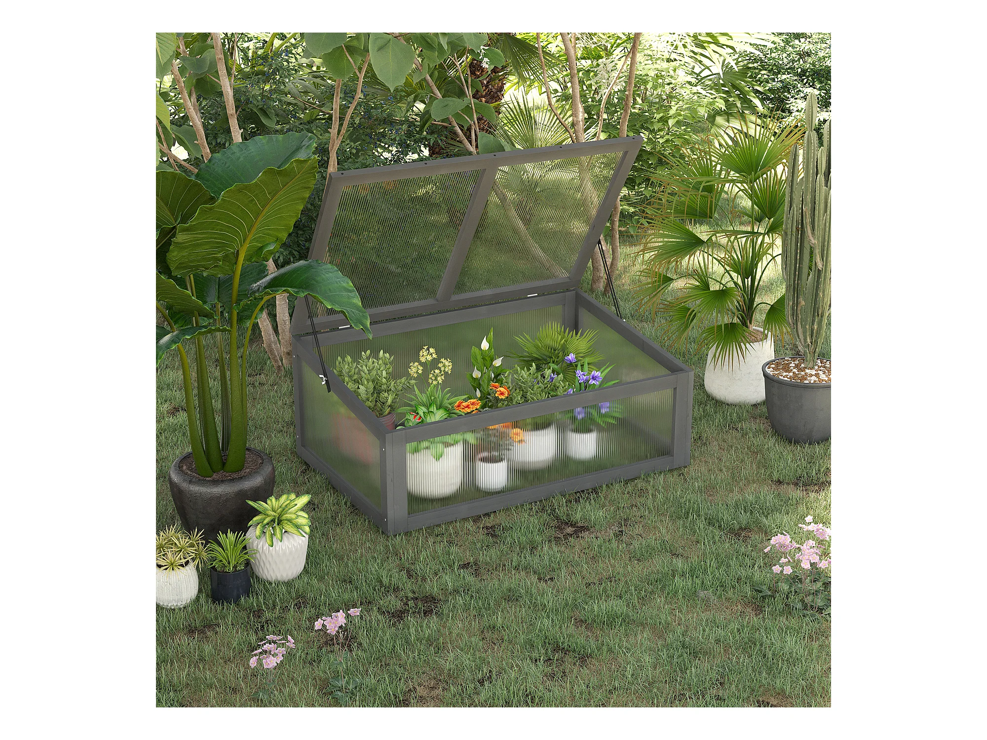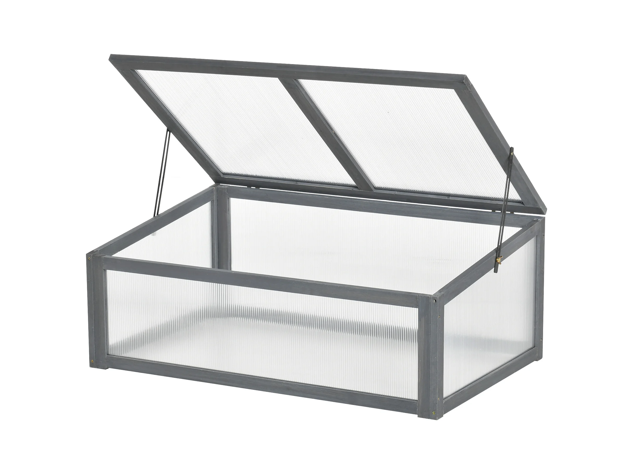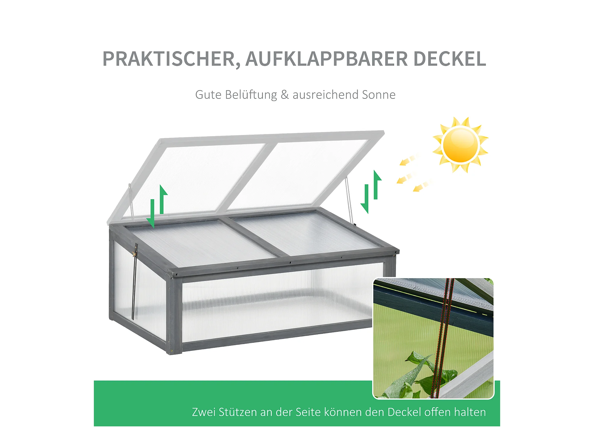 Mini houten plantenkas met UV-bescherming, schuin design, grijs (100x65x40 cm)