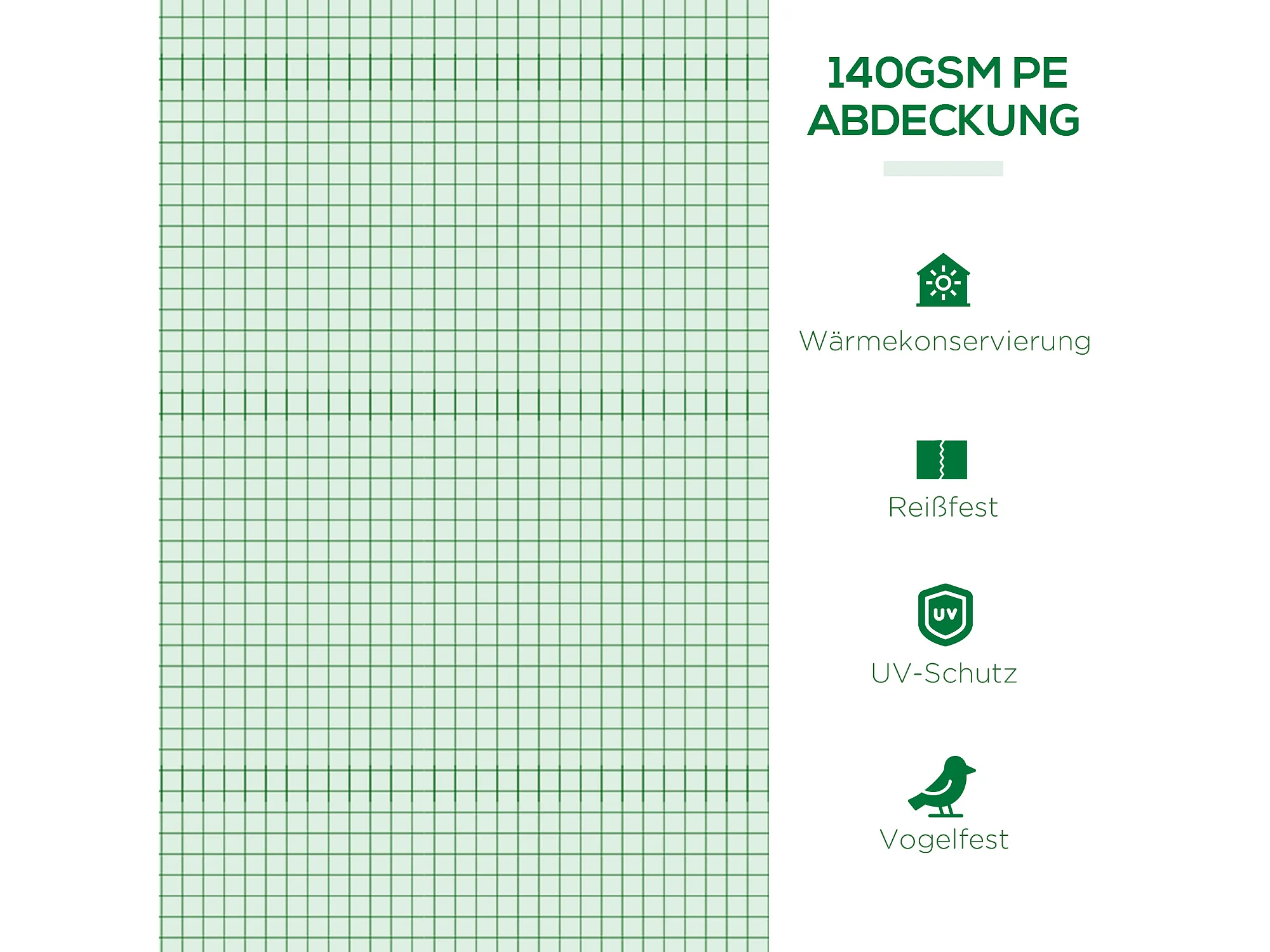 Mini tunnelkas, PE-afdekking met gaasvensters, UV-bestendig, groen (200x80x45 cm)