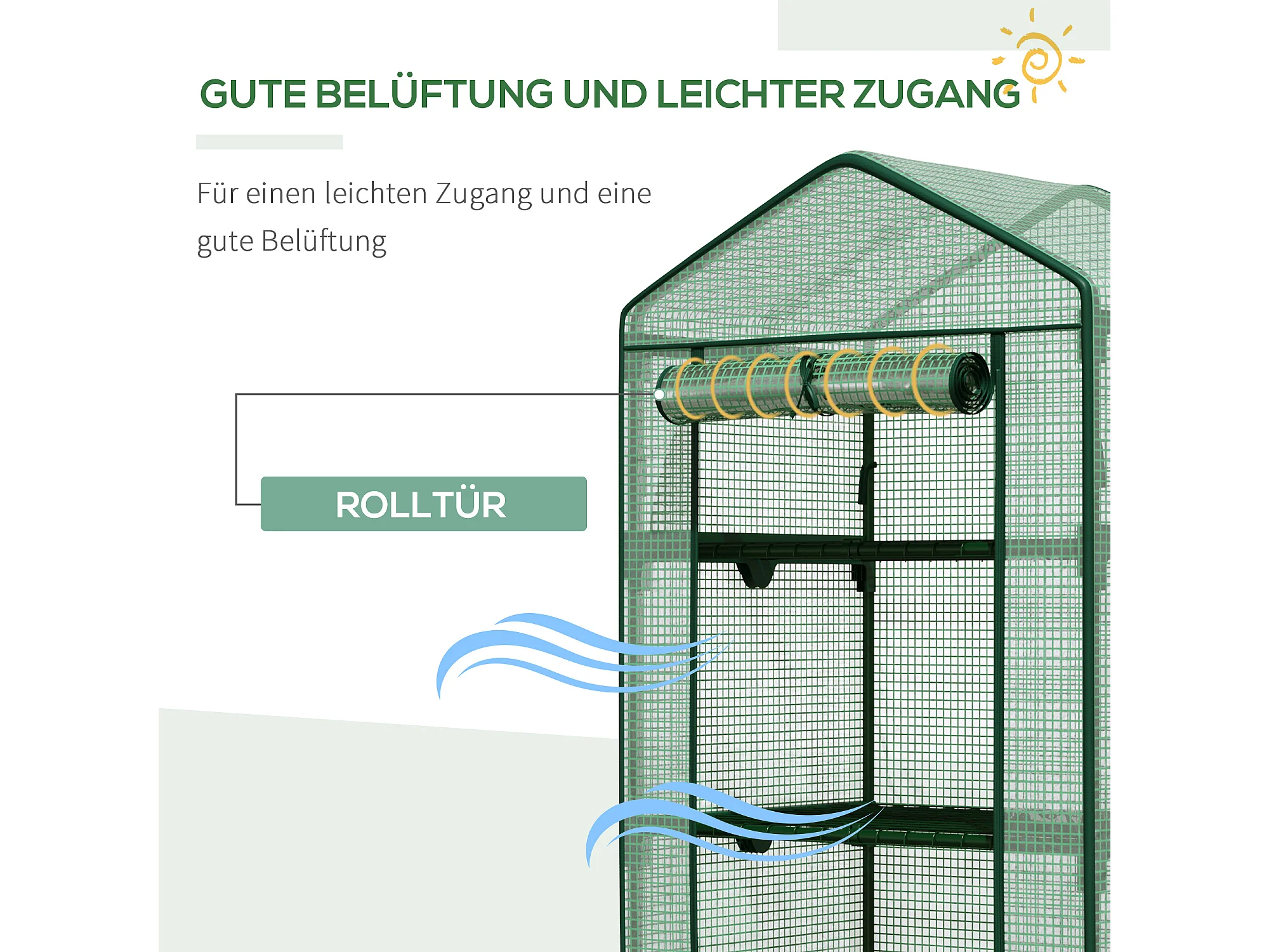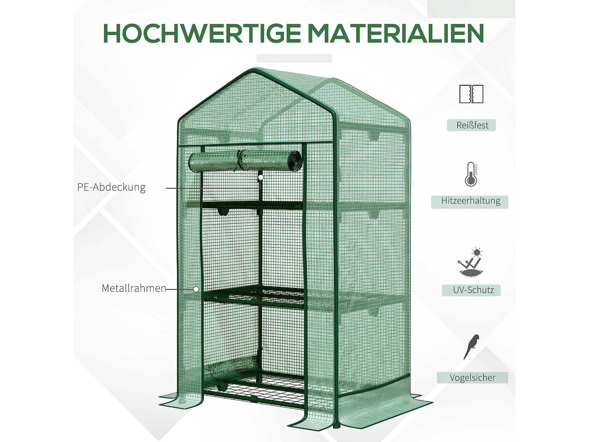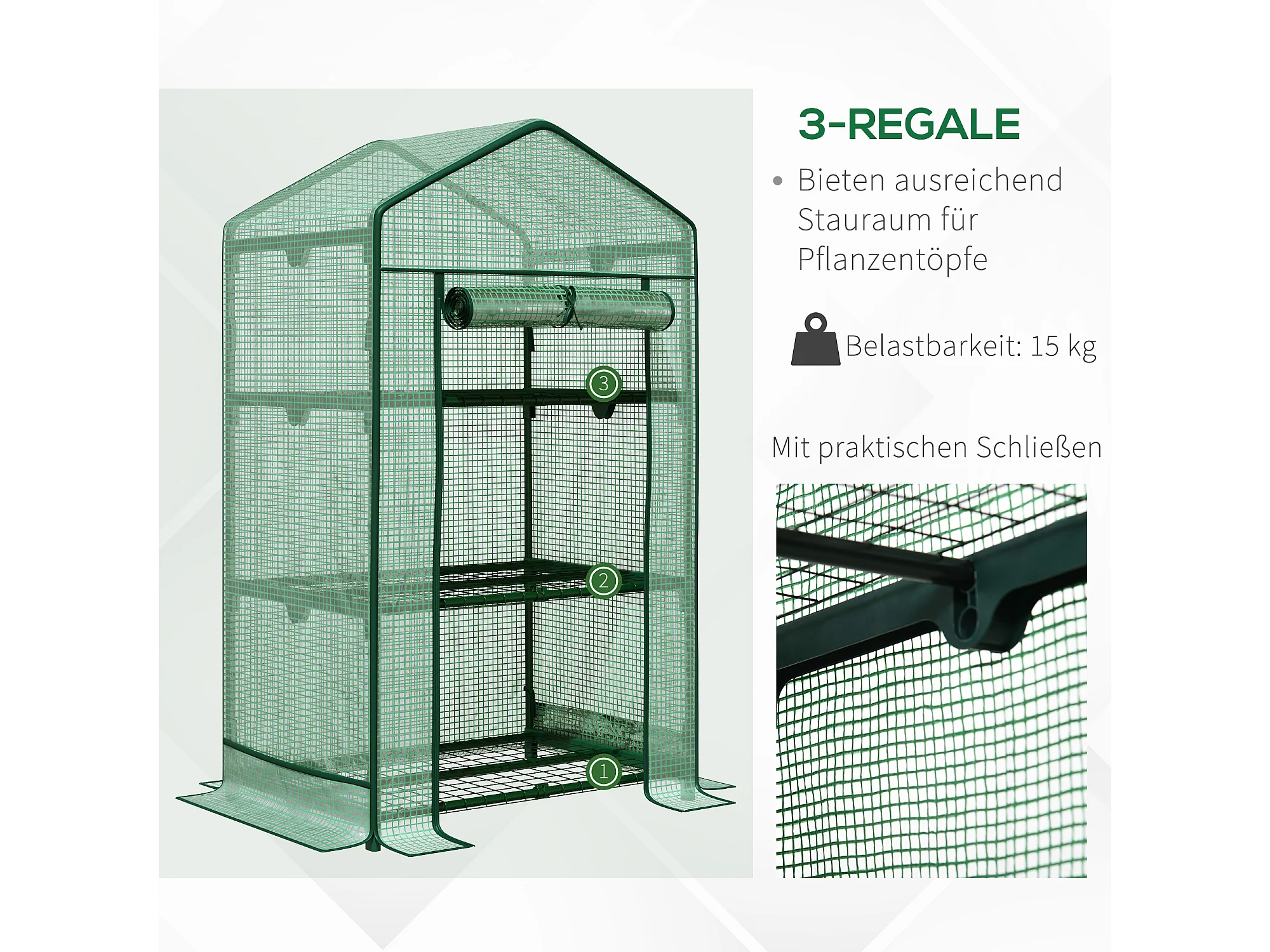 Minikas met planken, PE roldeksel, metaal, groen (69x49x125cm)