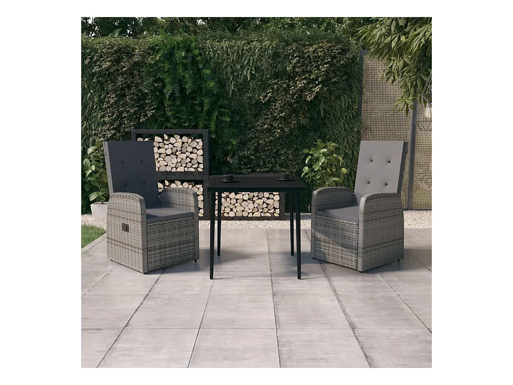 Wendral 3-delige Tuinset met kussens poly rattan grijs