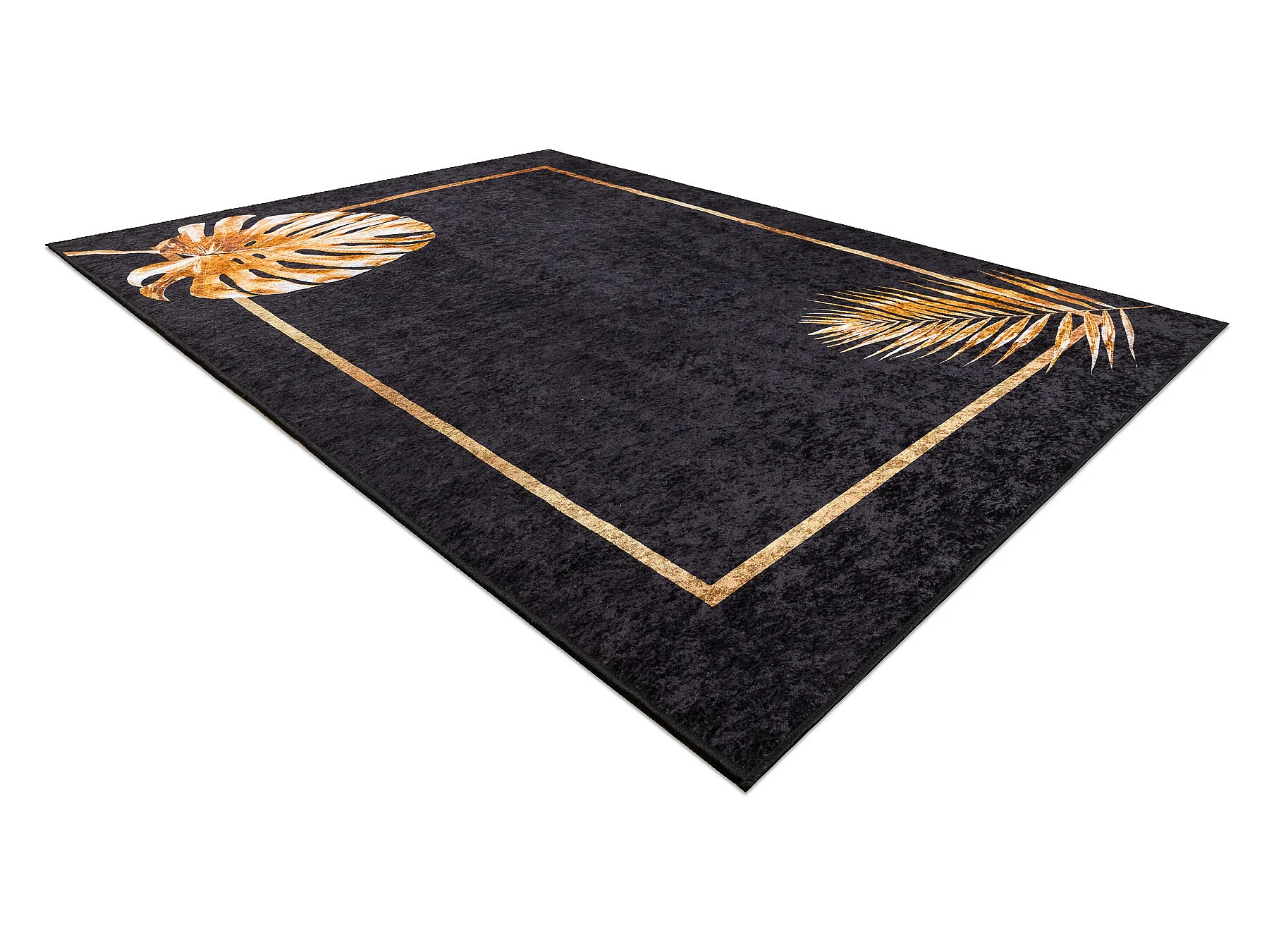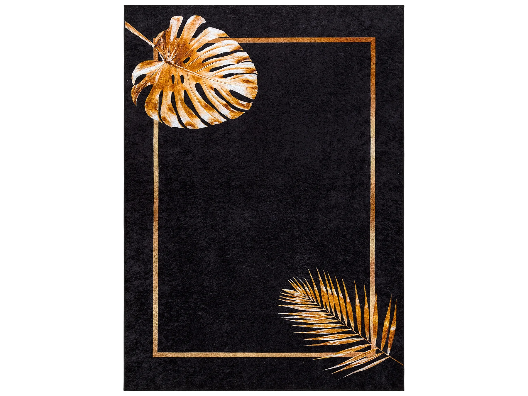 MIRO 51518.805 tapijt wasbaar Bladeren, kader antislip - zwart / goud 160x220 cm