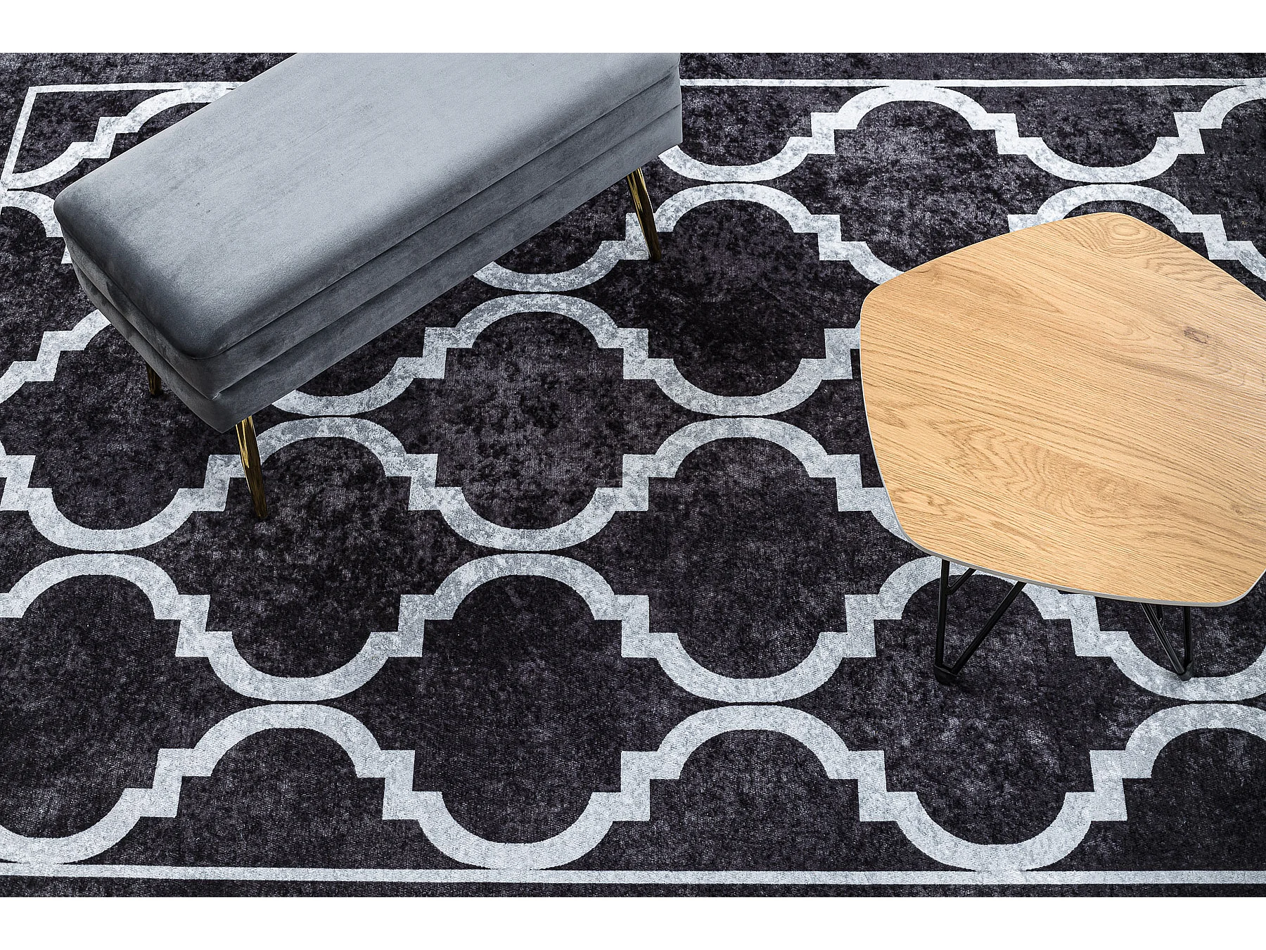 MIRO 51639.806 tapijt wasbaar Trellis geruite antislip - zwart 160x220 cm