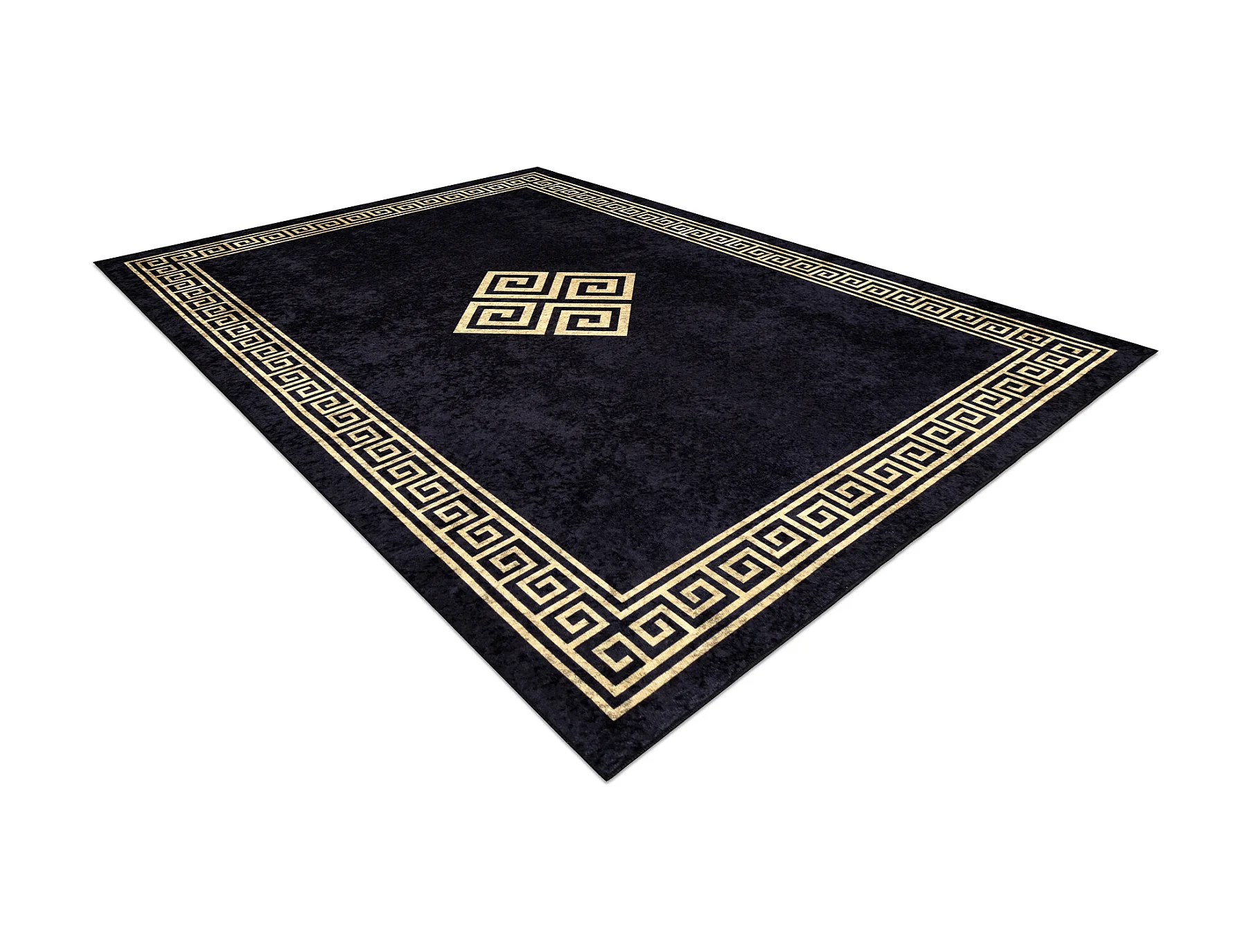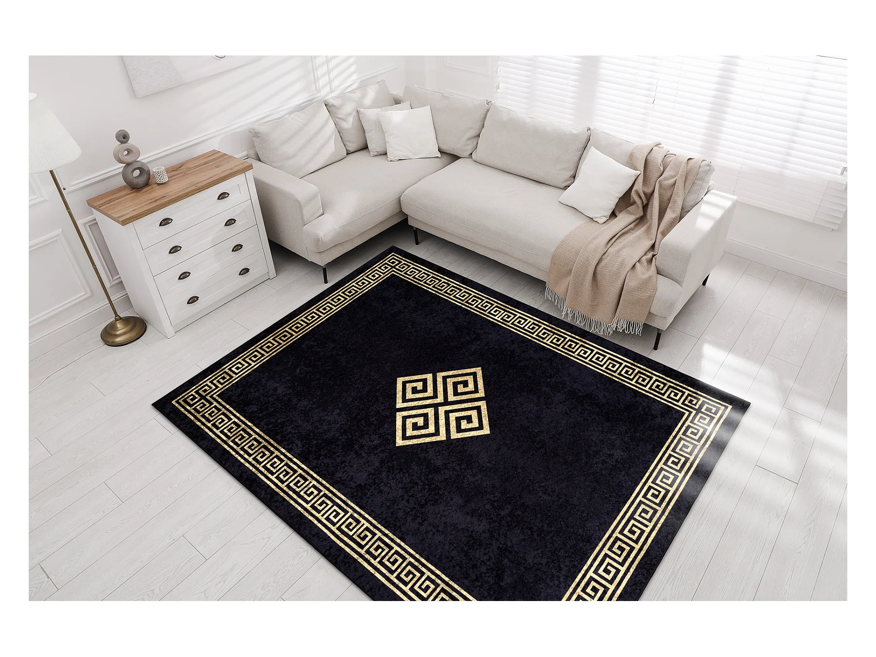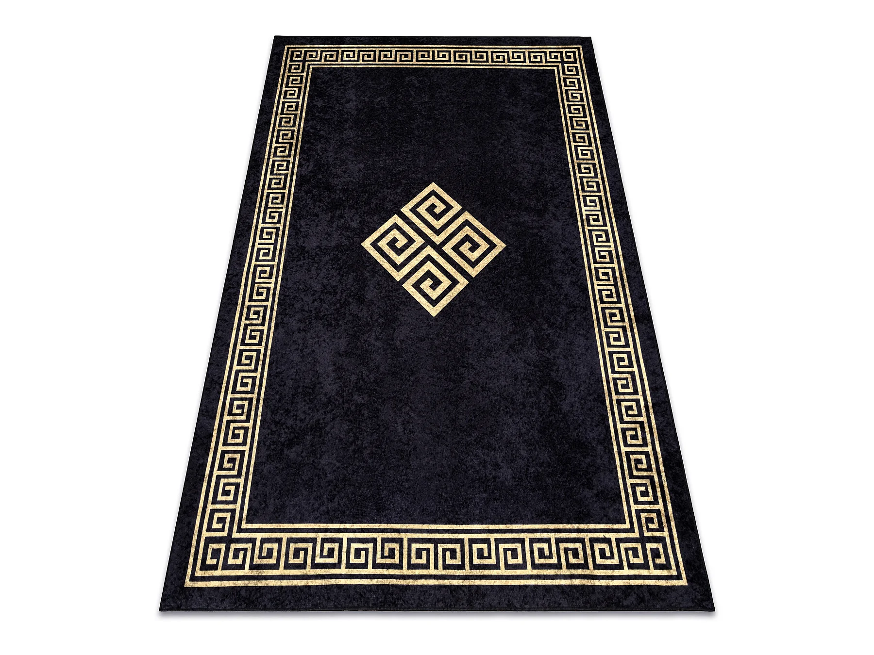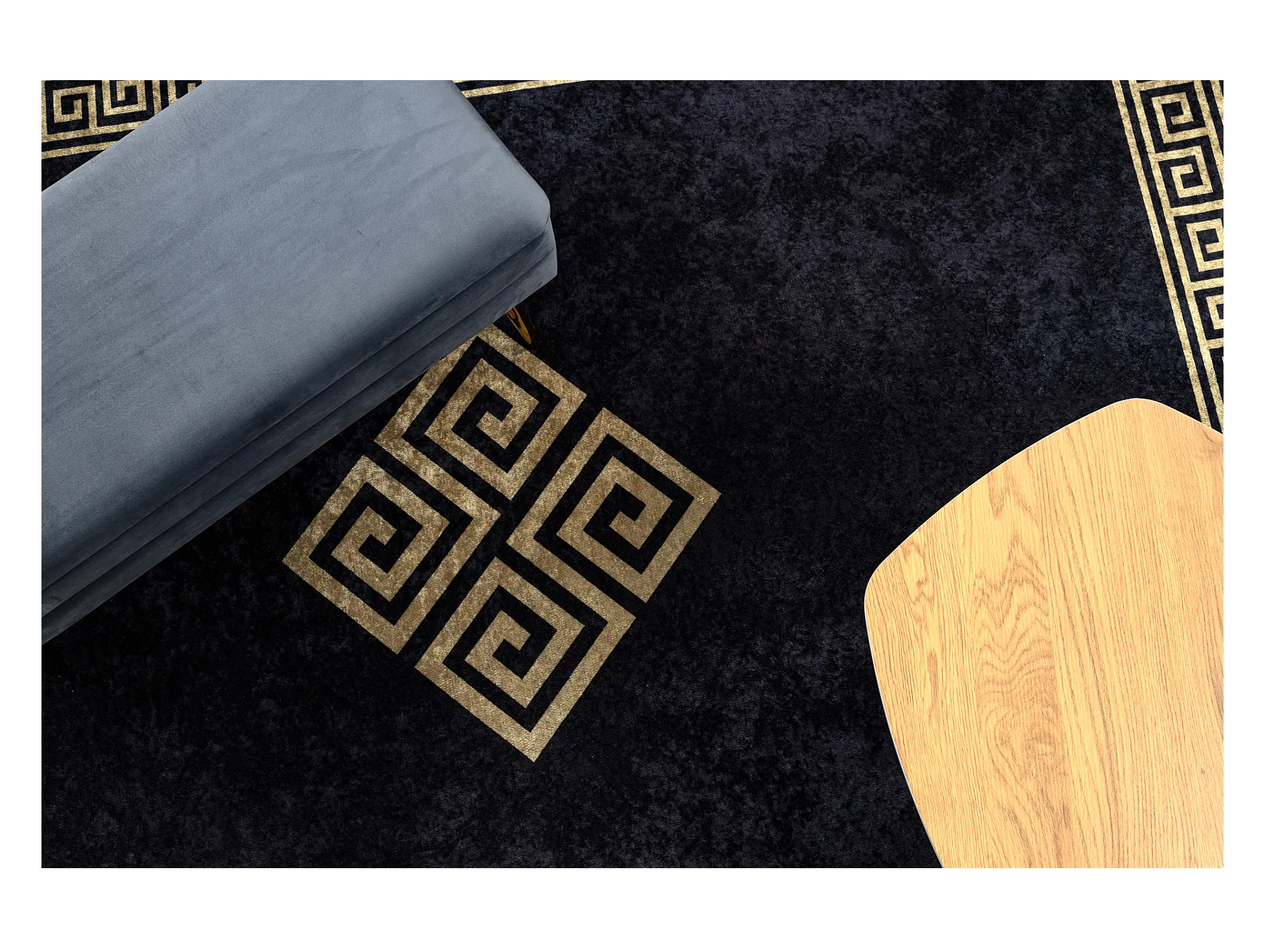 MIRO 52071.803 tapijt wasbaar Kader, grieks antislip - zwart / goud 160x220 cm