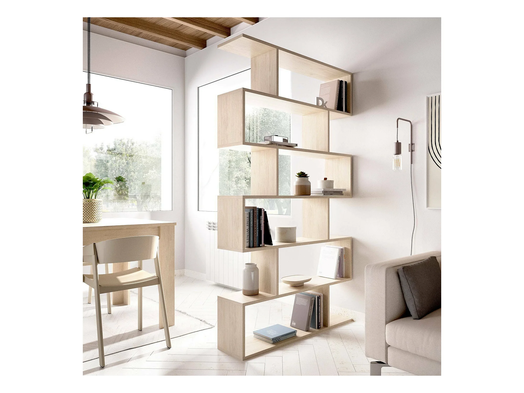 Dtalarin boekenkast, Kantoorplank, Boekenkast, Bibliotheek, 41x34 h205 cm, Eiken en Grijs