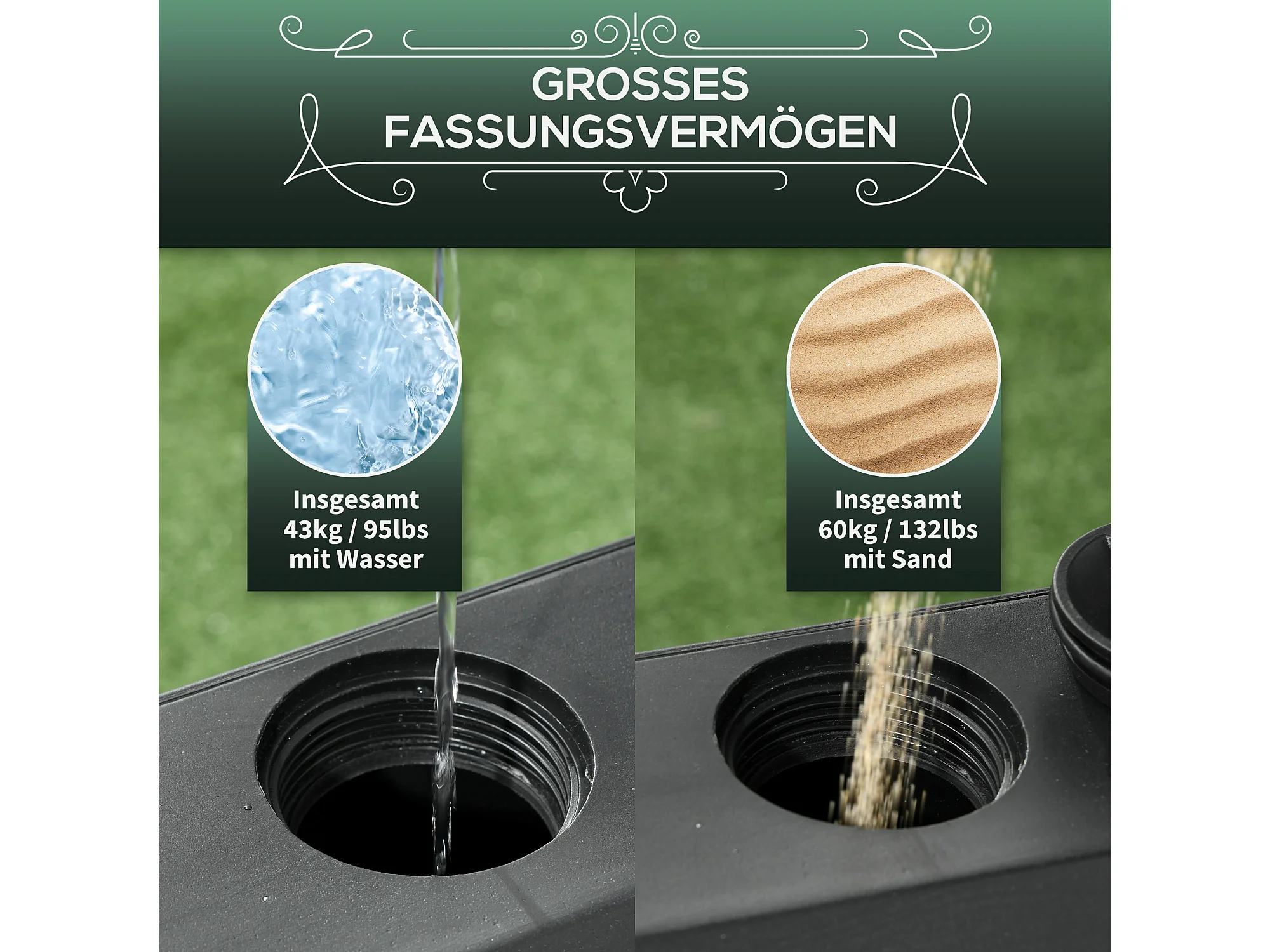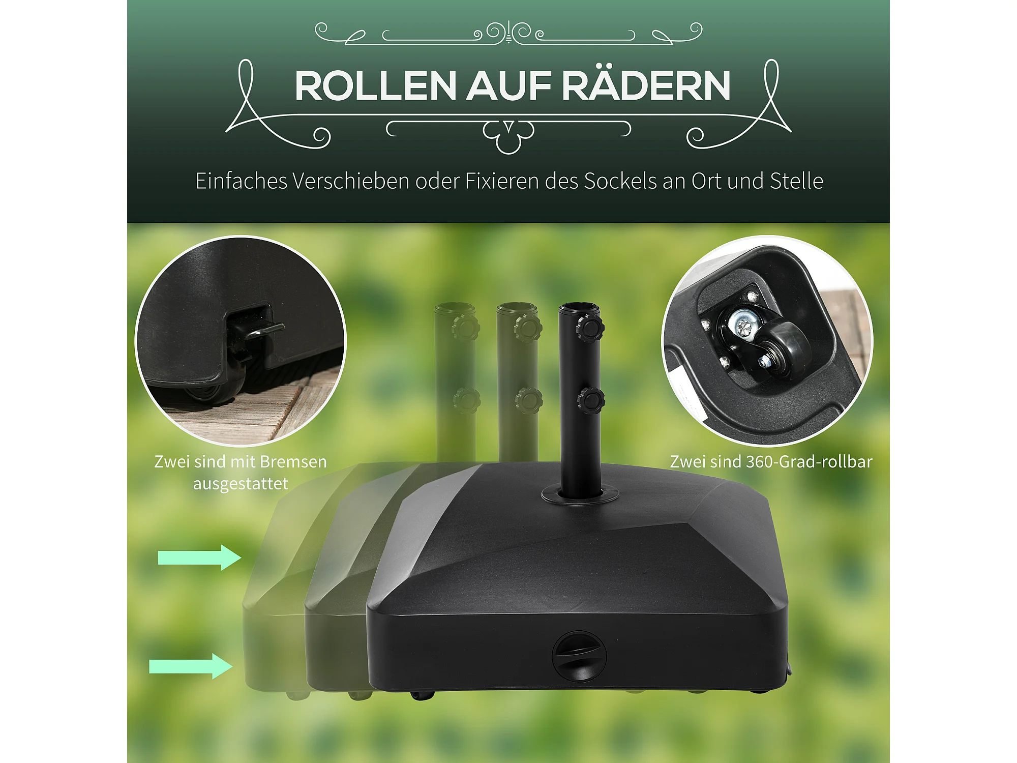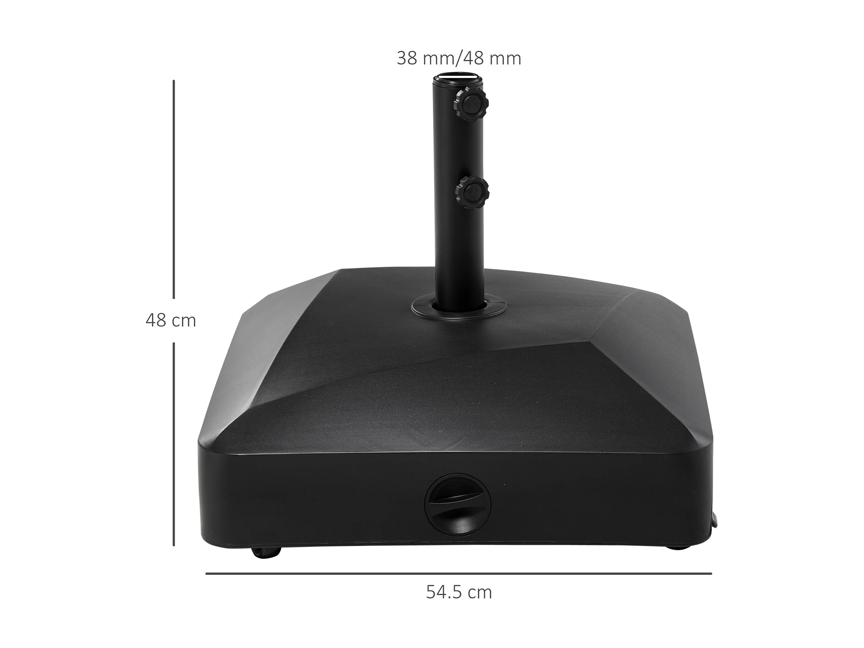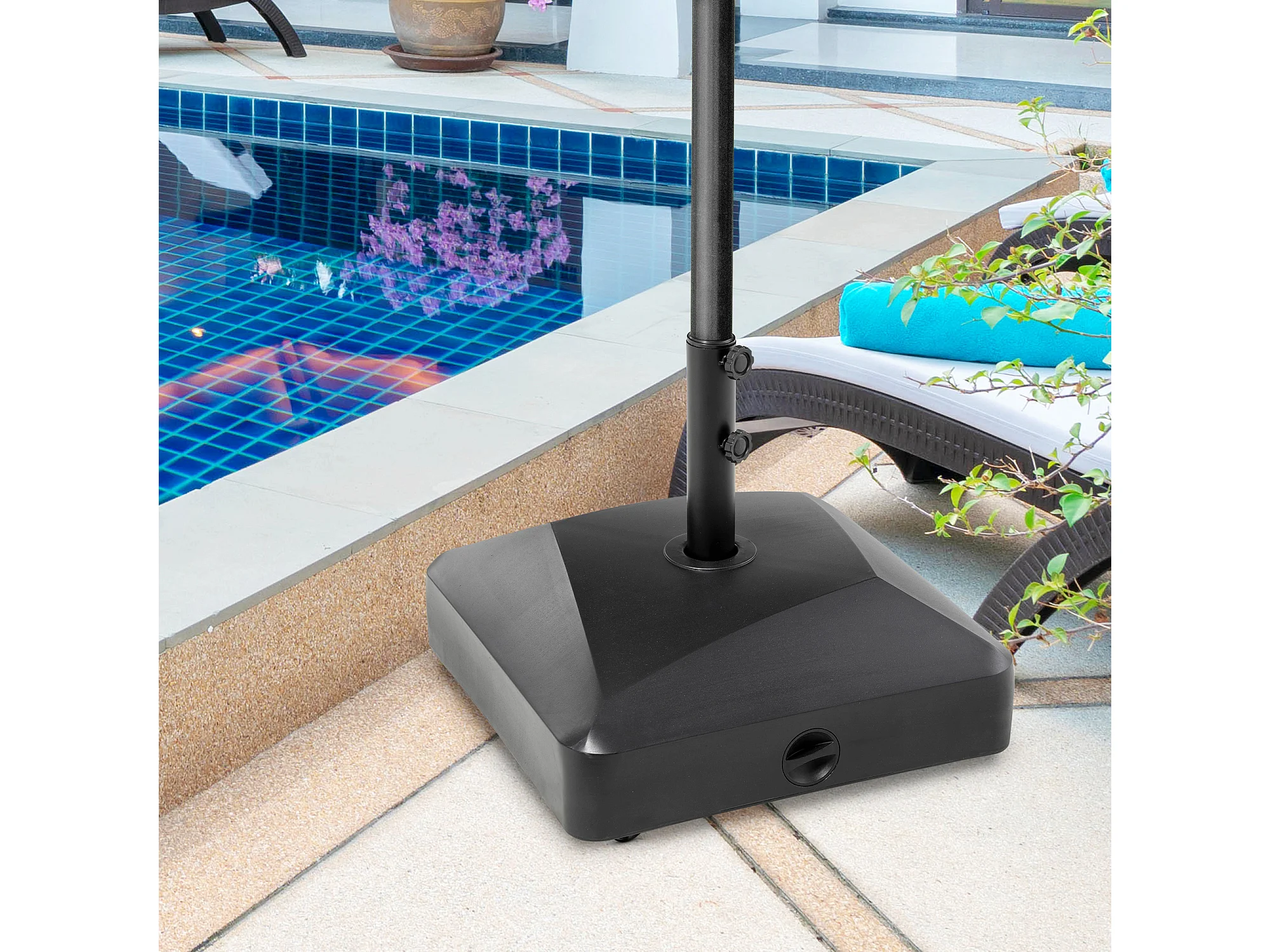 Mobiele, stabiele parasolvoet, PE en metaal, zwart (54,5x54,5x48cm)