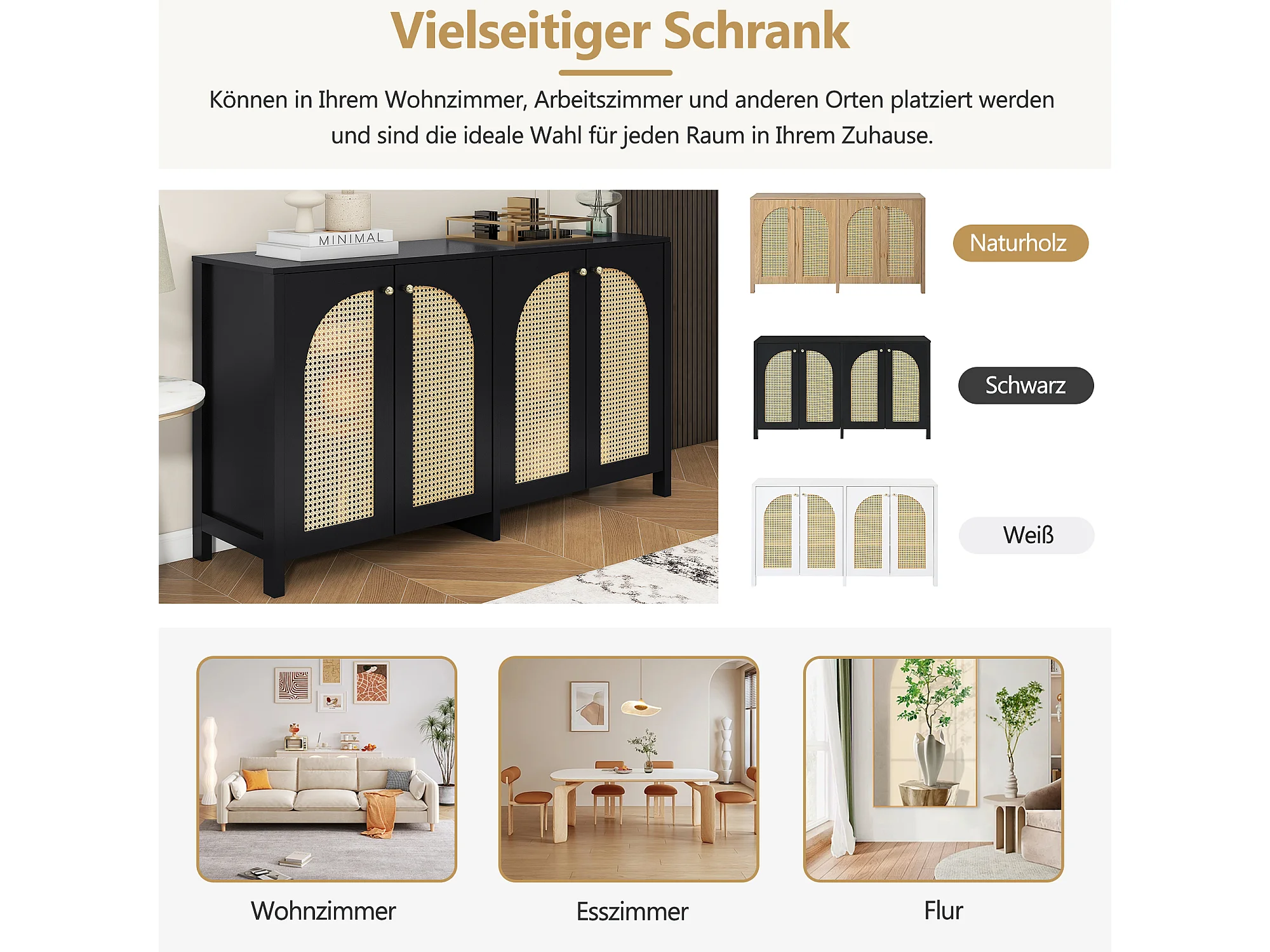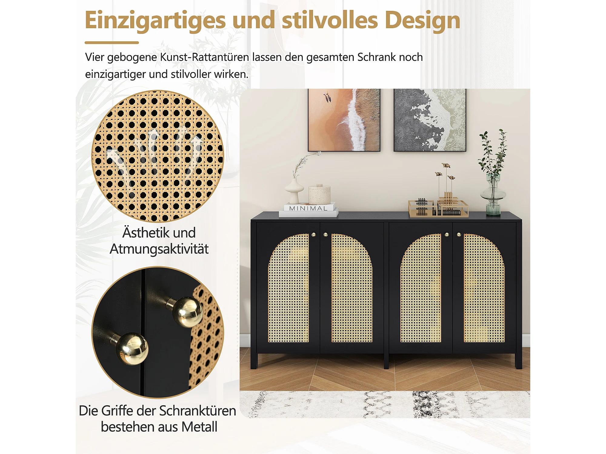 Modern 4-deurs dressoir, strak design, MDF, zwart (145x80x40 cm)