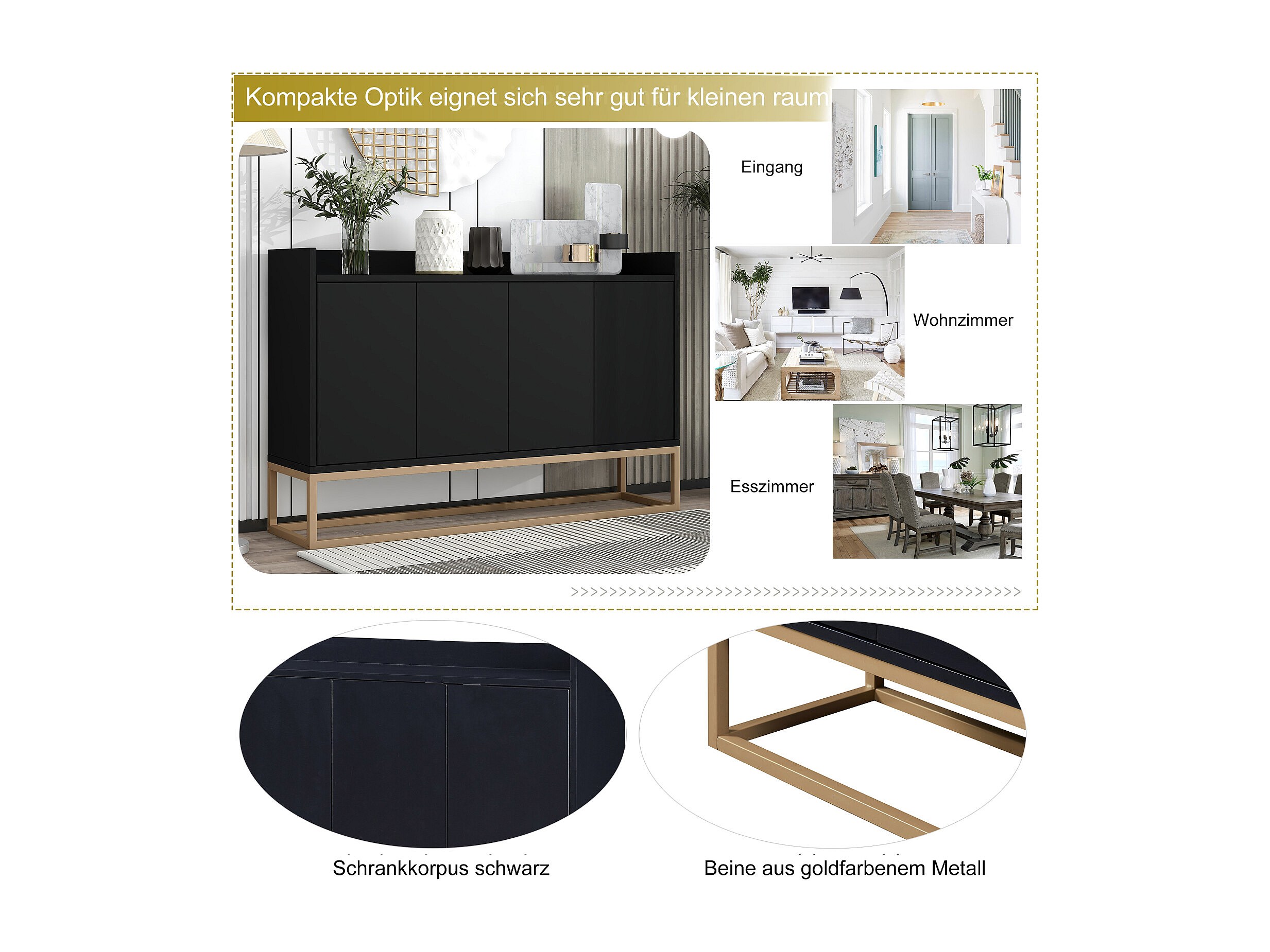 Modern 4-deurs dressoir zonder greepjes - Minimalistisch zwart design, elegant en praktisch voor eetkamer, woonkamer en keuken