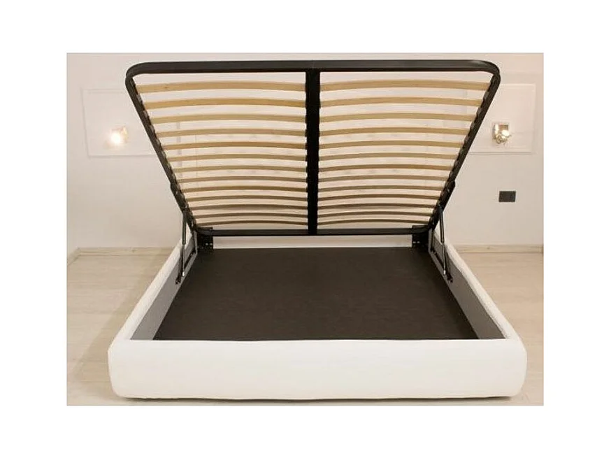 Modern bed met verticaal gestreept hoofdeinde, doorgestikt met kunstleer Bazen-Kleur Wit-Slapen 180x200cm-Keuze Zonder boxspring