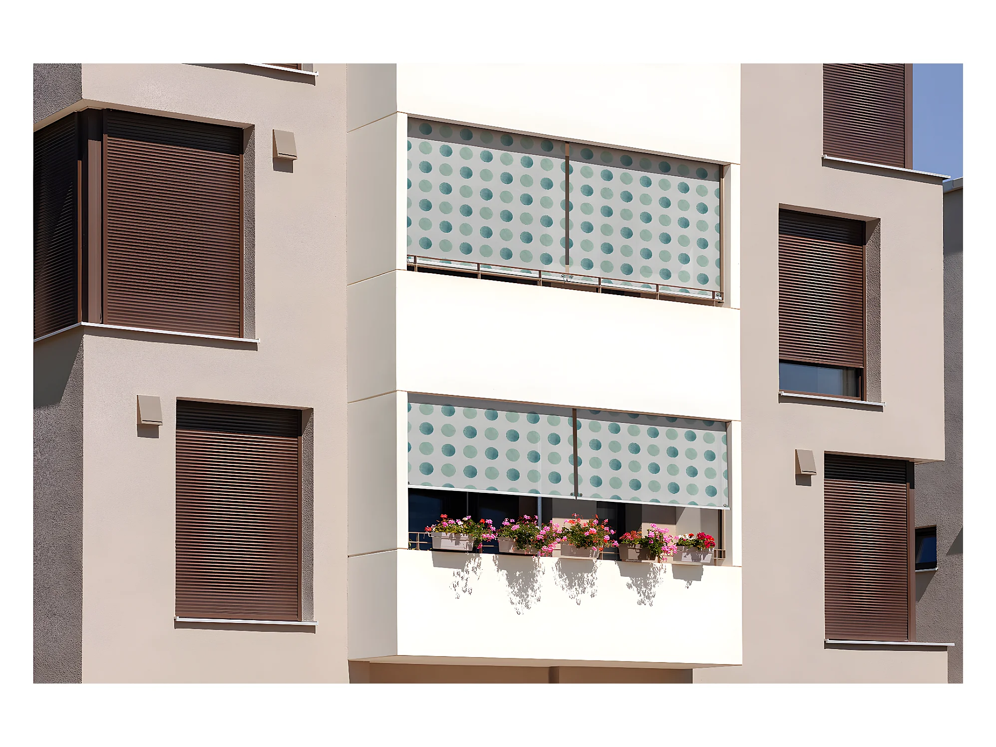 Modern buitenrolgordijn - 120x290 cm - Tweekleurige stippen Balkongordijn, Balkonrolgordijnen, Zonwerend gordijn