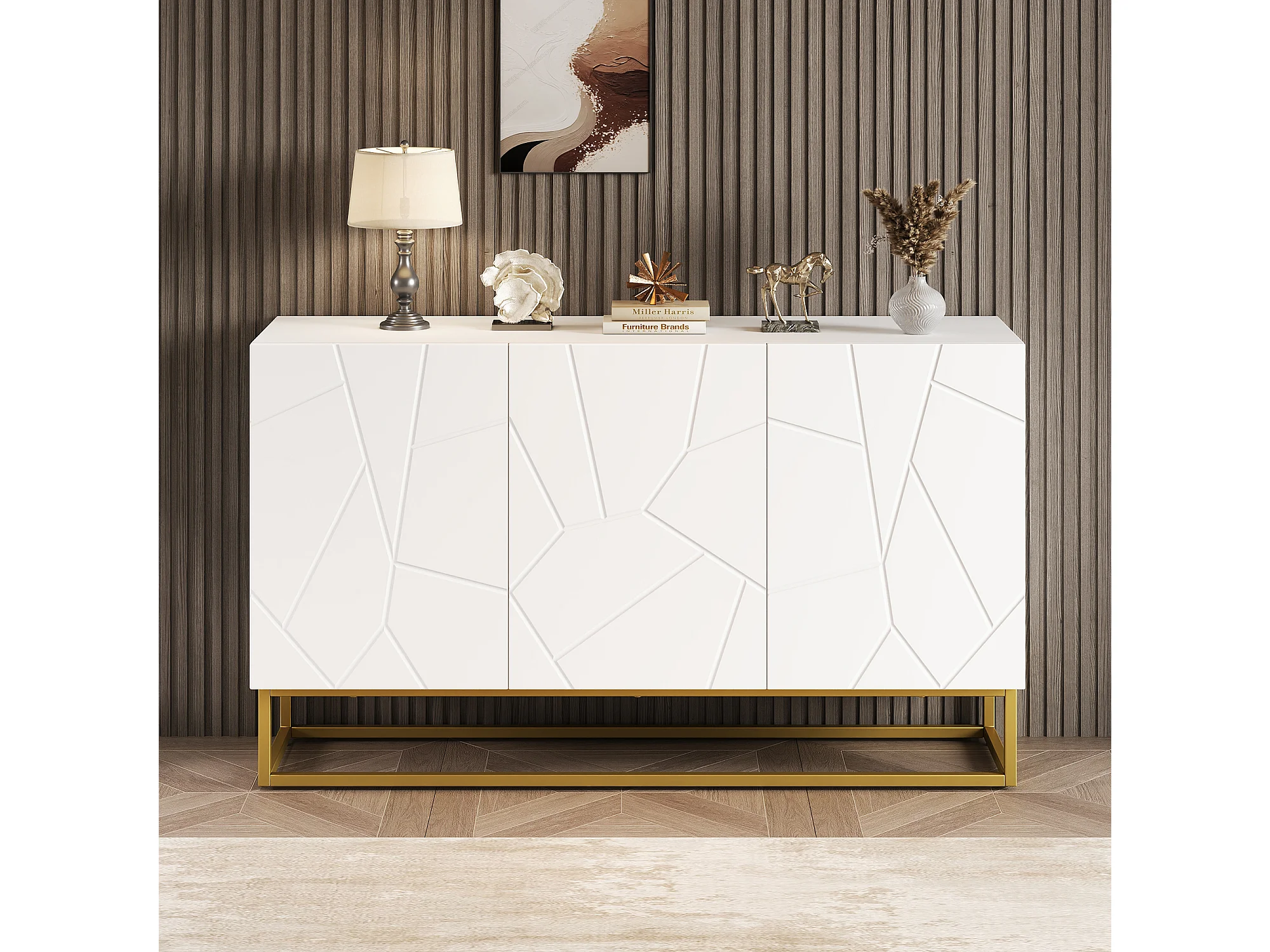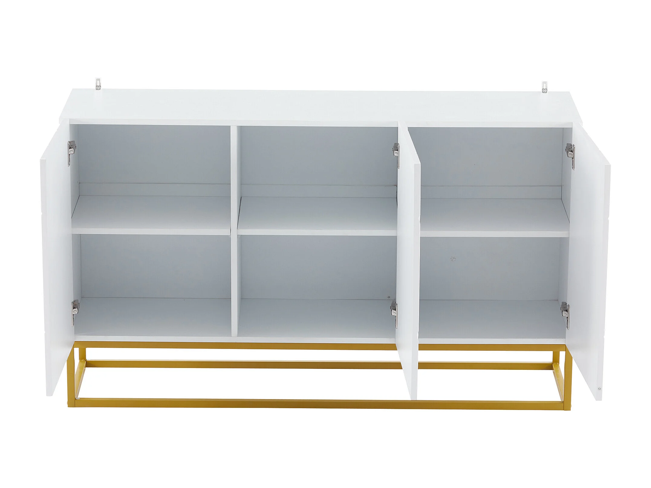 Modern dressoir hoogglans - 3 deuren met 3 verstelbare planken - 130x36x76 cm - Wit
