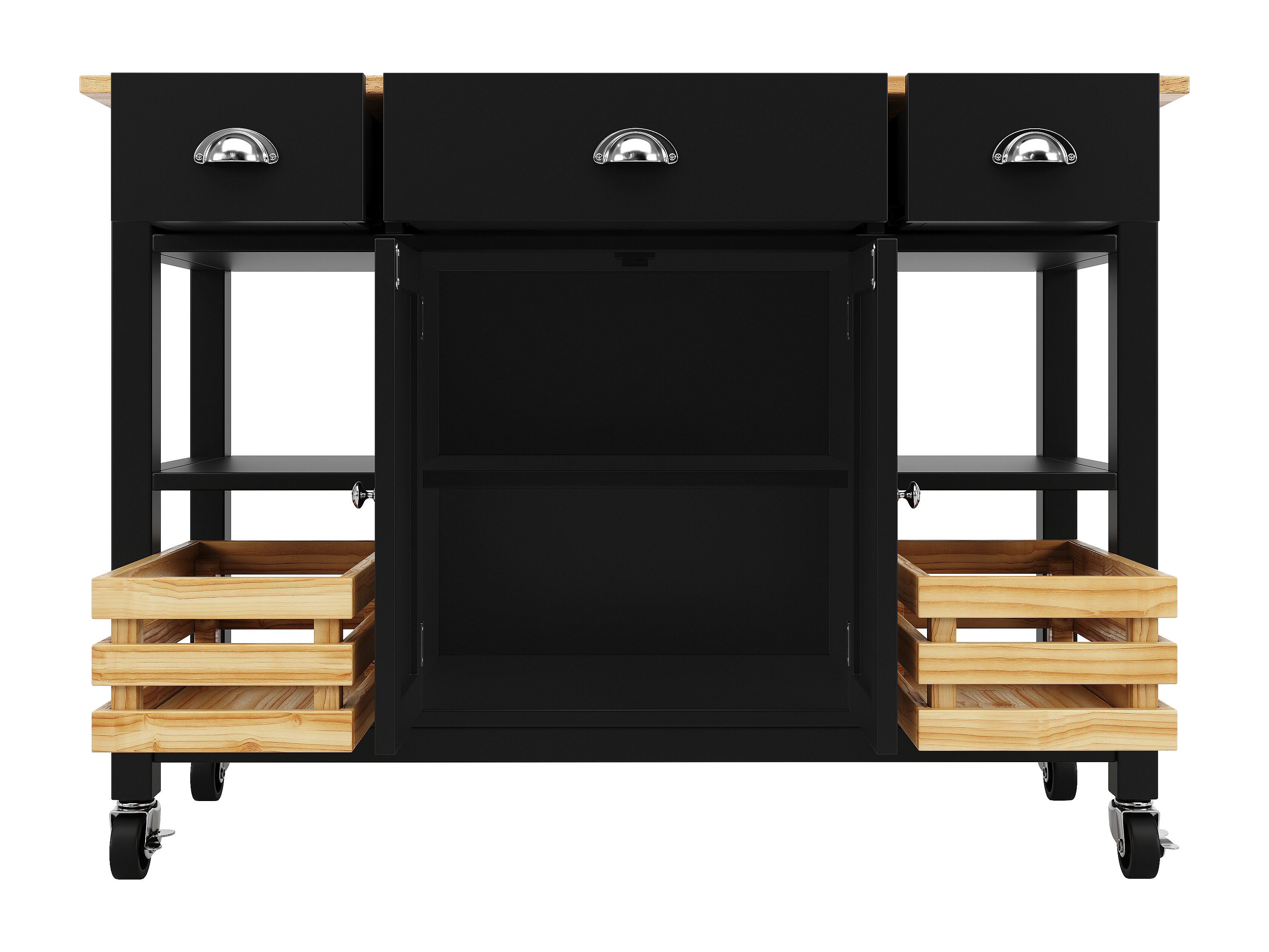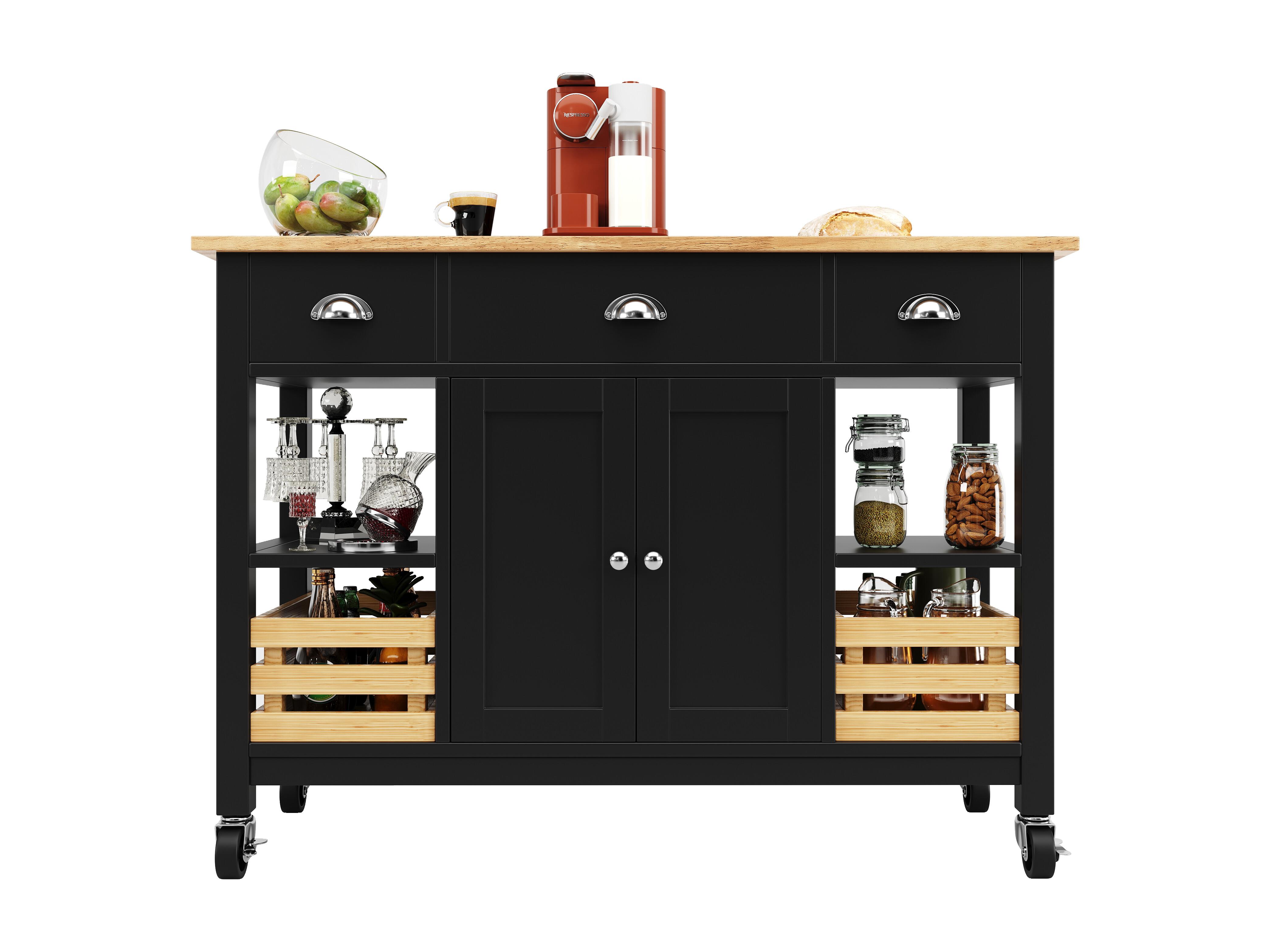 Modern kookeiland met houten blad, 3 lades, grenen mand, multifunctionele opbergfunctie, wit (120x45x90 cm)