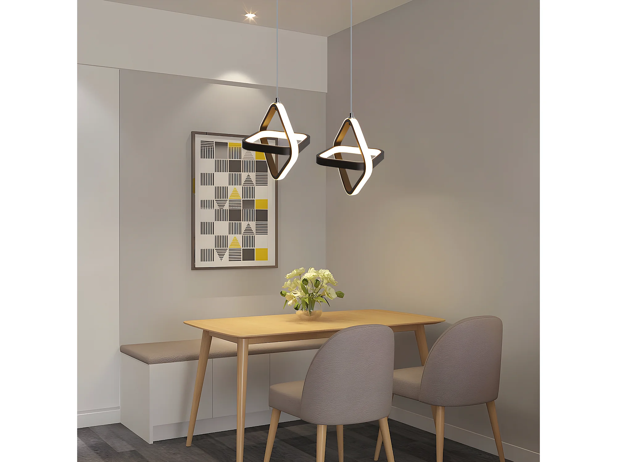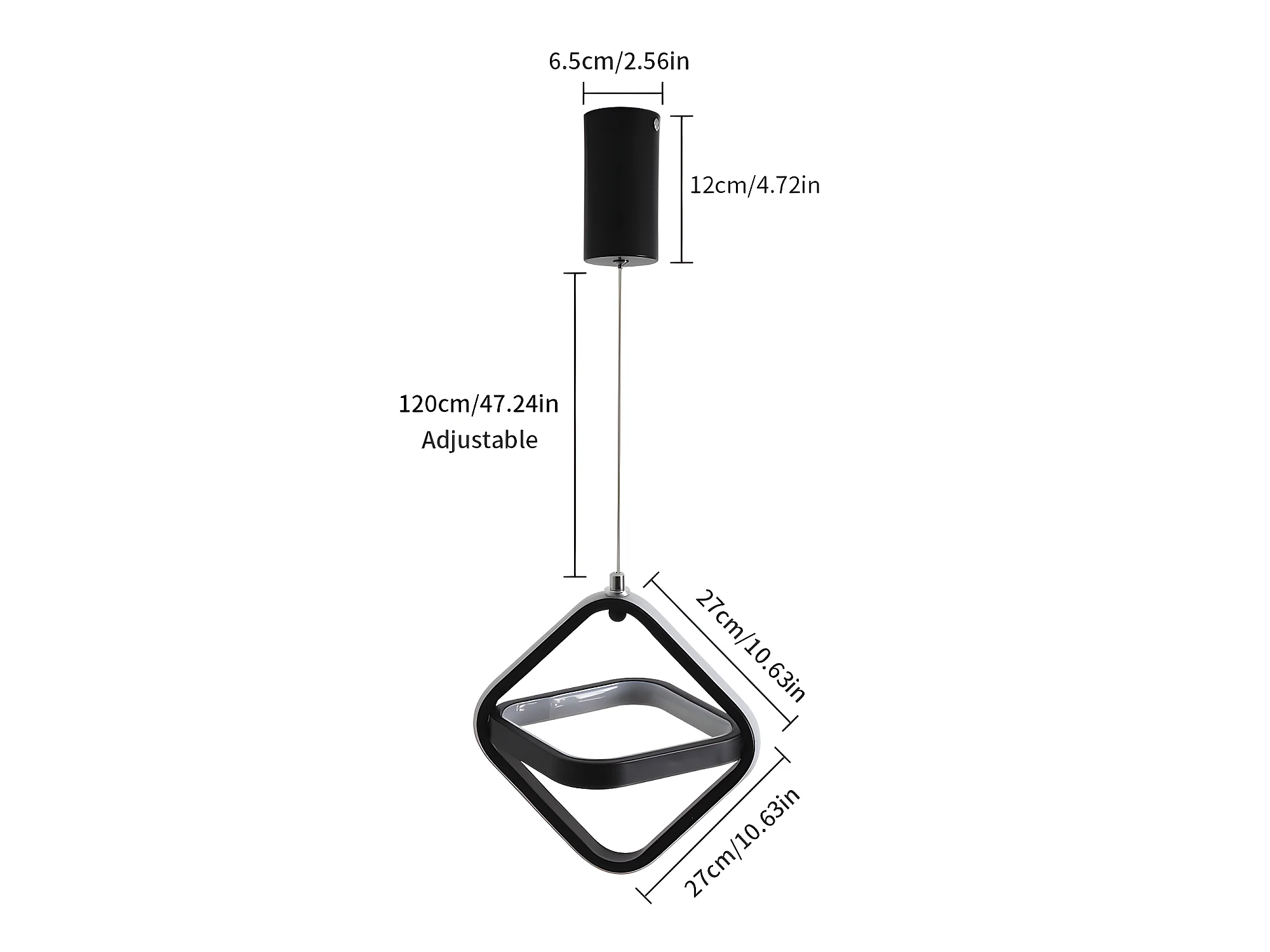 Modern Led Suspension Square Design Kroonluchter, zwart, 23*23*23cm, 22W 3000K, in Acryl