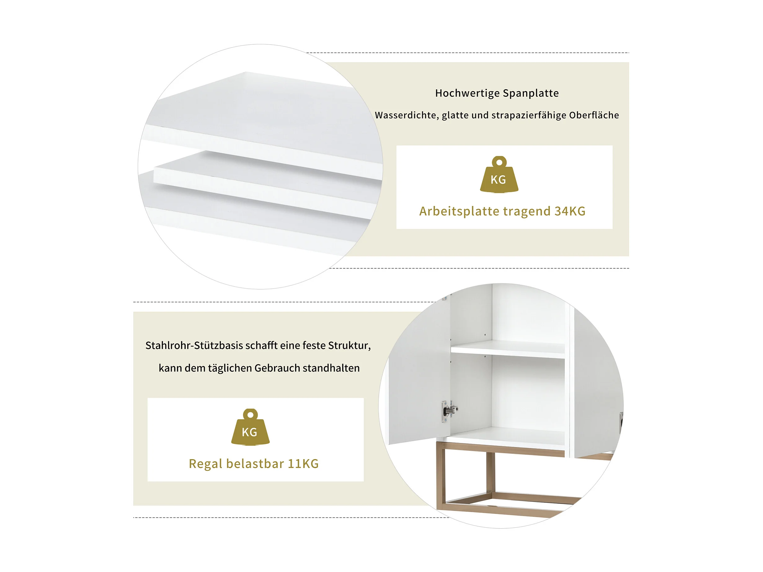 Modern minimalistisch dressoir 120 cm met 4 deuren, metalen frame en verstelbare planken - wit en goud