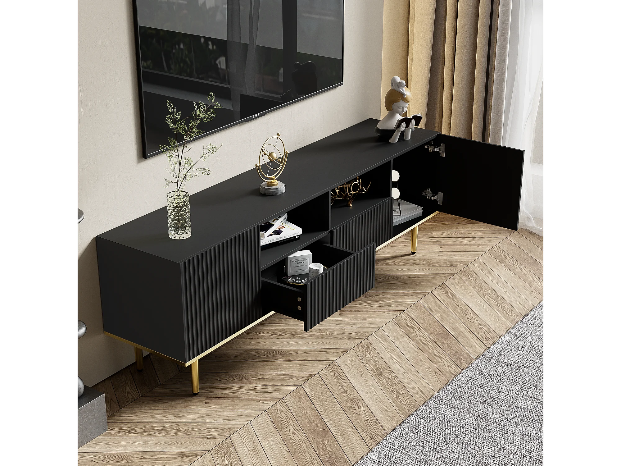 Modern TV-meubel - met 2 deuren en 2 lades - metalen poten - Zwart
