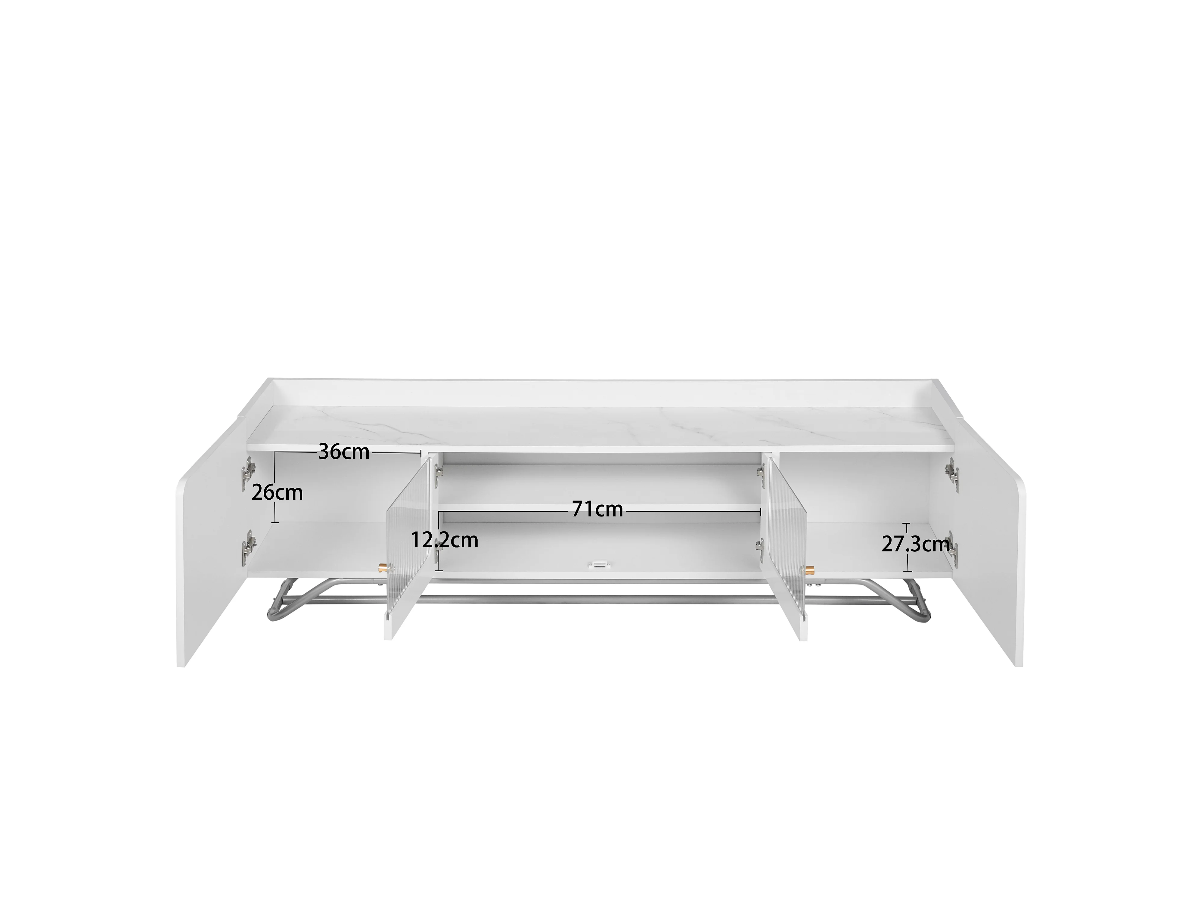 Modern TV-meubel met glastür en marmorstruktur blad 150 x 30 x 47 cm - wit