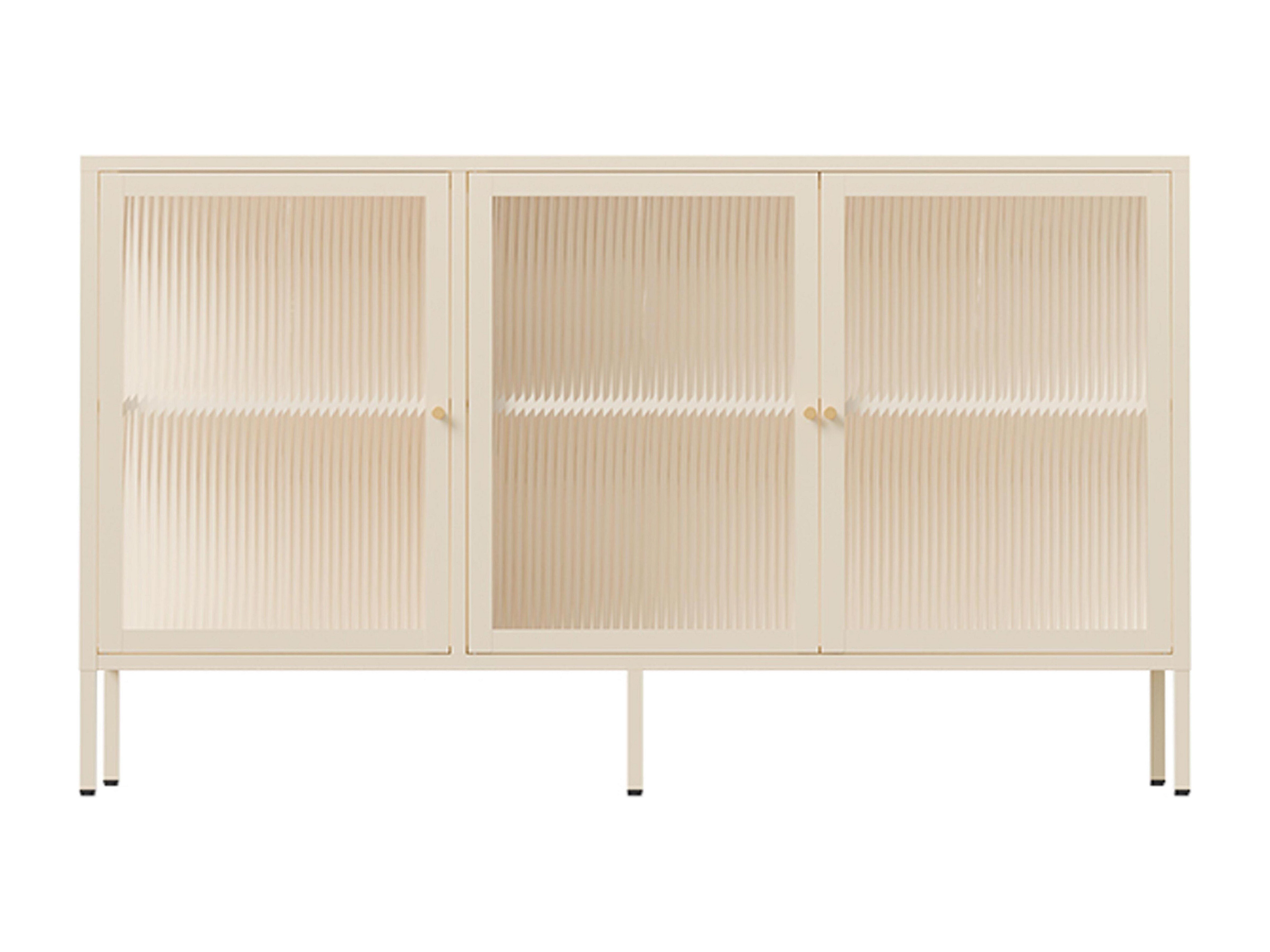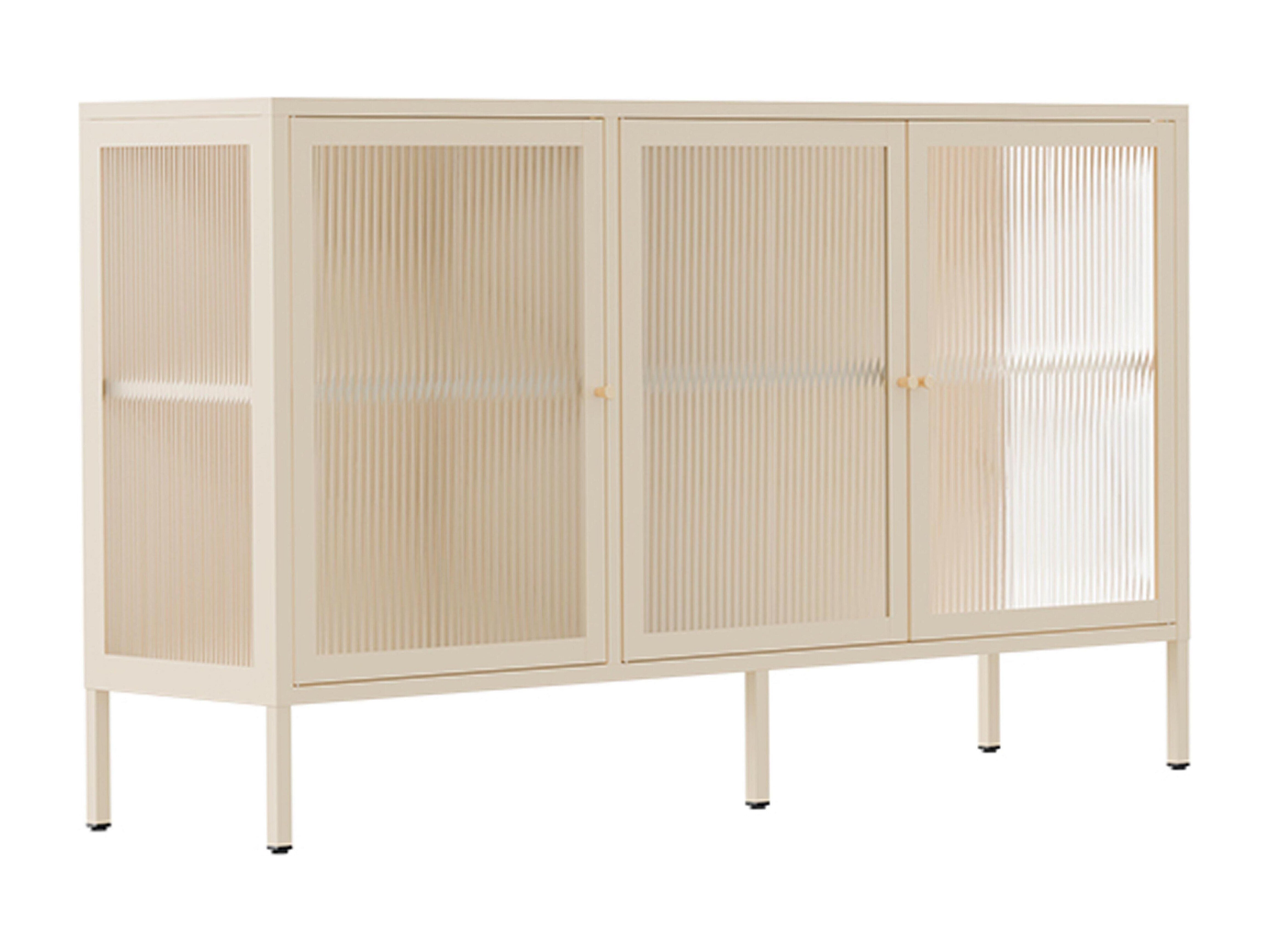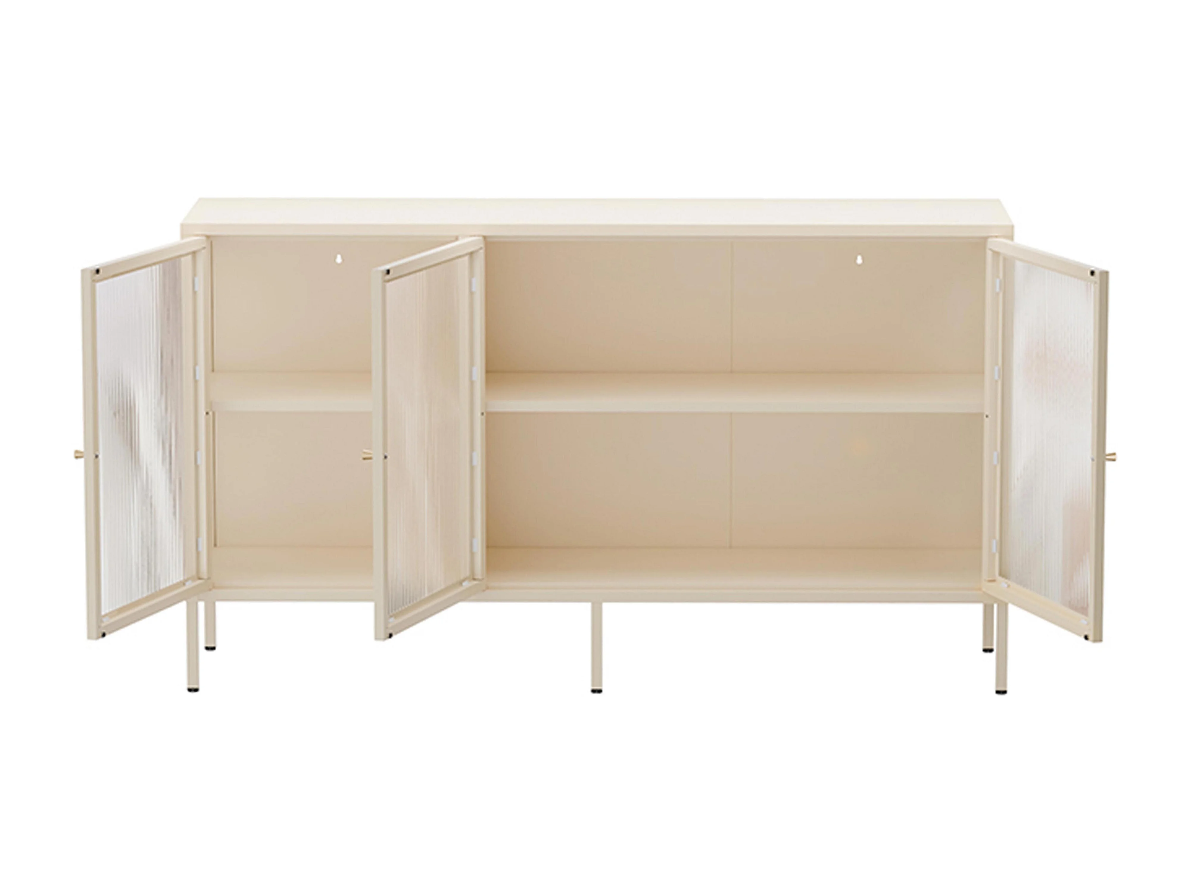 Moderne buffetkast met 3 deuren, L 140 cm, ecru metaal