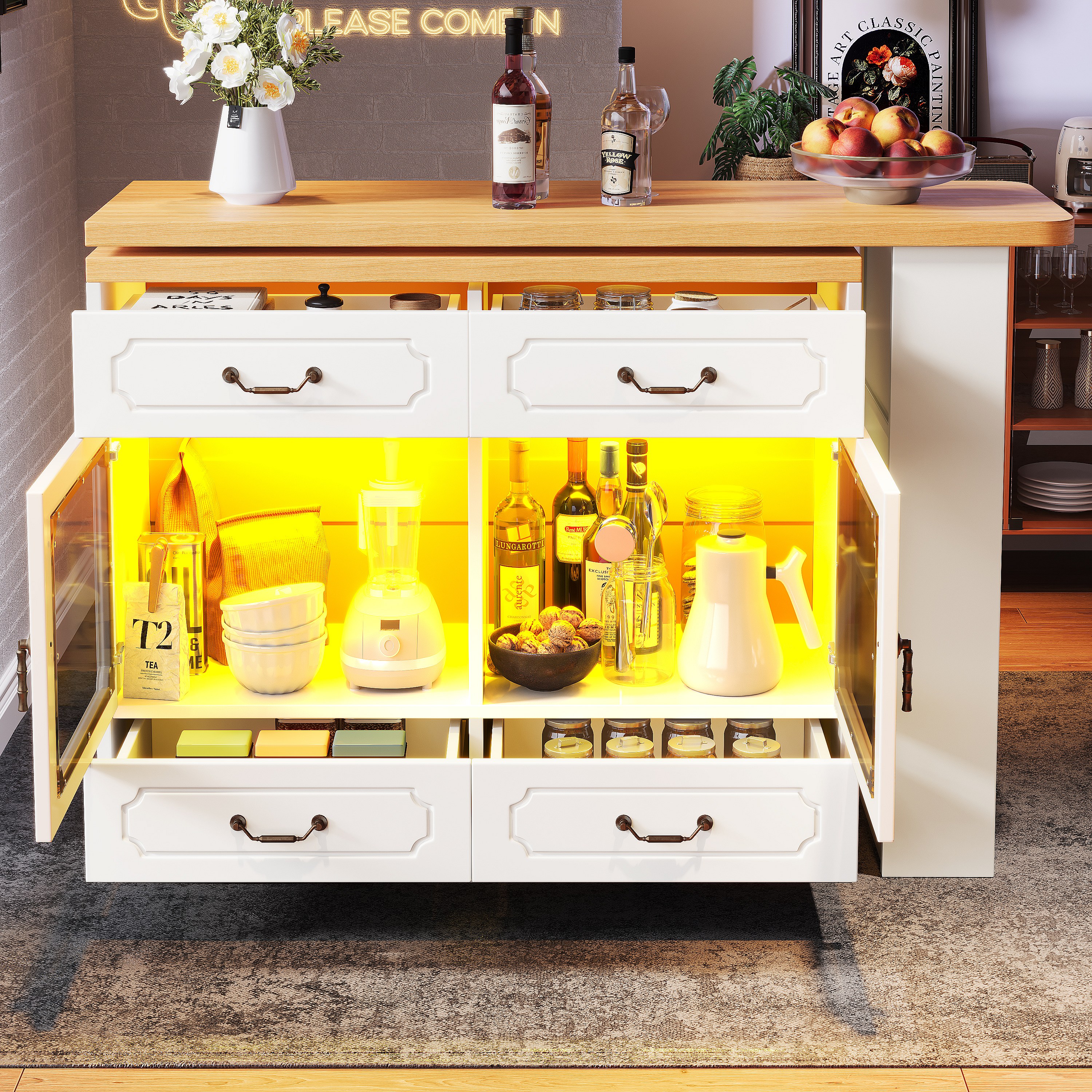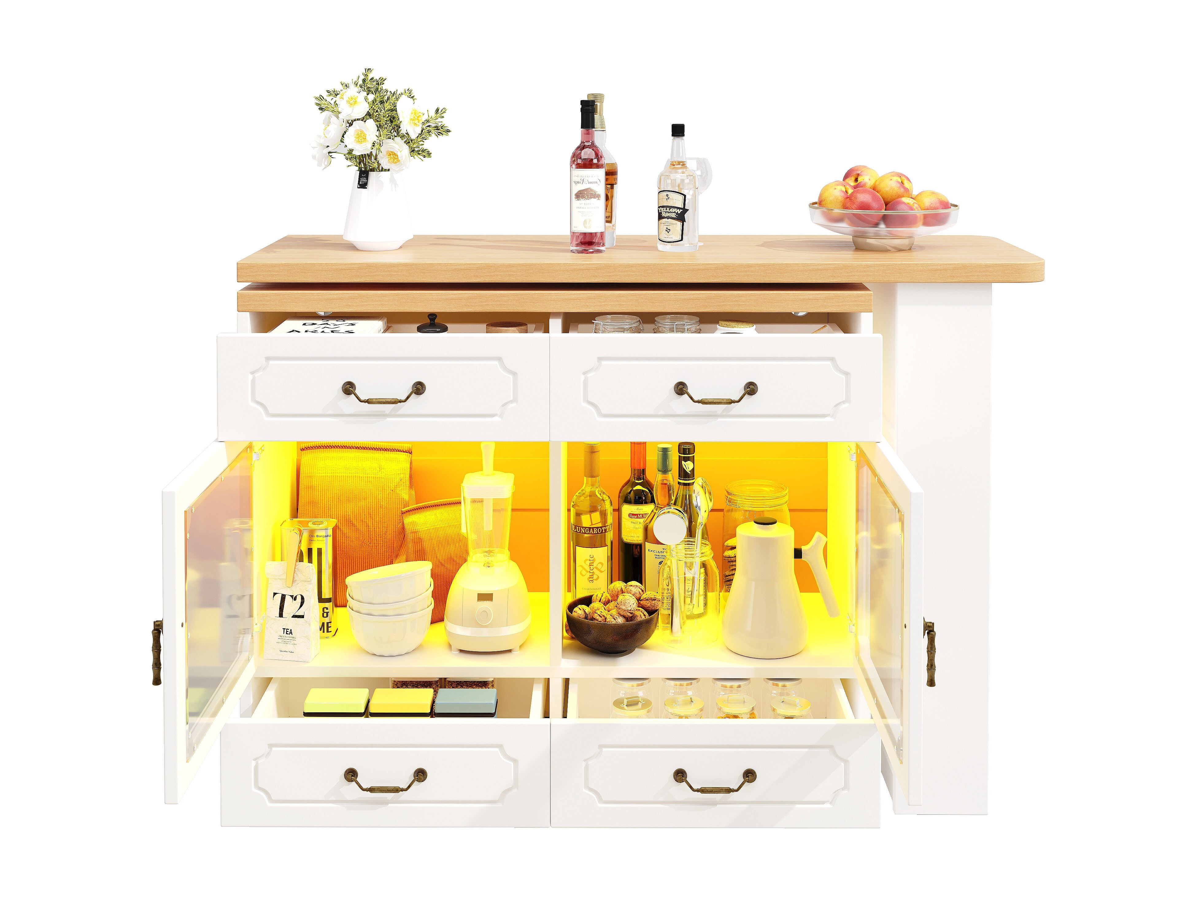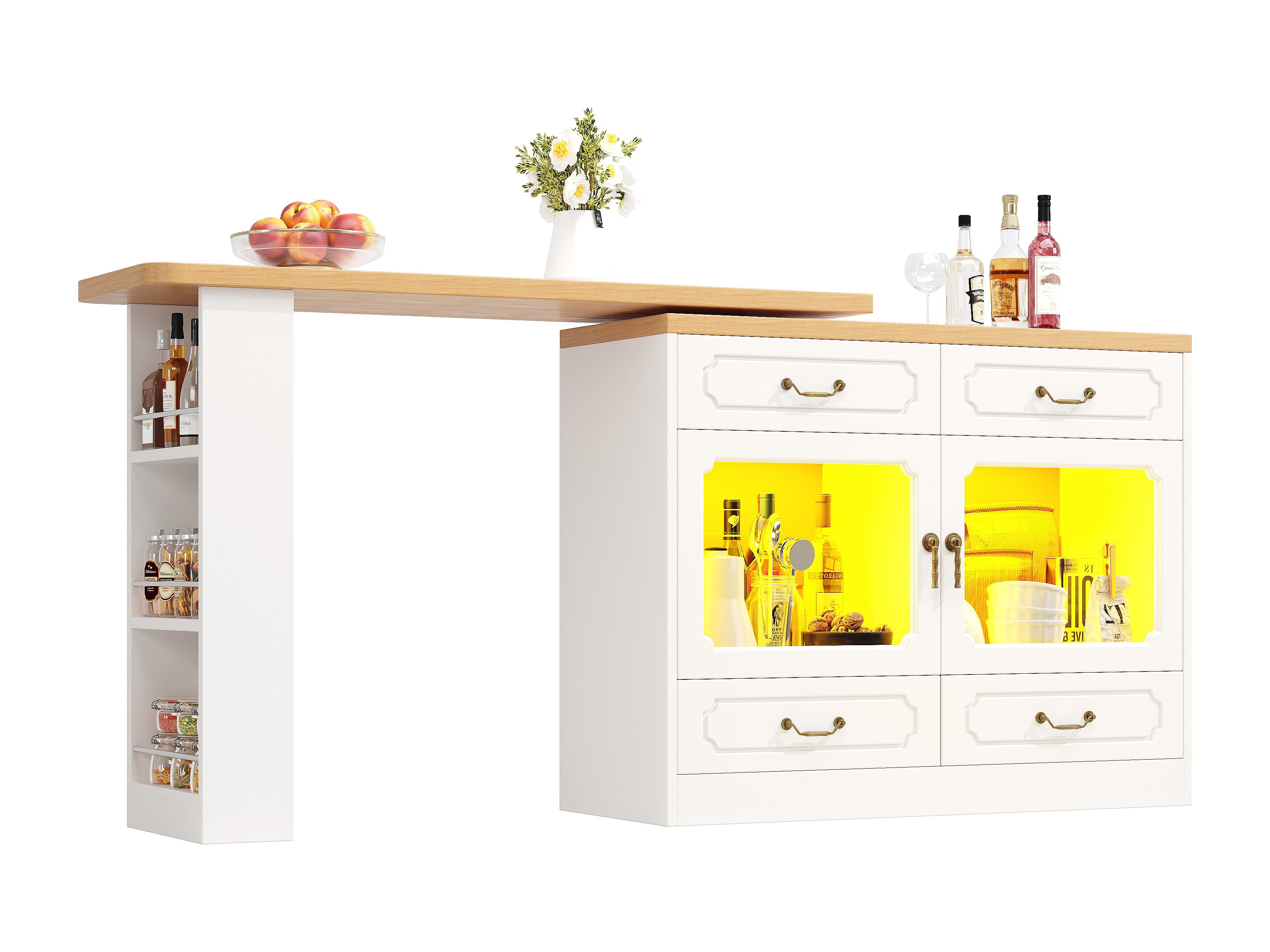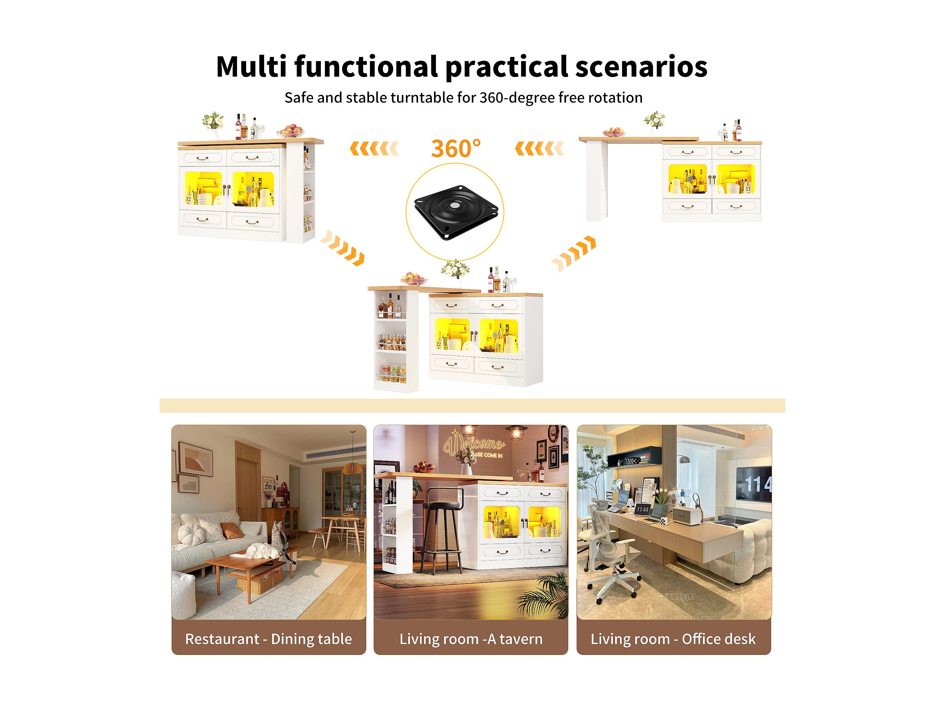 Moderne draaibare barkast 360° - met LED - 203x39x93 cm - 4 laden en 2 deuren - met zijplanken - wit