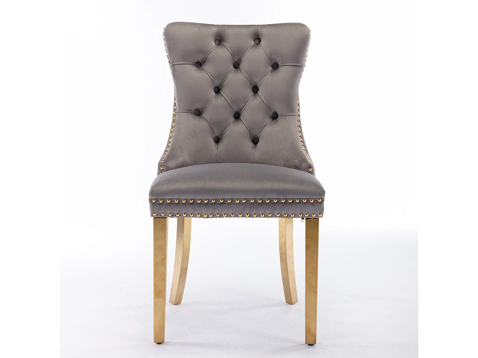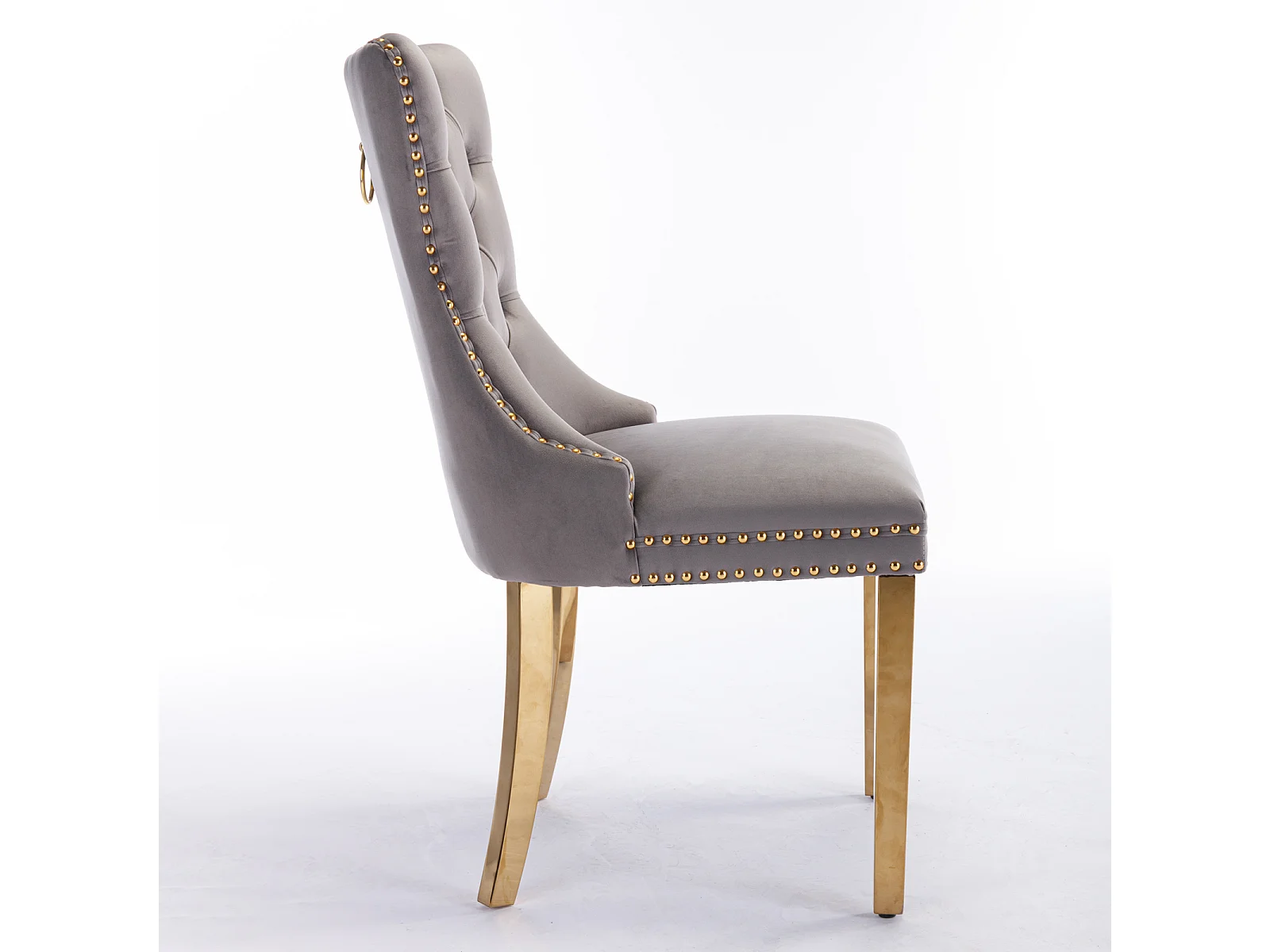 Moderne eetkamerstoel, grijs fluweel, houten poten, decoratieve nagels, set van 2 (65x50x95 cm)