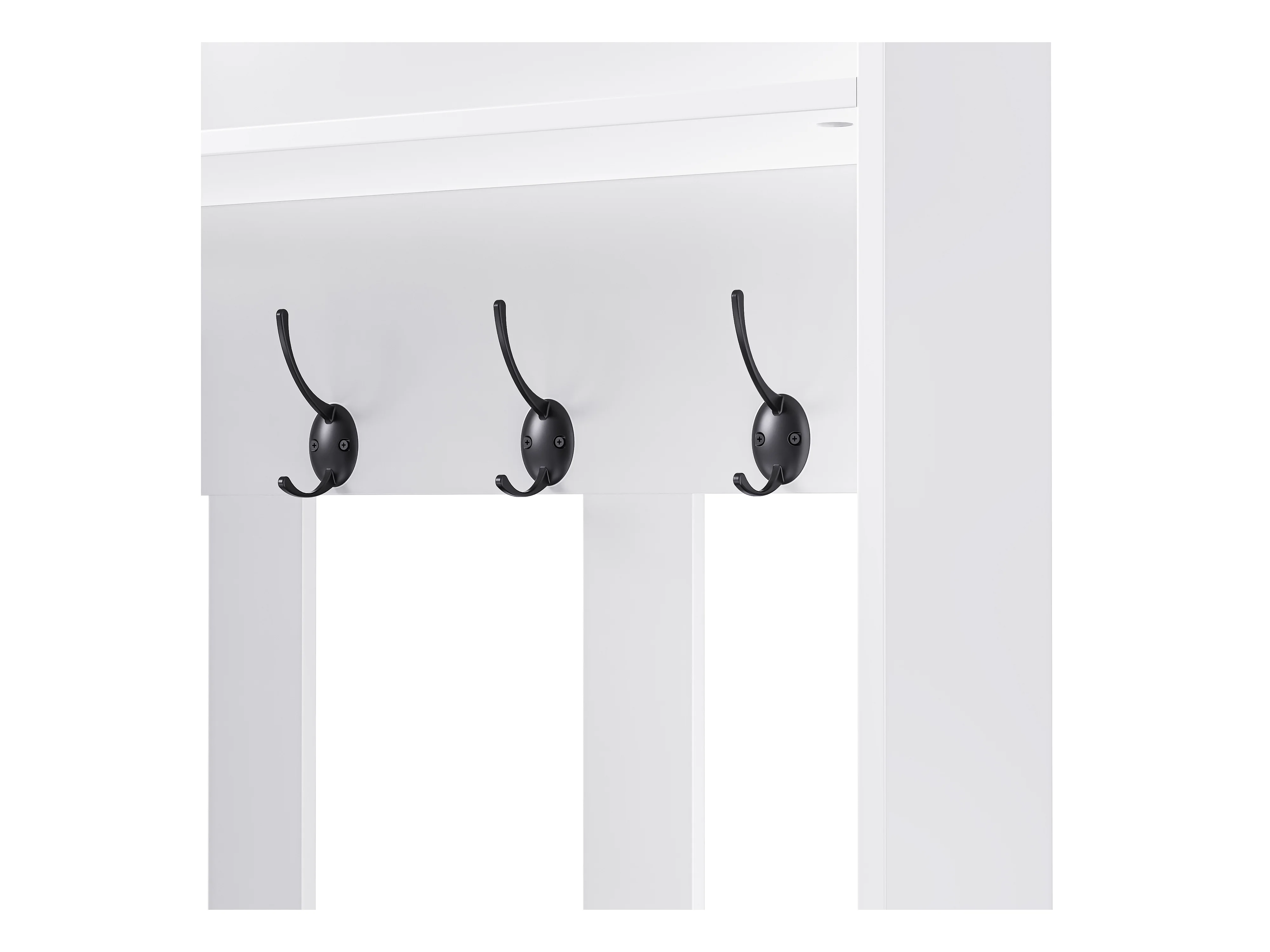 Moderne entreegarderobe - met 4 haakjes, 1 deur en 2 laden - met bankje en open planken - Wit