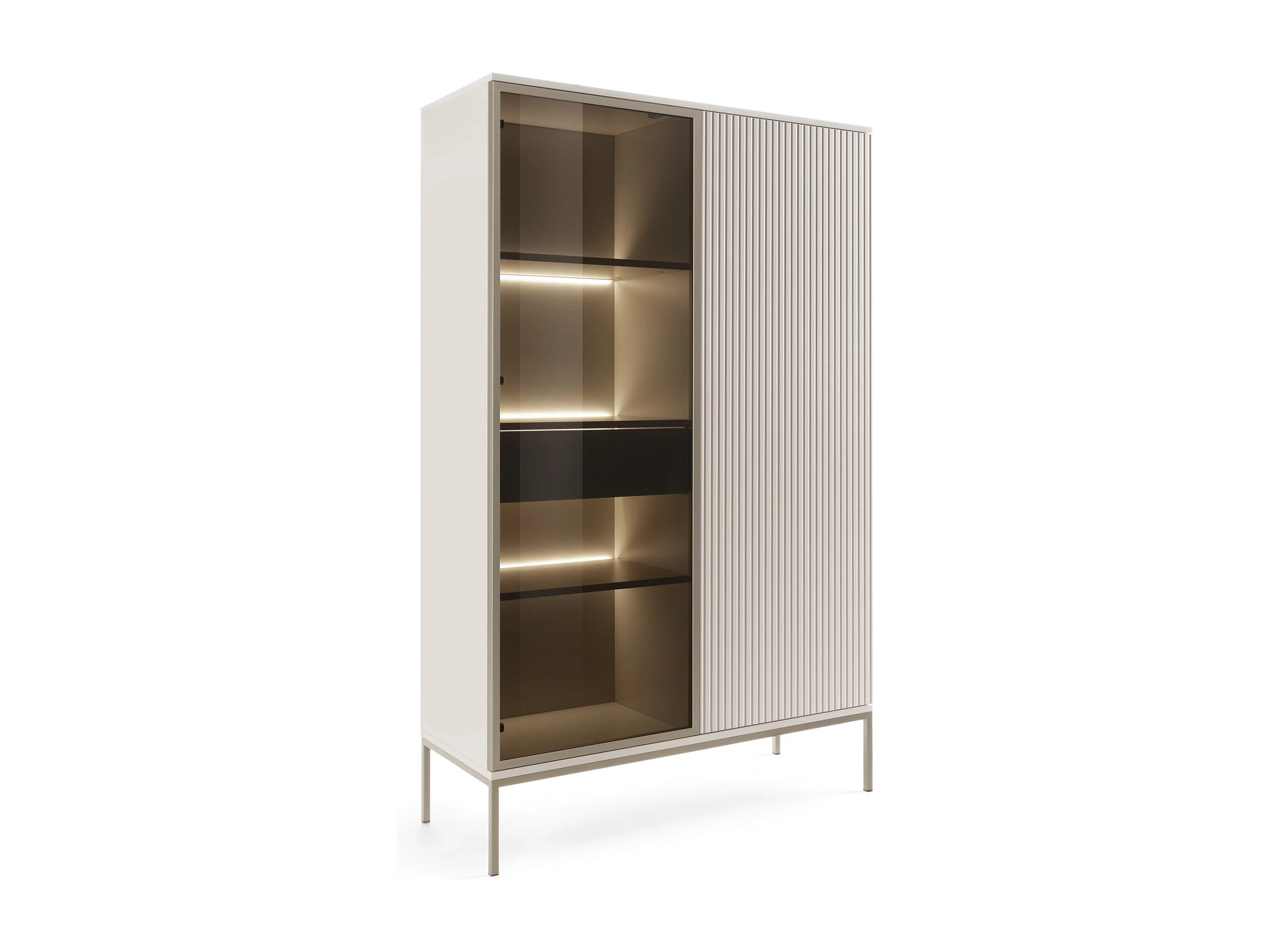 Moderne hoge vitrinekast met gecanneleerde voorkant, 104×166×39 cm, Kasjmier / Goud