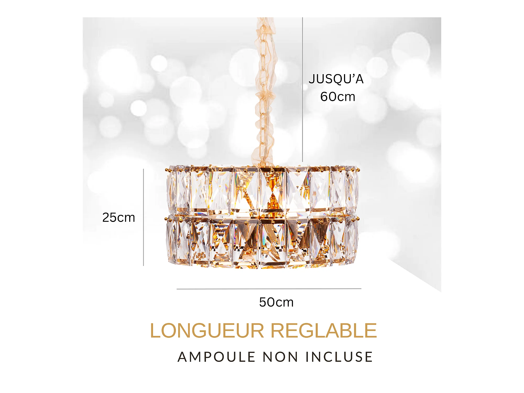 Moderne kristallen hanglamp voor woonkamer goudkleurig - Rond 50 cm - Miami